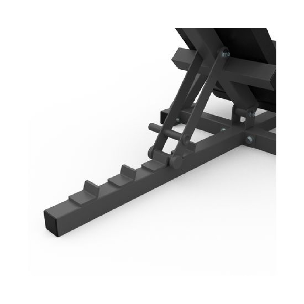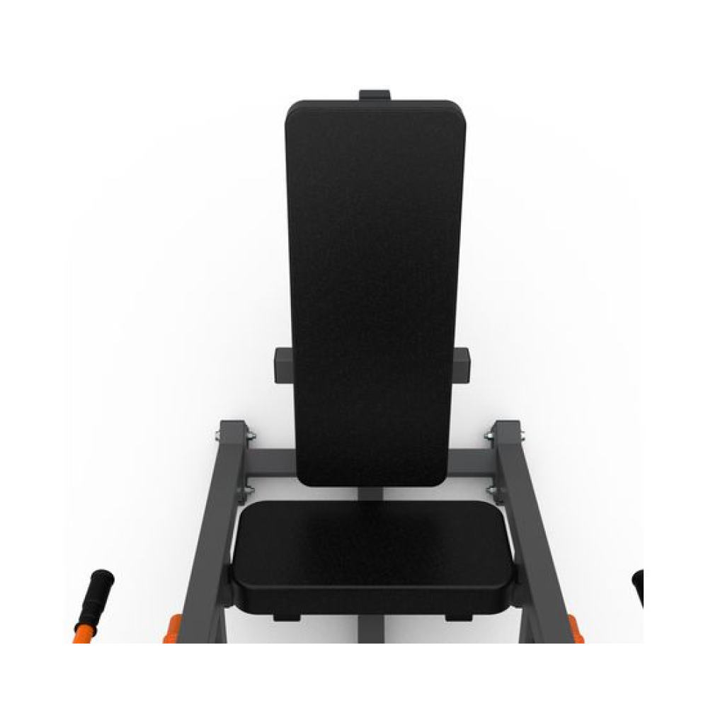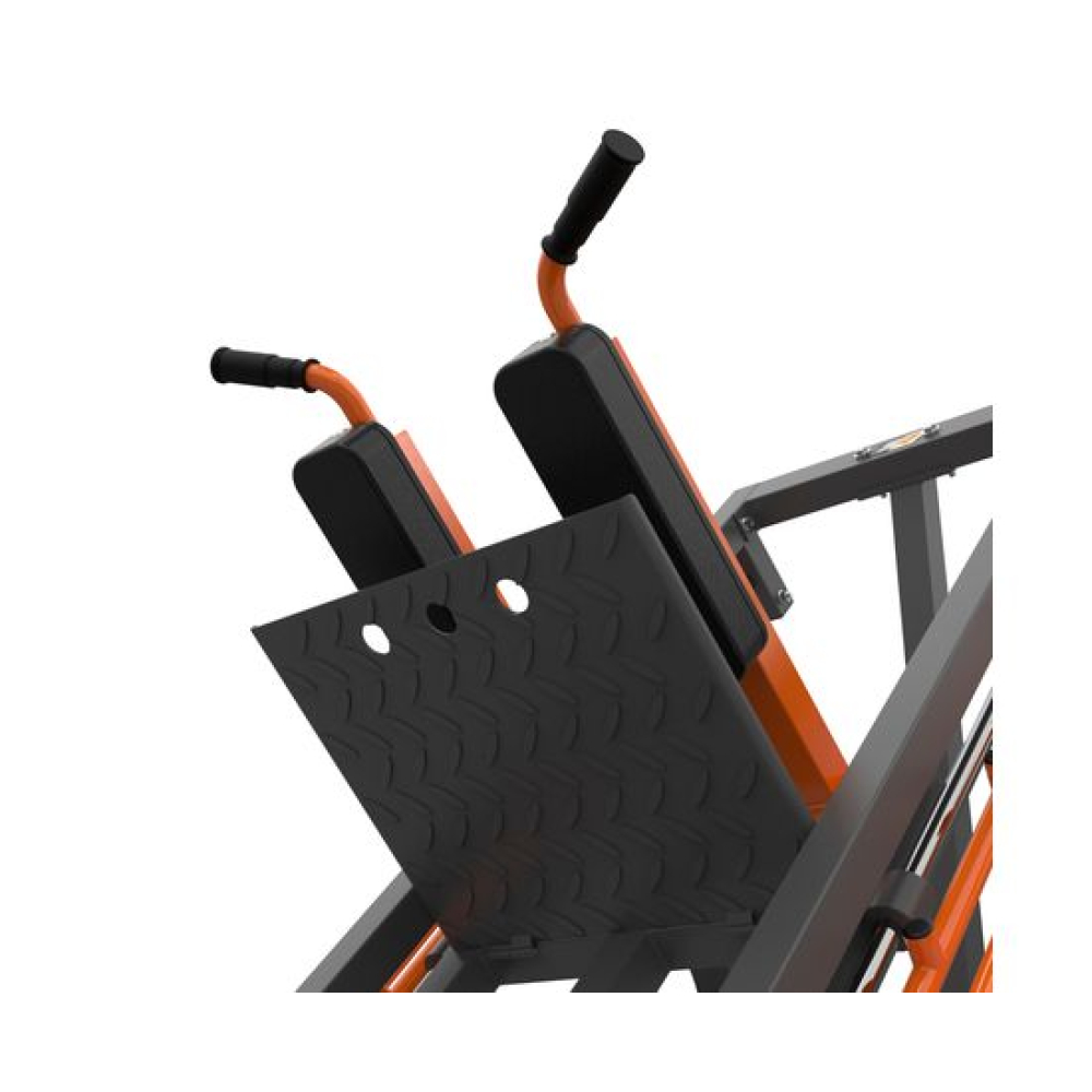 Жим ногами STONERISE DLP01. Максимальный вес пользователя до 150 кг.Размер основной рамы 50 х 50 х 2 мм, размер верхней соединительной трубы 70 х 50 х 2 мм. Спинка подушки регулируется в 5-ти положениях. Платформа для ног с рифлёным покрытием. Диаметр дисков для хранения 51 мм, нагрузка на каждый из держателей – до 50 кг.