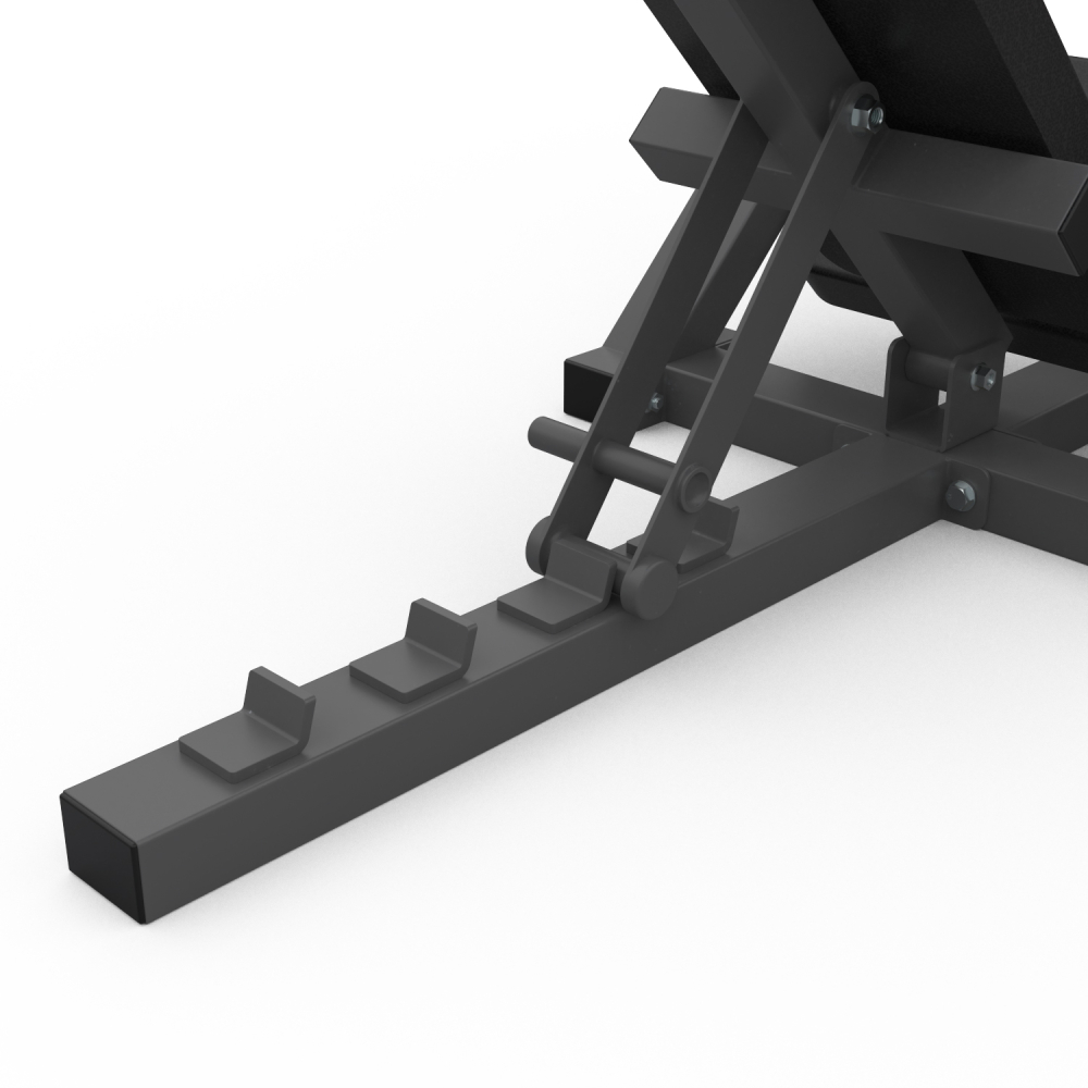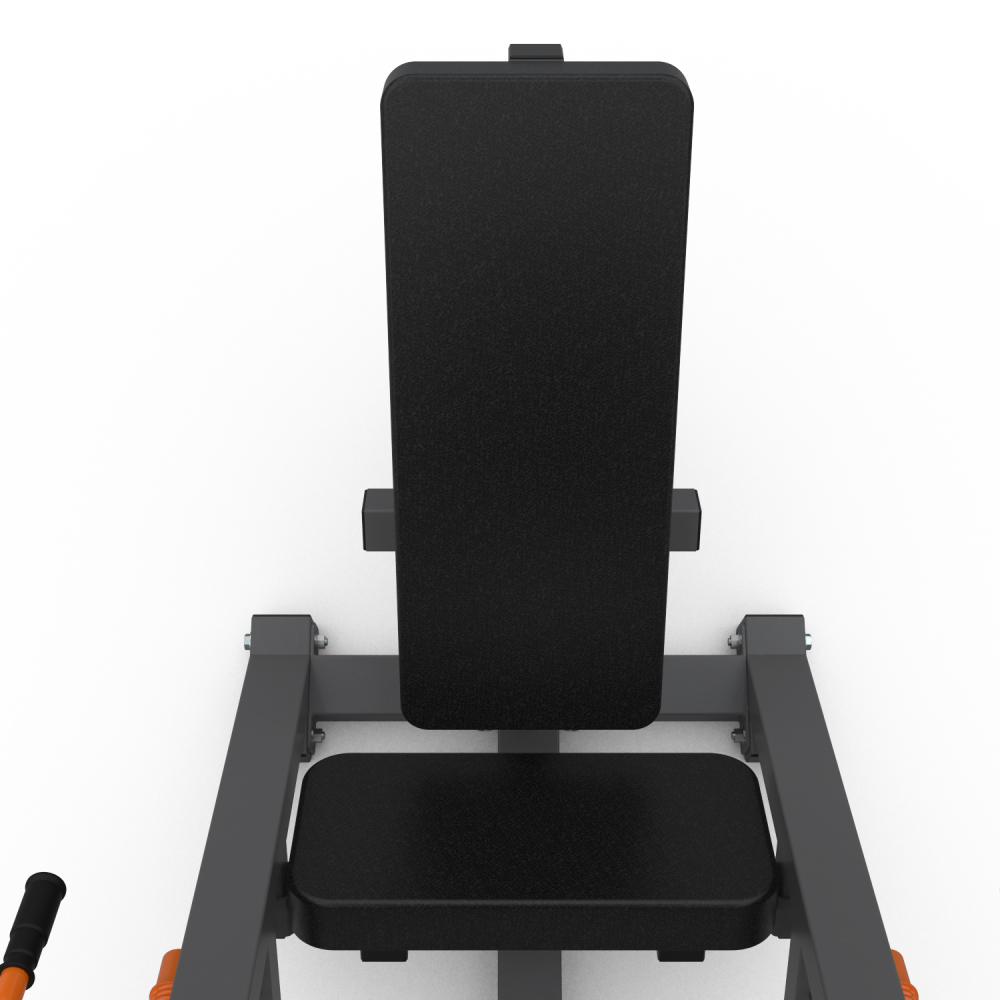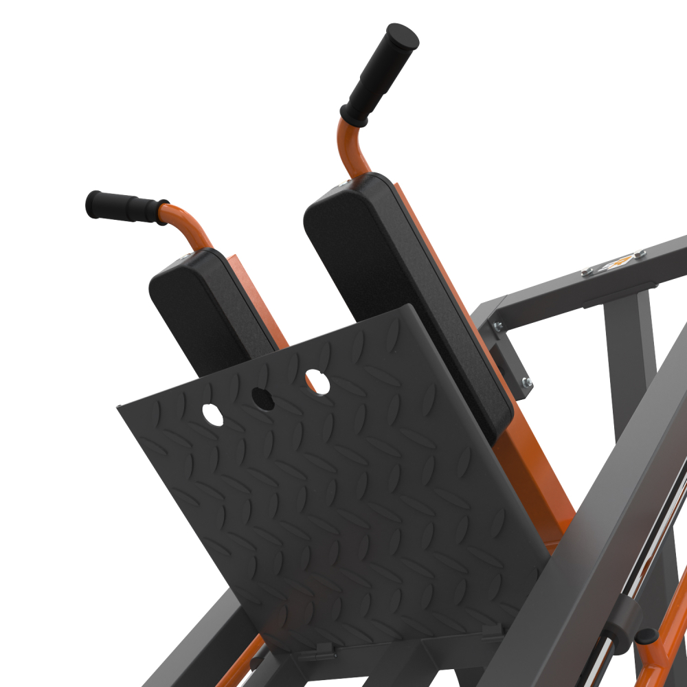 Жим ногами STONERISE DLP02. Максимальный вес пользователя до 200 кг. Размер основной рамы и верхней соединительной трубы 70 х 50 х 2 мм - это главное отличие моделей DLP. Спинка подушки регулируется в 5-ти положениях. Платформа для ног с рифлёным покрытием. Диаметр дисков для хранения 51 мм, нагрузка на каждый из держателей – до 50 кг.