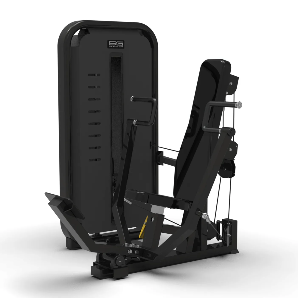 BRONZE GYM MIGHT 08 - профессиональный тренажер коммерческого класса для выполнения упражнения жим от груди. C помощью MIGHT 08 пользователь сможет проработать грудные мышцы. Профиль рамы тренажера, размером 100*50, выполнен из высокопрочной стали толщиной 3 мм. Благодаря двухслойному порошковому покрытию, обеспечивается защита корпуса от внешних повреждений на 98%. Прорезиненные, нескользящие рукоятки модели обеспечивают надежное сцепление рук пользователя во время занятий, что избавляет от риска получения травм. Стальной трос в ПВХ оболочке, общим диаметром 6 мм, отвечает за подъем стека, общий вес которого составляет 80 кг. Сами плиты стека изготовлены из прочной легированной стали. Установленное на модели эргономичное сиденье из высокопрочной экокожи гарантирует повышенный комфорт на протяжении всей тренировки. В качестве дополнения BRONZE GYM MIGHT 08 оснащен держателем для бутылки с водой.