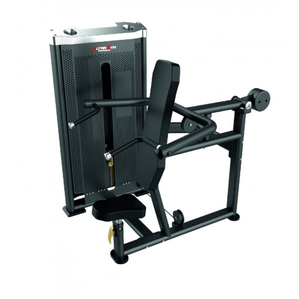 Тренажер UG-IN1906 предназначен для осуществления жима от плеч.Благодаря тренировкам на UG-IN1906 в работу включены сразу несколько групп мышц, такие как: мышцы живота и мышца, выпрямляющая позвоночник, вращающая манжета плеча, передняя зубчатая мышца, ромбовидные мышцы, верхний и нижний пучки трапециевидной мышцы, а также мышцы-сгибатели запястья.Тренажер отлично подходит для продвинутых пользователей, а также для людей, которые только хотят включить жим в свой тренировочный процесс.Биомеханически правильная, плавная траектория движения жимовых рычагов способствует равномерному распределению нагрузки, которую можно регулировать с помощью индивидуального подбора рабочего веса.Кроме того, модель UG-IN1906 оснащена регулируемым по высоте эргономичным сидением, благодаря которому пользователи любой комплекции и роста смогут подобрать для себя наиболее комфортное положение.Износоустойчивая обивка сидения и спинки способны выдерживать интенсивные непрерывные тренировки в течение длительного времени без необходимости реставрации или замены покрытий.Рукоятки, расположенные под определенным углом дают возможность выбрать наиболее удобный хват и расположение рук во время тренировки.Конструкция тренажера выполнена из высококачественного металлического профиля с нанесением двухслойного порошкового покрытия, также, для большей безопасности и износостойкости использован карбоновый шнур и система закрытого бесшумного стека, что является не только преимуществом модели среди аналогов, но и дополнительным уровнем безопасности пользователя.Тренажер UG-IN1906 в сравнении с упражнениями со свободным весом наиболее оптимален для пользователей не только продвинутого, но начального уровня подготовки, поскольку он исключает возможность получения травмы или случайного опрокидывания оборудования.