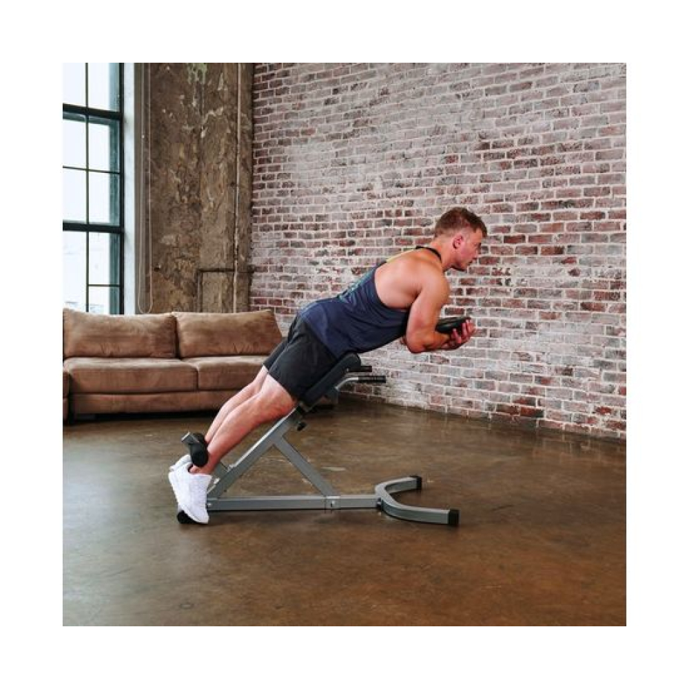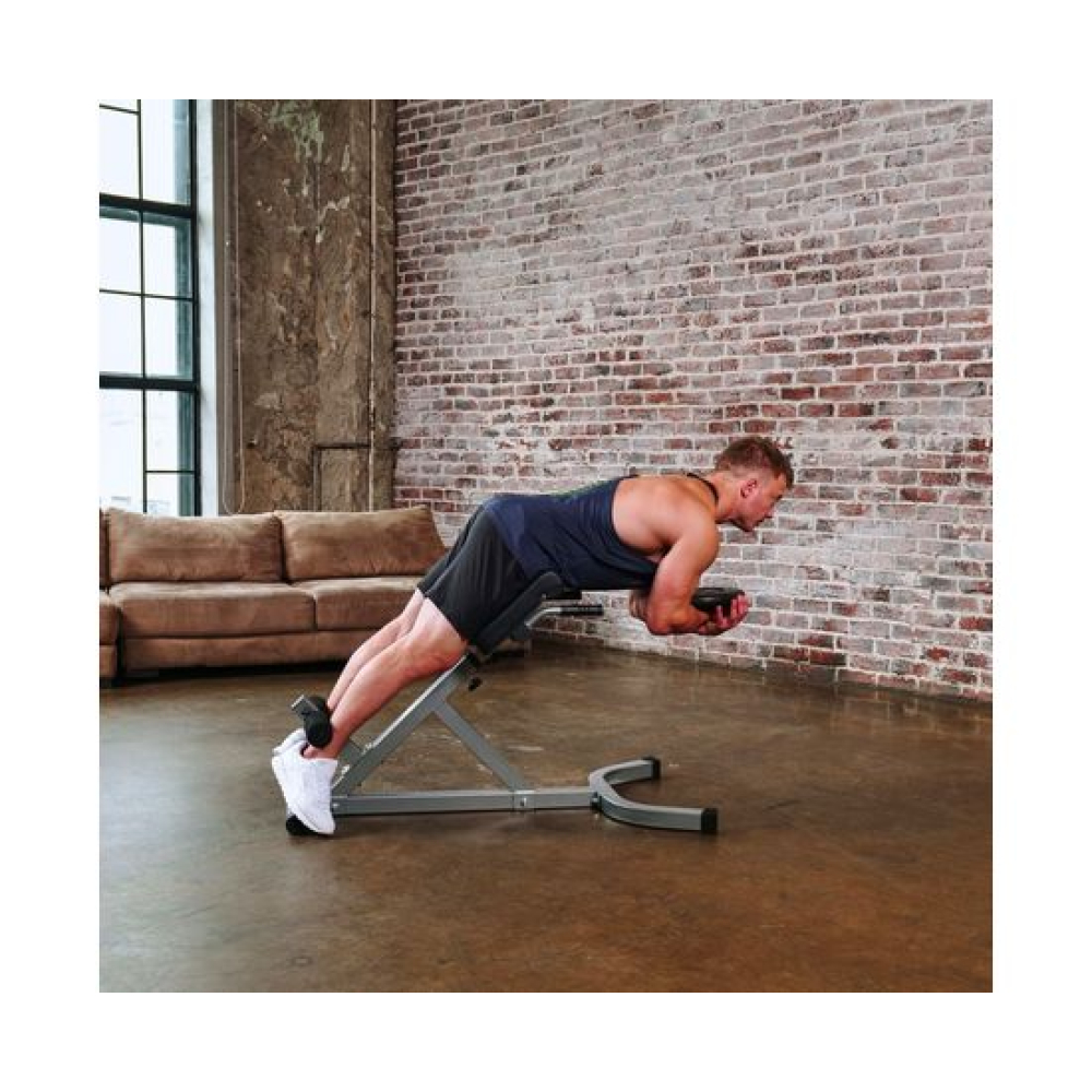 Надежный тренажер для укрепления мышц живота, спины и бедер. Снижает усталость спины, увеличивает гибкость, улучшает кровообращение.Регулировка по высоте в 6 положениях позволяет заниматься людям разного роста.Рама тренажера изготовлена из высокопрочной стали. Профиль размером 50 х 50 х 2 мм.