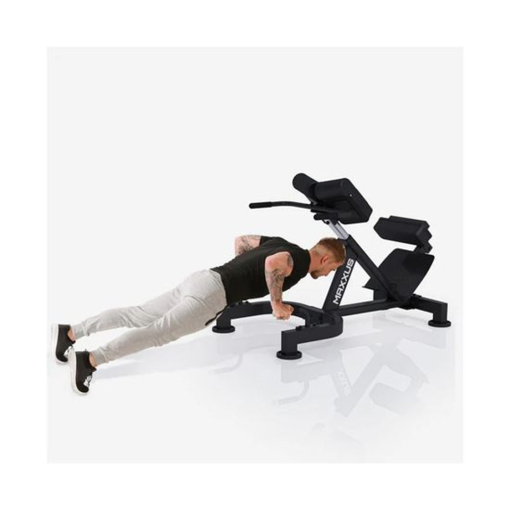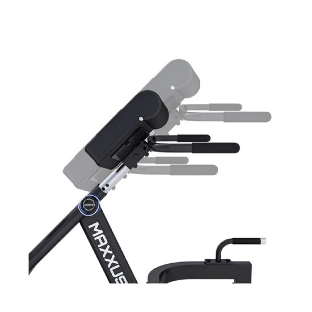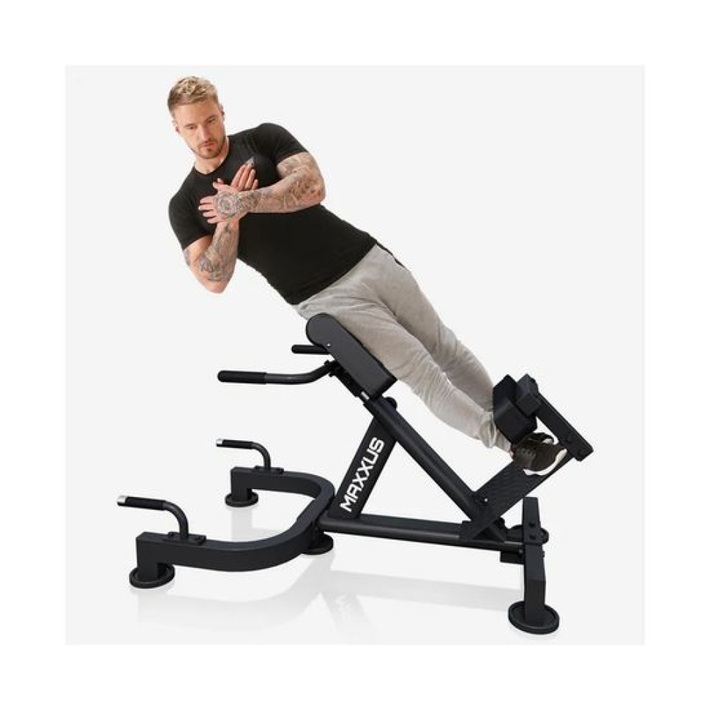 Гиперэкстензия / римский стул MAXXUS GSMX-600080 — это универсальный тренажёр для домашнего использования, который поможет эффективно укрепить мышцы спины, ягодиц, пресса и кора. Благодаря компактной конструкции и расширенным возможностям регулировки он легко адаптируется под пользователя с любым уровнем подготовки.Максимальная нагрузка на тренажер — до 180 кг. Каркас тренажёра изготовлен из прочной стальной рамы с профилем 50 х 100 х 2 мм, обеспечивающей устойчивость и долговечность. Прорезиненные широкие опорные ножки предотвращают скольжение и защищают напольное покрытие, гарантируя безопасность во время тренировки.Тренажер оснащён 16-уровневой регулировкой высоты, что позволяет точно подстроить его под рост пользователя. Спинка из плотного пеноматериала размером 30 х 19,5 х 8 см обеспечивает комфортную опору во время выполнения гиперэкстензий и других упражнений. Подушка для ног размером 39 х 12 х 8 см обеспечивает комфорт и надёжную фиксацию во время занятий. Встроенные рукоятки для отжиманий позволяют расширить арсенал упражнений и прорабатывать верхнюю часть тела.Гиперэкстензия / римский стул MAXXUS GSMX-600080 — это продуманный, устойчивый и универсальный тренажёр для тех, кто стремится укрепить тело и разнообразить тренировки дома. Надёжная конструкция, эргономичный дизайн и расширенные функции делают его отличным решением как для начинающих, так и для опытных пользователей.