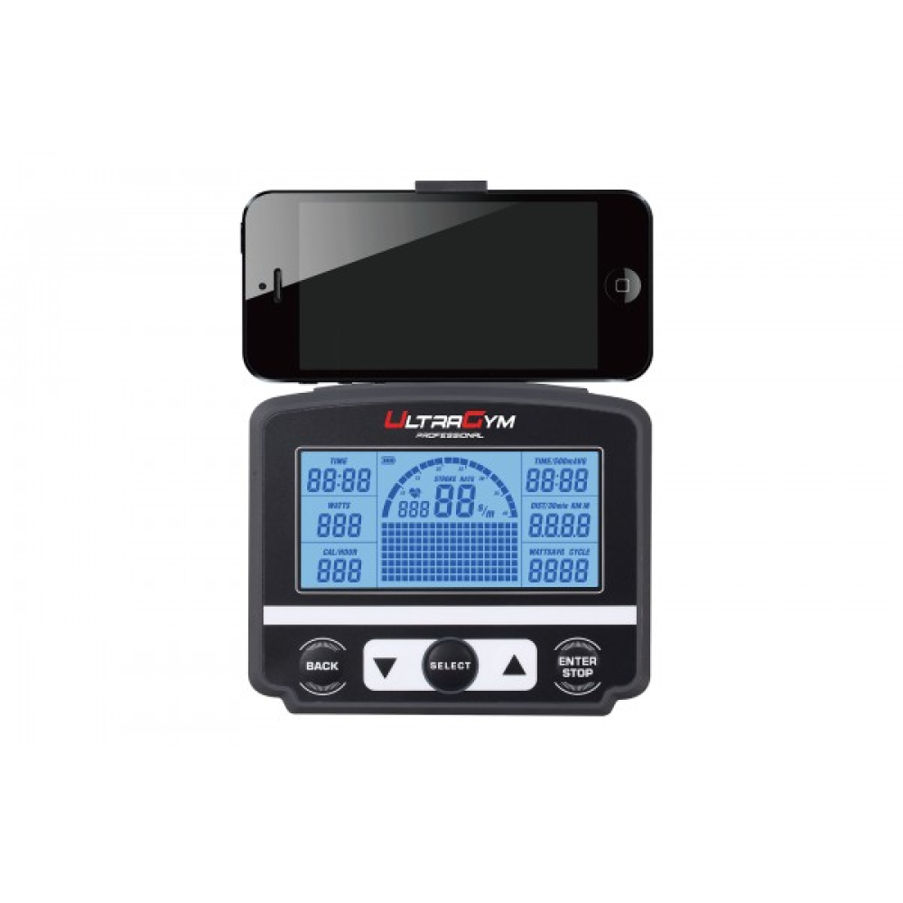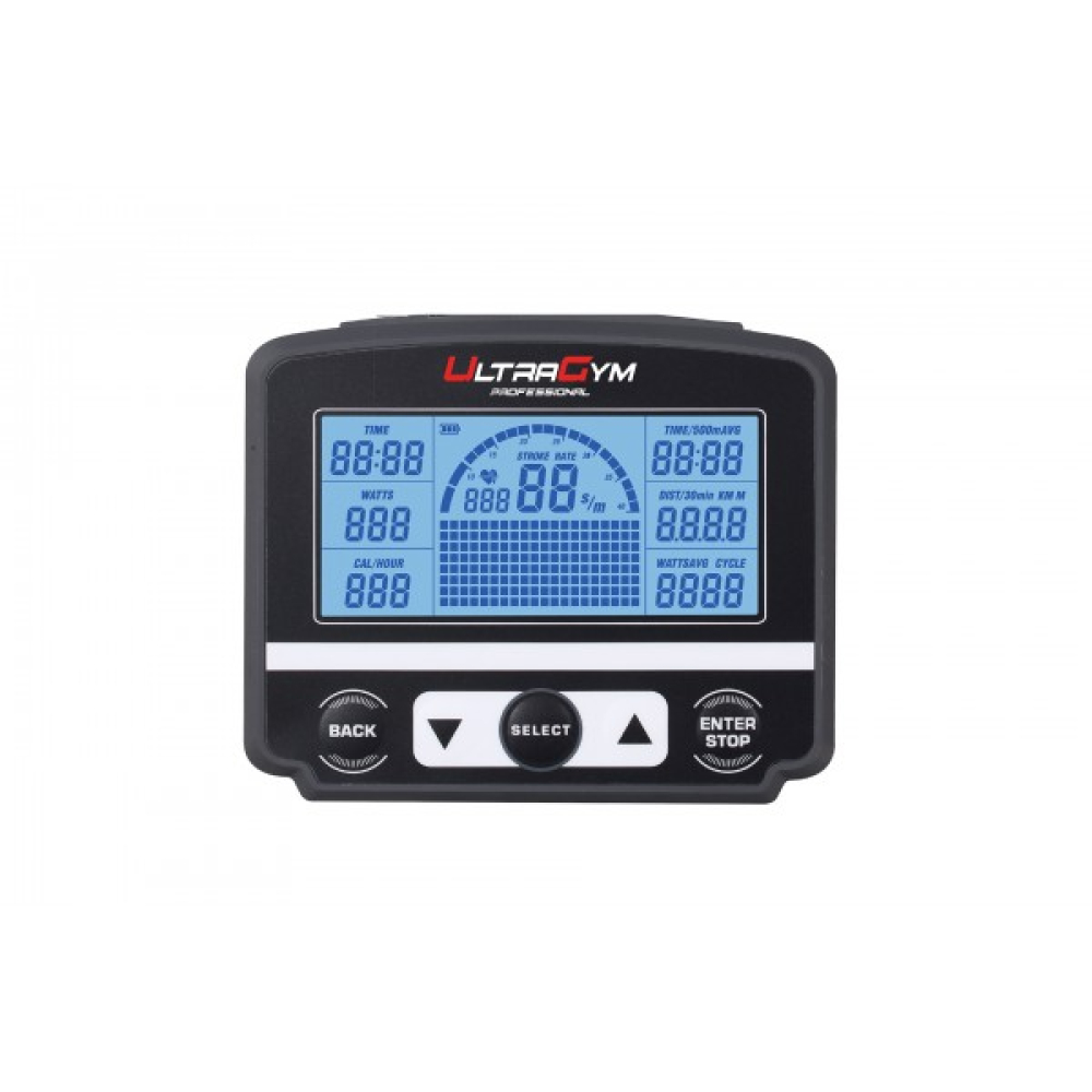 Кроме того, консоль тренажера оборудована дисплеем, который дает возможность отслеживать динамику тренировок и отображает такие данные как: расстояние, скорость, темп гребли и калории.