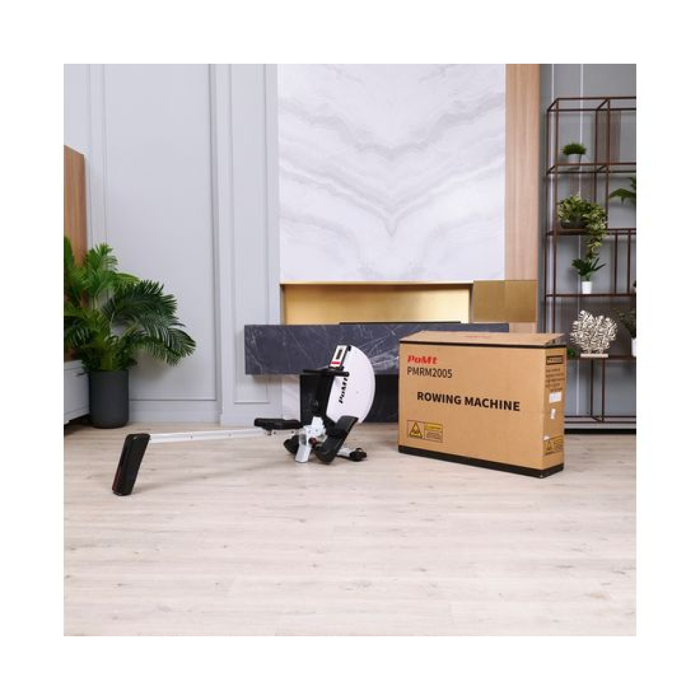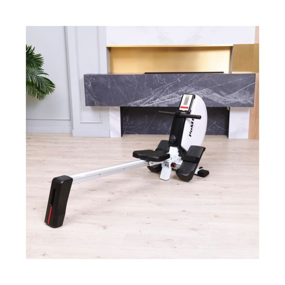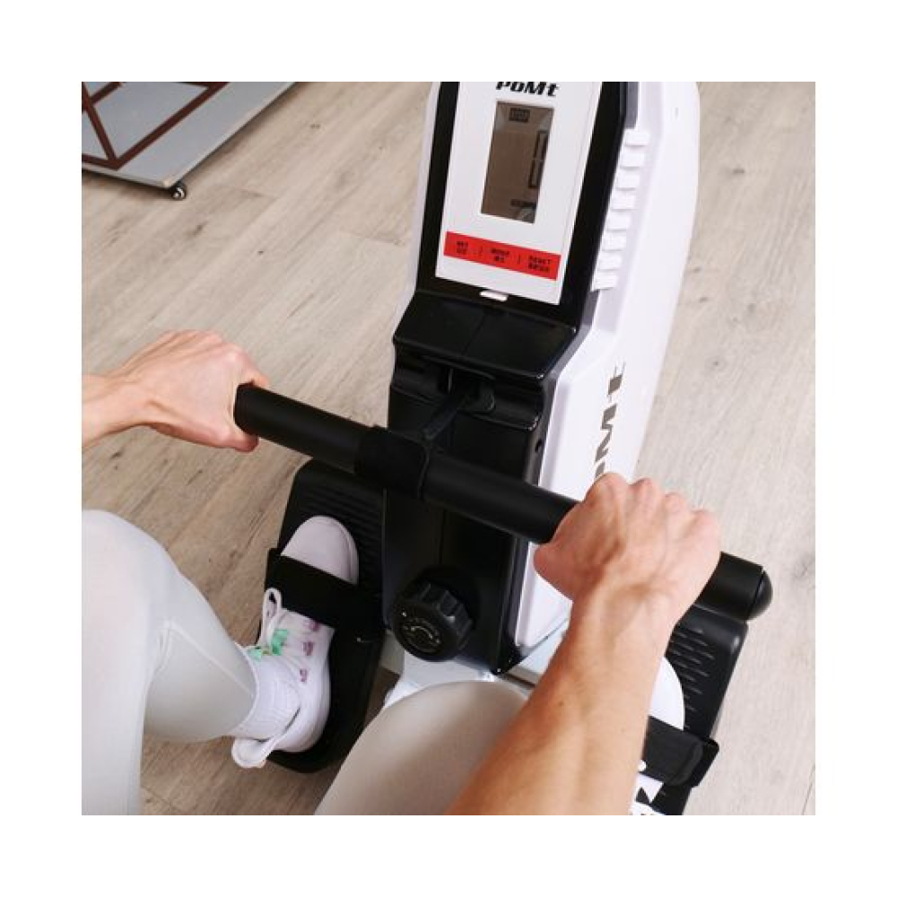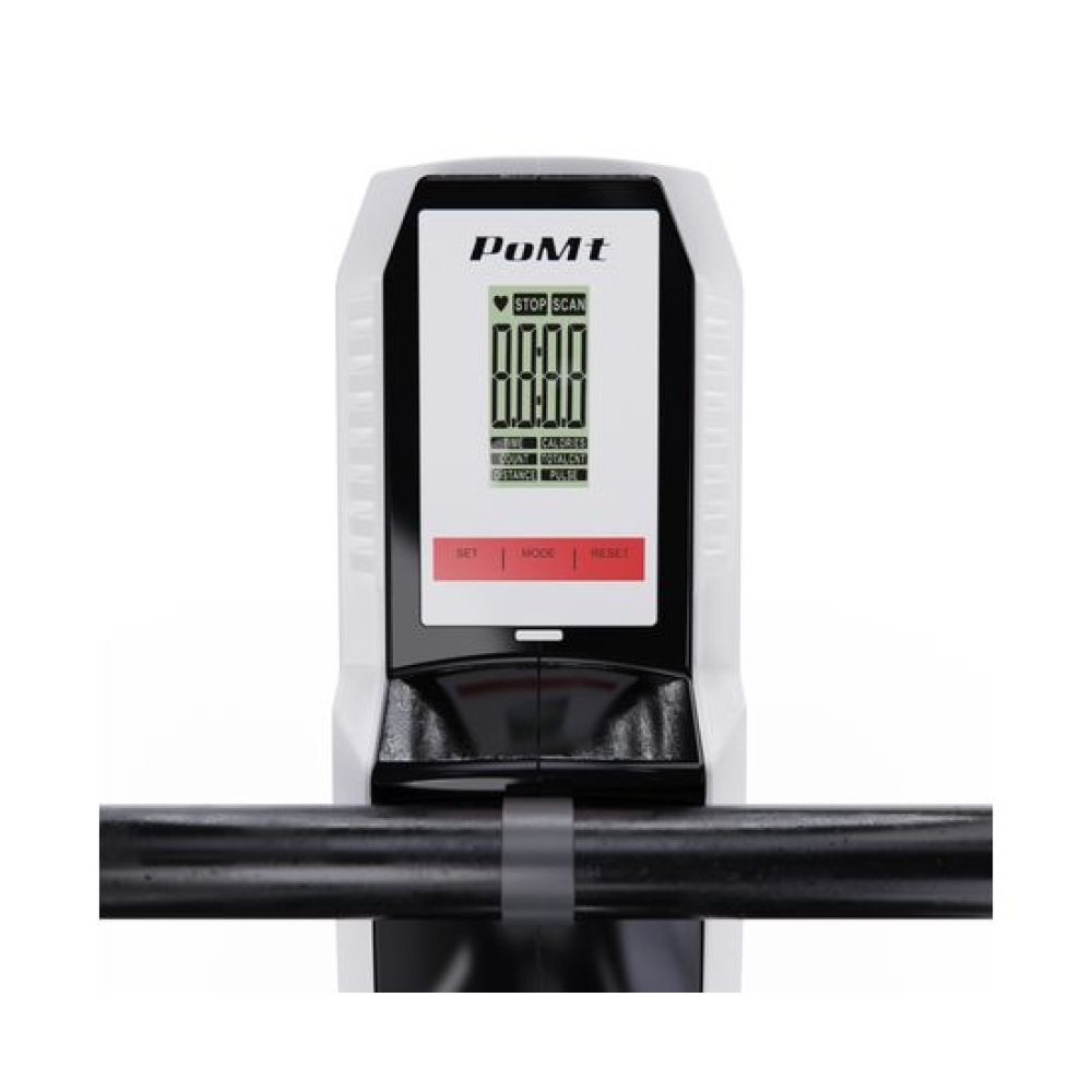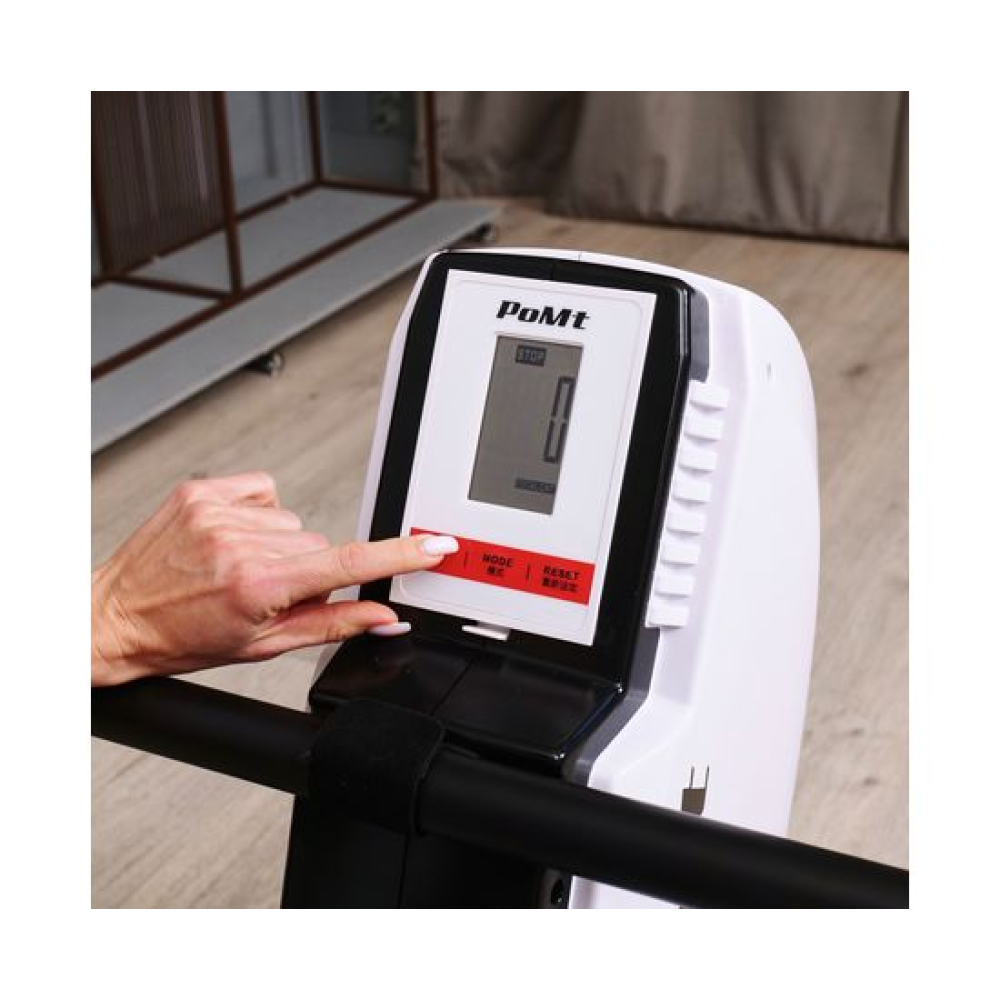 Гребной тренажёр DFC PoMt PMRM2005 — отличный выбор для домашних тренировок! Максимальный вес пользователя составляет 120 килограммов, что делает тренажер подходящим для людей с разной физической подготовкой. Гребной тренажёр для дома идеально подходит для укрепления мышц верхней части тела и развития выносливости.Кардиотренажер для ног и рук оснащён маховиком весом 4 килограмма и имеет магнитную систему нагрузки, что обеспечивает плавный и тихий ход: 8 уровней сопротивления. Монохромный LCD-дисплей отображает основные параметры тренировки, такие как пульс, время, количество гребков, общее количество гребков и калории, а также имеет режим сканирования. Размер консоли 15 х 9,5 х 3 см. Для работы консоли в комплект входят две батарейки типа АА.В рабочем состоянии гребной тренажер кардио имеет размеры 180 х 47 х 85 см, а также имеет компактные размеры в сложенном виде (98 х 47 х 137,5 см) и транспортировочные ролики, что позволяет удобно его хранить и легко перемещать его по дому.Домашний кардиотренажёр DFC PoMt PMRM2005 для ног и рук — отличный выбор для интенсивных тренировок, активного образа жизни и похудения!