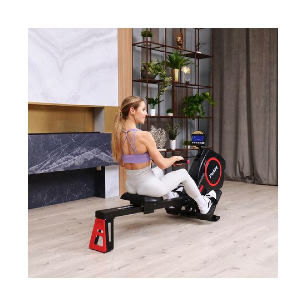 Гребной тренажёр DFC PoMt R-PMRM2006 — отличный выбор для домашних тренировок! Максимальный вес пользователя составляет 120 килограммов, что делает тренажер подходящим для людей с разной физической подготовкой. Гребной тренажёр для дома идеально подходит для укрепления мышц верхней части тела и развития выносливости.Кардиотренажер для ног и рук оснащён маховиком весом 6 килограмм и имеет электромагнитную систему нагрузки, что обеспечивает плавный и тихий ход. Имеет 16 уровней регулировки. Монохромный LCD-дисплей с подсветкой отображает основные параметры тренировки, такие как время, скорость, расстояние, гребки, а 12 встроенных программ помогут вам разнообразить тренировки. Размер консоли 11,8 х 17,8 х 4,3 см. В комплект поставки входят 2 батарейки типа АА.В рабочем состоянии гребной тренажер кардио имеет размеры 172 х 54 х 86 см, а также имеет компактные размеры в сложенном виде и транспортировочные ролики, что позволяет удобно его хранить и легко перемещать по дому.Домашний кардиотренажёр DFC PoMt R-PMRM2006 для ног и рук — отличный выбор для интенсивных тренировок, активного образа жизни и похудения!