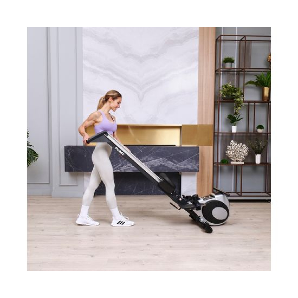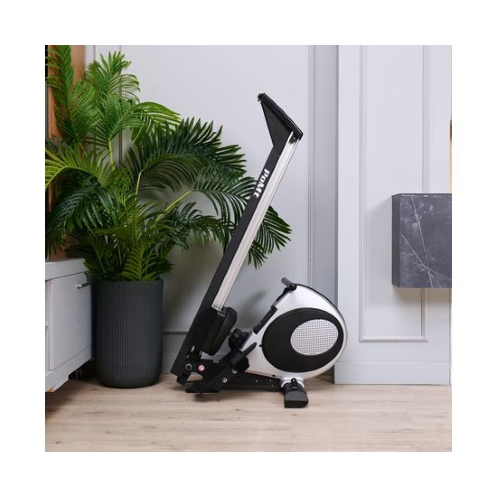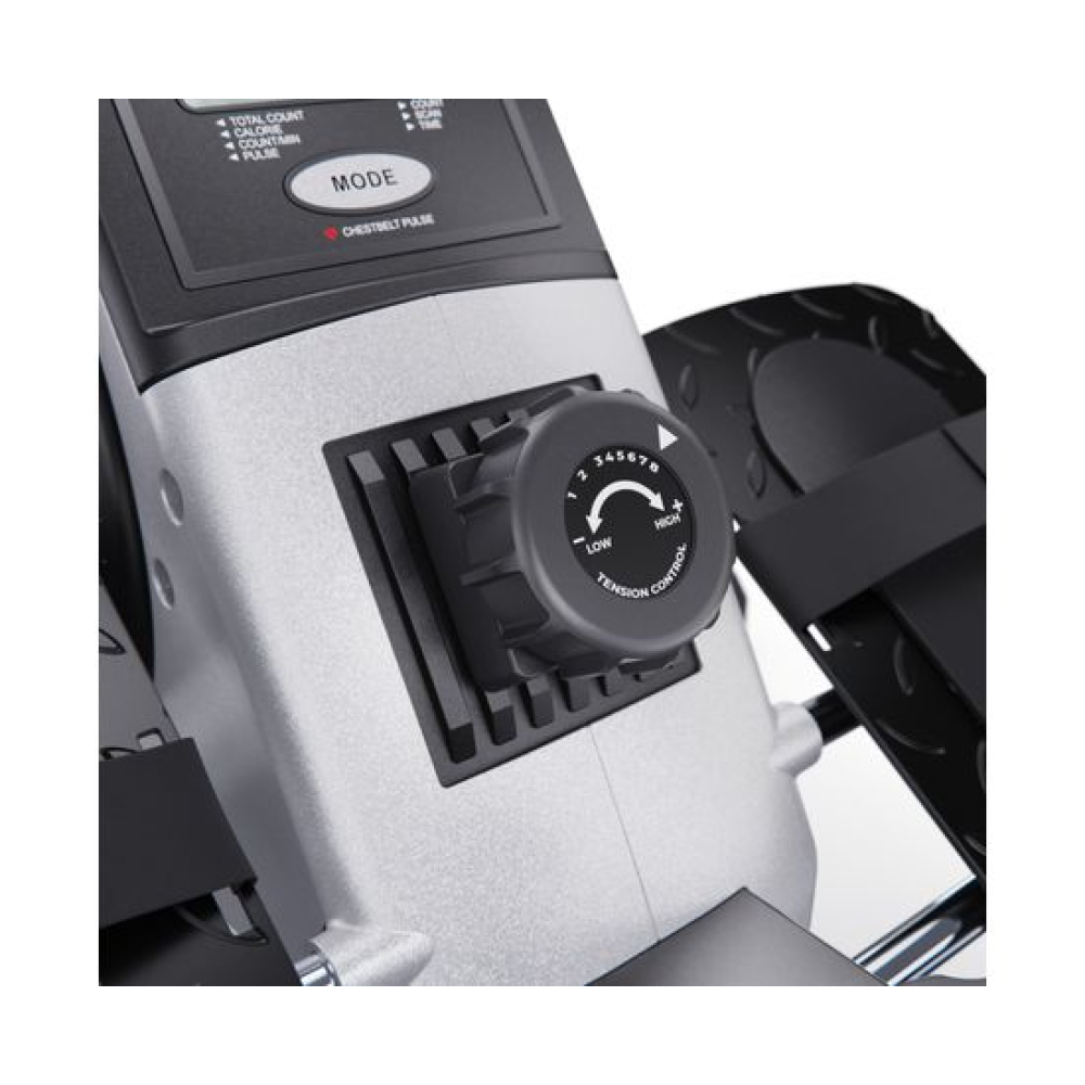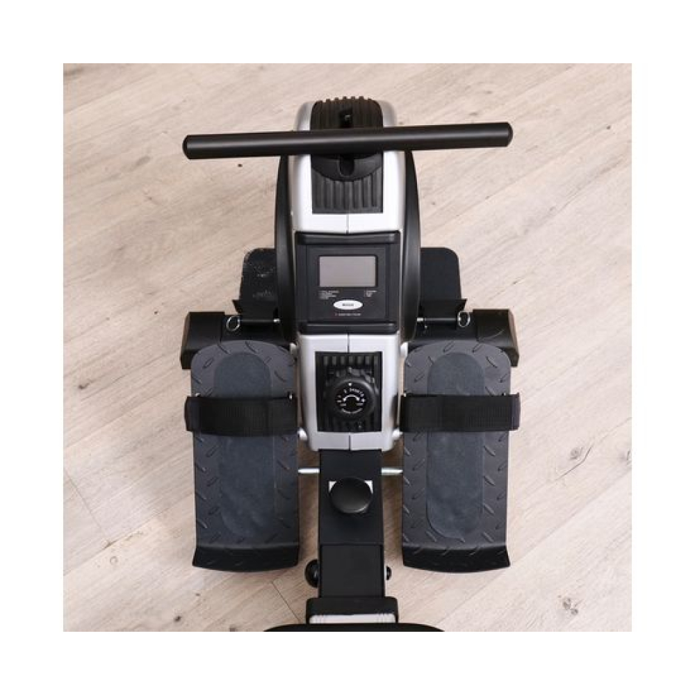 Гребной тренажёр DFC PoMt серого цвета — отличный выбор для домашних тренировок! Максимальный вес пользователя составляет 120 килограммов, что делает тренажер подходящим для людей с разной физической подготовкой. Гребной тренажёр для дома идеально подходит для укрепления мышц верхней части тела и развития выносливости.Кардиотренажер для ног и рук оснащён маховиком весом 4 килограмма и имеет магнитную систему нагрузки, что обеспечивает плавный и тихий ход. 8 уровней нагрузки. Монохромный LCD-дисплей отображает основные параметры тренировки, такие как время, количество гребков, общее количество гребков и калории, а также имеет режим сканирования. Размер консоли 10,5 х 11 х 3 см.В рабочем состоянии гребной тренажер кардио имеет размеры 190 x 58 x 50 см, а также имеет компактные размеры в сложенном виде (123 x 58 x 124 см) и транспортировочные ролики, что позволяет удобно его хранить и легко перемещать его по дому.Домашний кардиотренажёр DFC PoMt для ног и рук — отличный выбор для интенсивных тренировок, активного образа жизни и похудения!