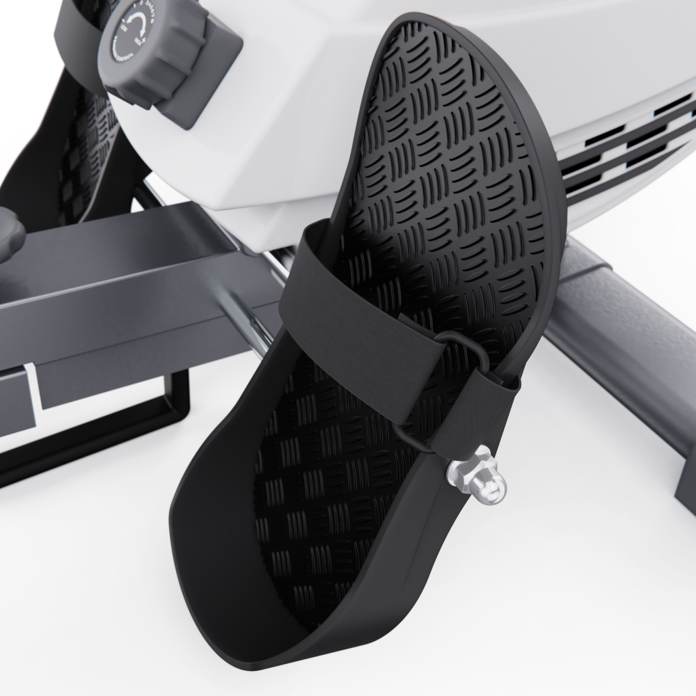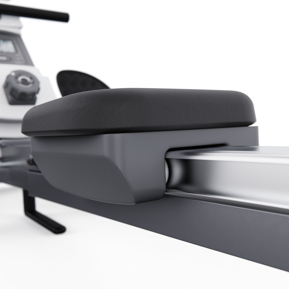 Гребной тренажер DFC SQ-RM901 — это надежный и удобный тренажер для домашних тренировок, оснащенный магнитной системой нагрузки и функцией Bluetooth. Он сочетает в себе эффективность, комфорт и современные технологии, помогая достигать высоких результатов. Модель рассчитана на пользователей весом до 115 кг. Слайд длиной 105 см обеспечивает естественную амплитуду движений, а длина рукоятки 42 см позволяет сохранять удобный хват и правильную биомеханику при каждом гребке. Эргономичная конструкция способствует правильному положению тела, снижая нагрузку на спину и суставы. Это полноценный тренажер для ног, который также эффективно прорабатывает мышцы спины, плечевого пояса и кора, обеспечивая комплексную нагрузку на все тело. Магнитная система нагрузки обеспечивает плавное и бесшумное сопротивление, позволяя тренироваться с комфортом и эффективностью. Тренажер предлагает 8 уровней сопротивления с механической регулировкой нагрузки, которые позволяют легко настроить интенсивность тренировки в зависимости от вашего уровня подготовки и цели. Тренажёр оснащён монохромным LCD-дисплеем, отображающим ключевые показатели тренировки — количество гребков в минуту, калории, общее количество гребков, время, режим сканирования и дистанцию. Дисплей работает от двух батареек типа AA (не входят в комплект). Для расширения функционала предусмотрено подключение по Bluetooth к приложению FITSHOW, что позволяет отслеживать прогресс и делать занятия более увлекательными. Тренажёр складной, что позволяет компактно хранить его в сложенном виде, экономя пространство в квартире или доме. Компактные габариты в сложенном состоянии делают его удобным для хранения даже в небольших помещениях. Рифленые педали с регулируемыми ремешками обеспечивают надежную фиксацию ног. Также есть компенсаторы неровности пола, которые гарантируют стабильность тренажера, а транспортировочные ролики обеспечивают лёгкое и удобное перемещение, позволяя без труда менять его расположение в помещении. Гребной тренажёр DFC SQ-RM901 — это идеальный выбор для эффективных домашних тренировок. Он оснащён подставкой под планшет и держателем для бутылки, что обеспечивает комфорт и удобство во время занятий. Плавное сопротивление и надёжная конструкция делают тренировку эффективной и безопасной. Гарантия на детали подверженные естественному износу в процессе эксплуатации — до 6 месяцев с момента установки тренажера при условии регулярного планового ТО. Важно: гарантия не распространяется на преждевременный износ из-за чрезмерной эксплуатации тренажера.