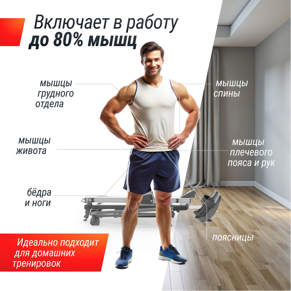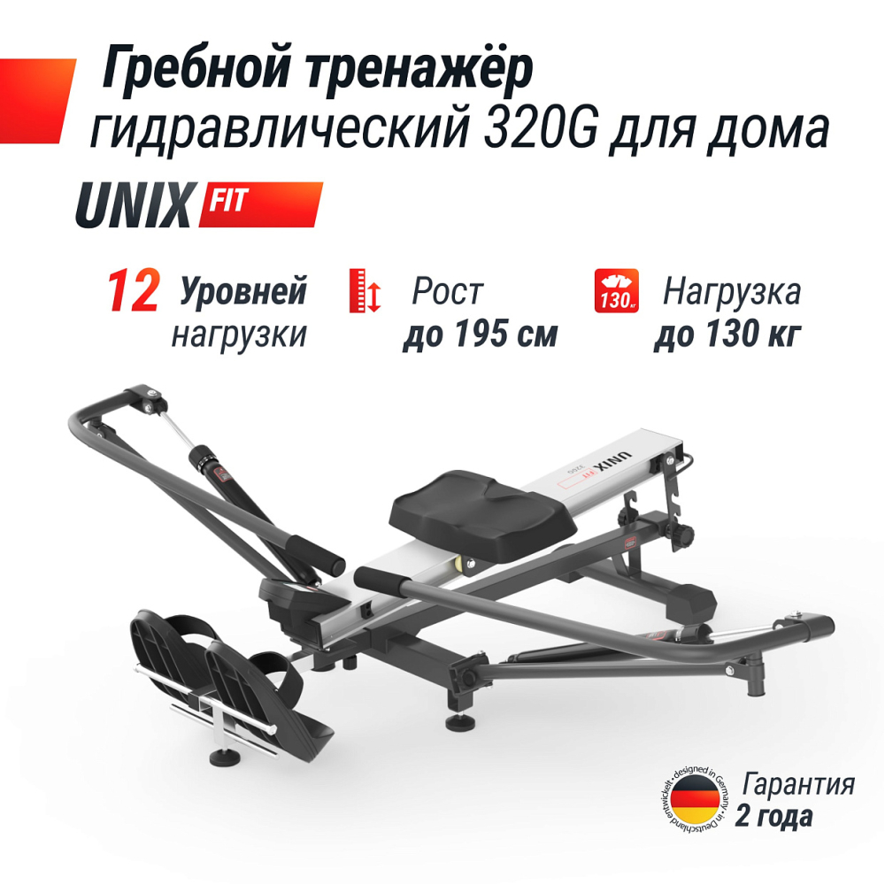 Откройте для себя мир эффективных тренировок с нашим гидравлическим гребным тренажером UNIX Fit 320G, который сочетает в себе инновационный дизайн, передовые технологии и максимальный комфорт! Этот тренажер станет вашим незаменимым помощником на пути к достижению спортивных целей, укреплению здоровья и улучшению общего самочувствия. Гидравлический гребной тренажер отличается компактностью и легкостью, что делает его идеальным дополнением даже для самых небольших пространств. . . Он оснащен гидравлической системой сопротивления, обеспечивающей плавные и бесшумные движения. Уровень сопротивления легко регулируется, что позволяет адаптировать тренировки к вашему текущему уровню физической подготовки и постепенно увеличивать нагрузку по мере вашего прогресса. Гидравлический гребной тренажер с рамой из армированной стали использует уникальную систему скандинавской тяги, которая обеспечивает плавное и естественное движение, максимально имитируя греблю на воде. Эта технология помогает активировать все основные группы мышц: спину, плечи, руки, пресс и ноги. Вы получаете полноценную кардионагрузку, которая способствует улучшению выносливости и силы. Прочная конструкция гарантирует долговечность и выдерживает пользователей с массой тела до 130 кг. . . Встроенный LCD дисплей отображает важные параметры тренировки: время, дистанция, общее число гребков (за все пройденные тренировки), калории, удары в минуту, число гребков в момент тренировки). Этот полезный инструмент поможет вам отслеживать свой прогресс и достигать поставленных целей. Вы сможете легко контролировать свою тренировку и адаптировать ее в зависимости от ваших потребностей. . Тренажер для гребли имеет 12 уровней регулировки нагрузки, что позволяет адаптировать интенсивность тренировок под свои физические возможности. Независимо от того, новичок вы или опытный спортсмен, вы сможете настроить уровень нагрузки так, чтобы каждая тренировка была эффективной и комфортной. . Тренажер спроектирован с учетом анатомии человека, что обеспечивает максимальный комфорт во время занятий. Антискользящее сиденье повышенной комфортности с мягкой обивкой и система амортизации помогают снизить нагрузку на суставы, позволяя вам сосредоточиться на тренировке без дискомфорта. . Гребник с 10 ступенчатым уровнем регулировки под рост человека, а также 3 уровня регулировки наклона (25 - 34 см) позволяет максимально точно настроить кардиотренажер для рук и ног под конкретного пользователя. Уникальная система скандинавской тяги обеспечивает высокую эффективность тренировок, позволяя вам достигать результатов быстрее! Возможность вращения рукояток на 180 градусов позволяет задействовать различные группы мышц. На каждый рычаг можно создать свою нагрузку и тренироваться с индивидуальным подходом. . Домашний кардио тренажер был специально разработан с учетом потребностей современных пользователей. Складная конструкция позволяет легко хранить его в любом уголке вашего дома. В считанные секунды вы сможете разложить гребной тренажер и начать тренировку, а по окончании занятий просто сложить его и убрать . Тренируйтесь с удовольствием и с UNIX Fit! . .