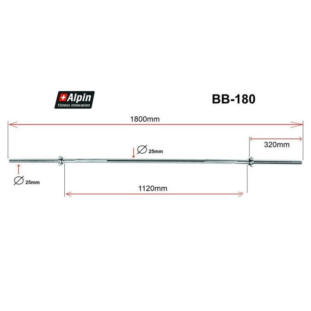 гриф для штанги, 1 шт., конструкция: цельная, посадочный 25 мм, длина 180 см. Гарантия до 5 лет. Свой сервисный центр.
