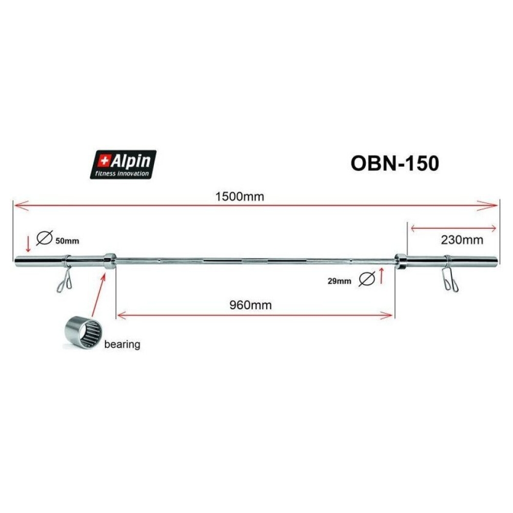 Технические характеристики Гриф для штанги Alpin OBN-150