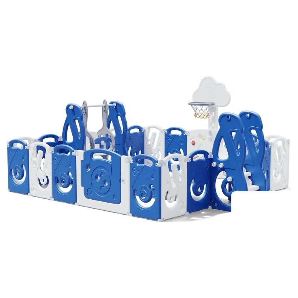 Манеж выполнен из безопасных и качественных материалов, что гарантирует долговечность и надежность. Уникальный дизайн в голубом цвете идеально впишется в любой интерьер. С функцией музыки ваш ребенок сможет наслаждаться любимыми мелодиями во время игры.