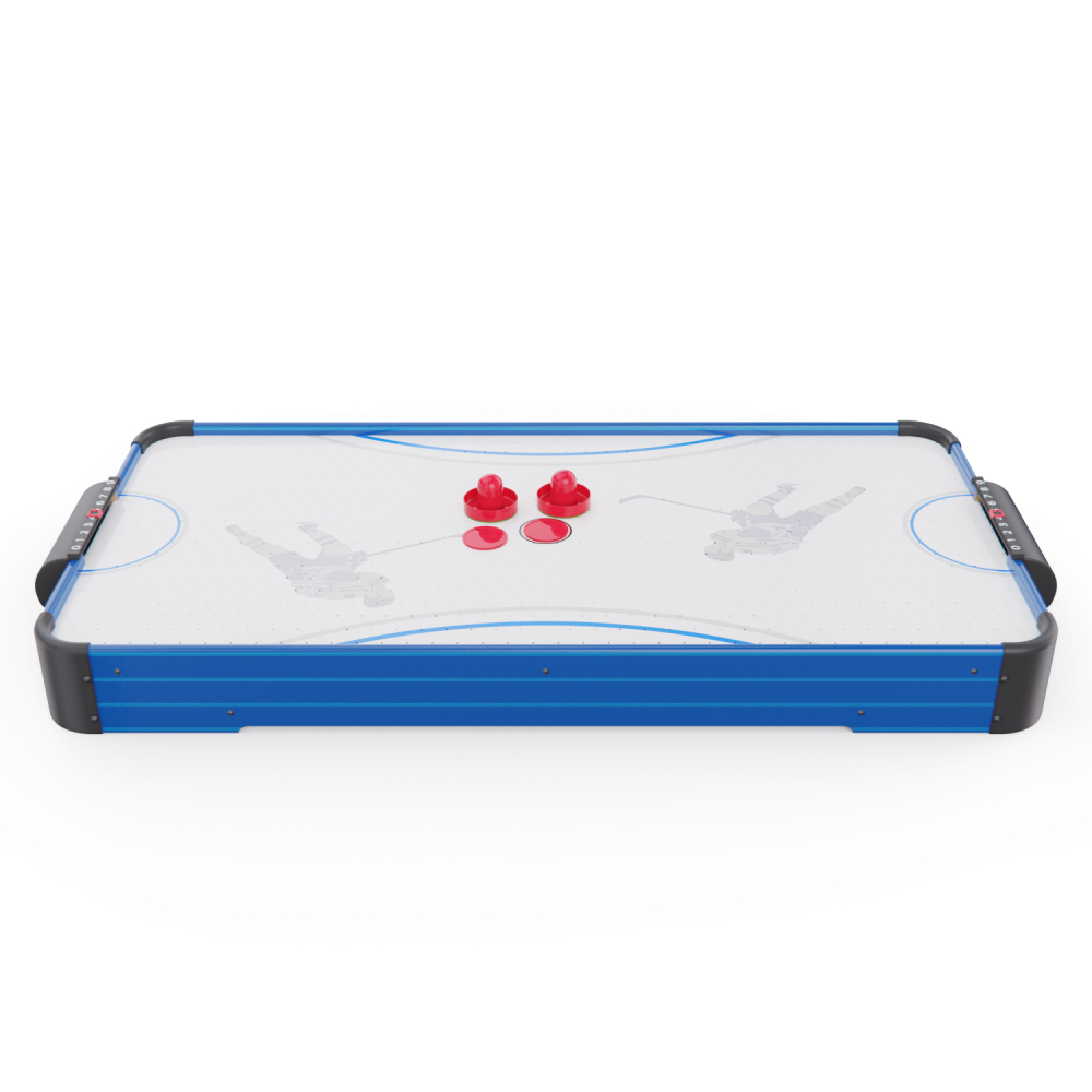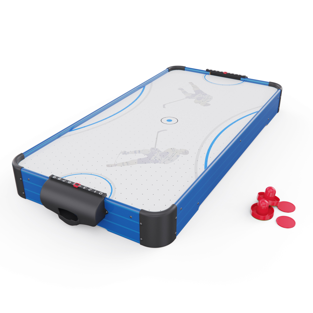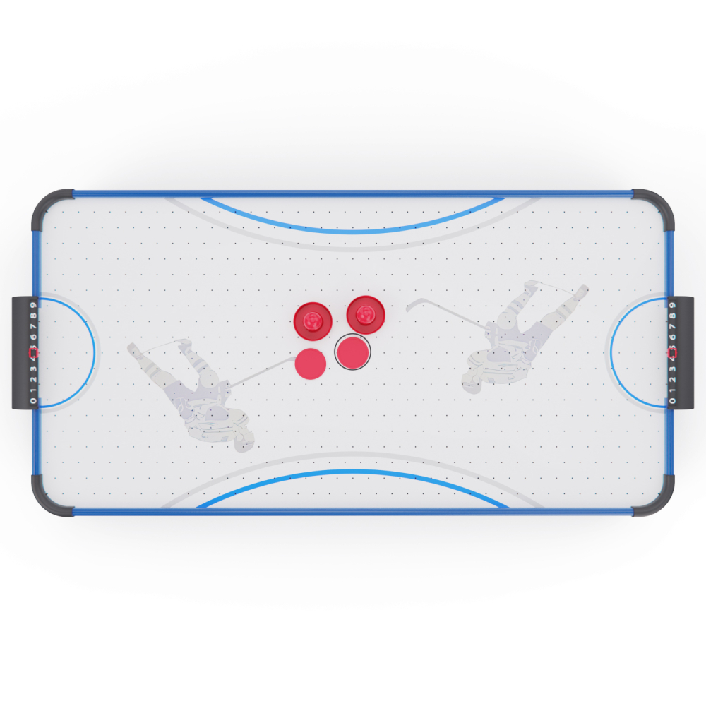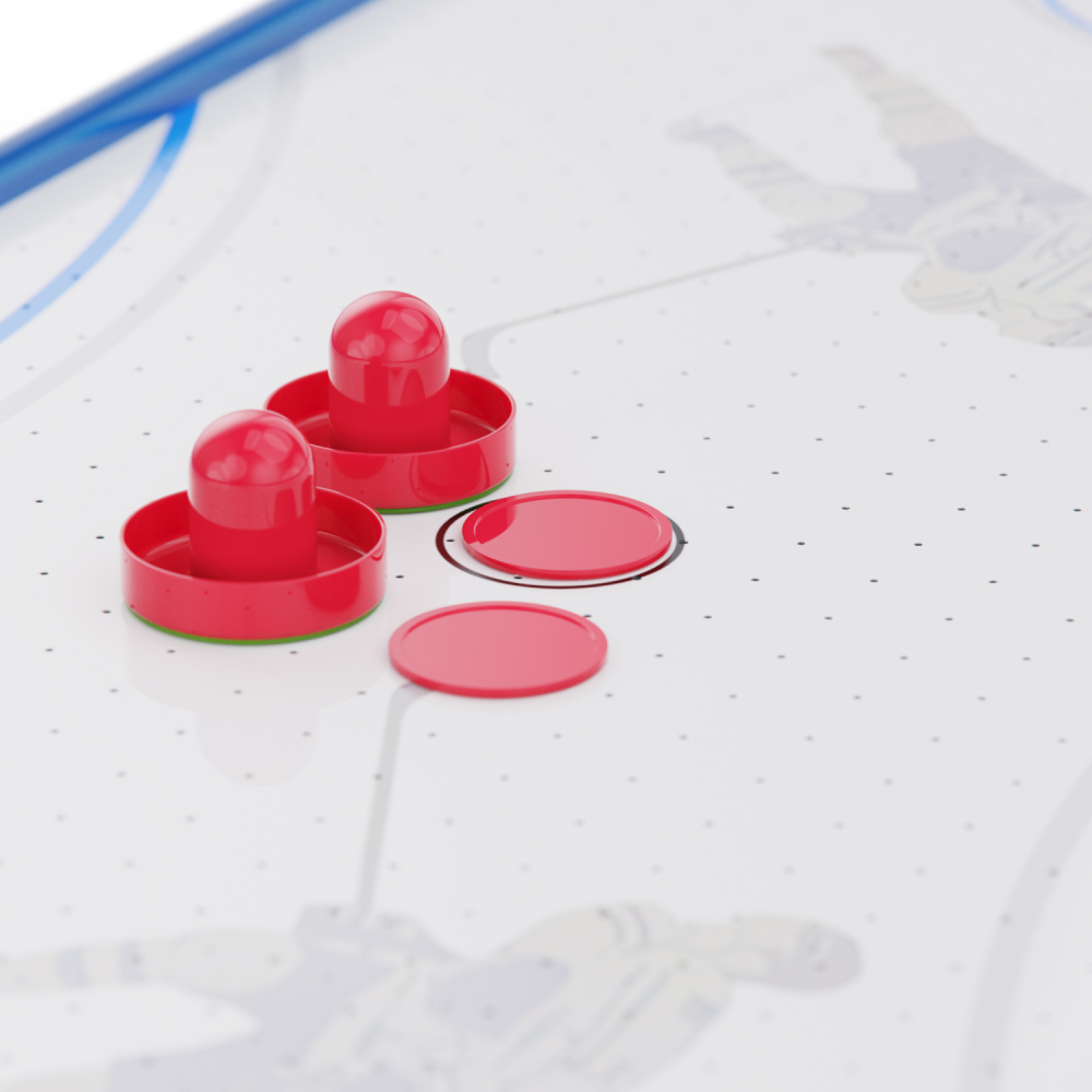 Игровой стол - аэрохоккей DFC AT-415 — это отличное решение для активного досуга всей семьи. Этот настольный аэрохоккей станет отличным подарком для детей и взрослых, развивает реакцию и внимание, объединяет в игре и создает позитивную атмосферу в доме. Игровое поле выполнено из прочного МДФ и имеет габариты 99 х 48 см, что обеспечивает хорошее пространство для динамичных матчей. Толщина бортиков — 9 мм повышает устойчивость и прочность конструкции. Диаметр бит составляет 65 мм, шайб — 55 мм. В комплект входят: 2 шайбы, 2 биты и механические счётчики очков — всё, что нужно для начала игры. Вы сможете устроить настоящий турнир дома или в компании друзей! Игровой стол оснащён вентилятором на 220V, создающим воздушную подушку под шайбой. Это обеспечивает лёгкое и быстрое скольжение по полю, делая игру более захватывающей и реалистичной. Благодаря весу всего 6 кг и размерам 101 х 50,2 х 9,6 см, аэрохоккей DFC AT-415 легко переносить, хранить и устанавливать на любой стол или ровную поверхность. За счёт компактного размера и удобной конструкции, он идеально подходит для домашнего использования, а простая установка позволяет начать игру в любое время.