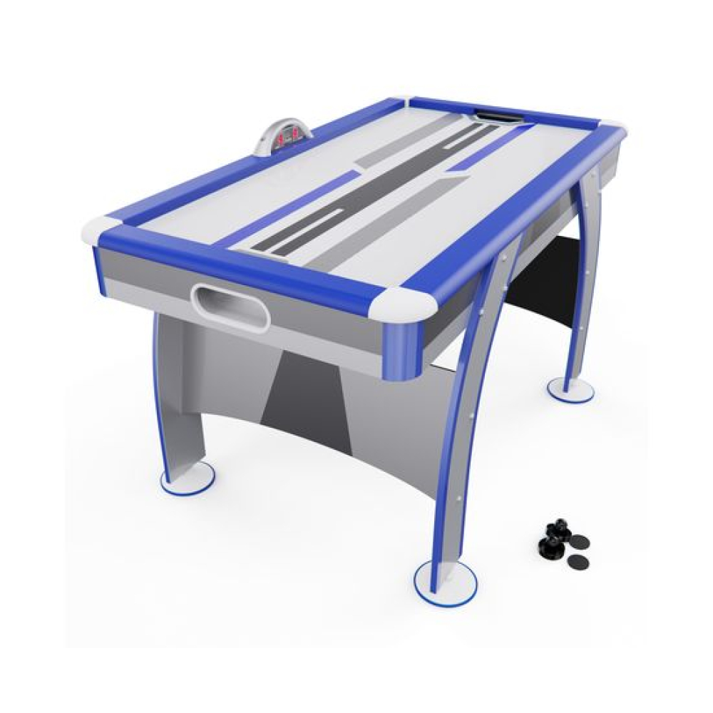 Игровой стол – аэрохоккей DFC AT-520 – идеальный домашний атрибут, который станет отличным выбором для активного отдыха всей семьи. Благодаря компактным размерам и прочной конструкции он идеально подходит для домашнего использования, позволяя устроить увлекательные матчи прямо у себя в гостиной или игровой комнате.Аэрохоккей DFC AT-520 оснащён мощным вентилятором, работающим от сети 220 В, который создаёт равномерный воздушный поток по поверхности стола. За счёт этого шайба легко и быстро скользит по полю, обеспечивая максимальную динамику игры и реалистичный эффект настоящего хоккейного матча.Игровое поле размером 121,6 х 59 см выполнено из прочного МДФ с бортиками толщиной 18 мм, что гарантирует долговечность и комфорт при игре. Размер стола в рабочем виде составляет 136 х 73,6 х 81 см (54"), а вес конструкции – 24 кг, что делает его устойчивым и надёжным в процессе использования.В комплект входят 2 шайбы диаметром 55 мм и 2 биты диаметром 65 мм, что позволяет сразу приступить к игре. Все элементы подобраны таким образом, чтобы обеспечить удобство и безопасность игроков любого возраста.Игровой стол-аэрохоккей для дома DFC AT-520 станет отличным дополнением к вашему досугу, поможет разнообразить отдых и превратит его в увлекательное соревнование. Такой стол для аэрохоккея прекрасно подойдёт как для взрослых, так и для детей, развивая реакцию, координацию и внимание.