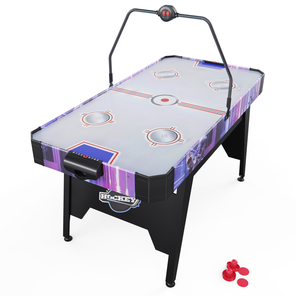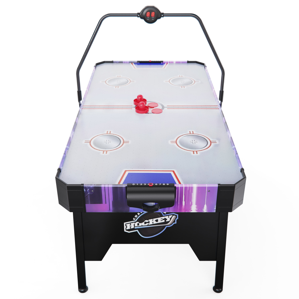 Игровой стол - аэрохоккей DFC AT-205 — это современная и стильная модель, идеально подходящая для домашнего использования. Он создан для активного отдыха и весёлого времяпрепровождения в кругу семьи или друзей. Игровое поле стола выполнено из качественного МДФ с гладким покрытием, что гарантирует гладкую поверхность для легкого скольжения шайбы. Толщина поля 3 мм, бортики высотой 15 мм и толщиной 12 мм защищают шайбу от вылета, обеспечивая комфорт и безопасность игры. Встроенный вентилятор на 220 В создает воздушную подушку, по которой шайба скользит практически без трения — именно так достигается эффект настоящего аэрохоккея. Для удобства игроков стол оснащён электронным и механическим счётчиком очков, что позволяет отслеживать результаты в реальном времени. Электронное табло работает от двух батареек типа AA (в комплект не входят). В набор также входят 2 биты диаметром 65 мм и 2 шайбы диаметром 55 мм — все, что нужно для увлекательной игры сразу после сборки. Особое внимание уделено устойчивости и надёжности конструкции. В основании стола предусмотрен регулировочный винт на ножках, который позволяет точно выровнять стол и обеспечить стабильность даже на неровной поверхности. Высота ножек 73 см делает стол удобным для игроков разного возраста. Игровой стол - аэрохоккей DFC AT-205 отличается компактной конструкцией, благодаря чему его удобно разместить даже в небольшом помещении. Он не занимает много места, легко вписывается в интерьер и при этом обеспечивает полноценное игровое пространство для комфортной и динамичной игры. Гарантия на детали подверженные естественному износу в процессе эксплуатации — до 6 месяцев с момента установки тренажера при условии регулярного планового ТО. Важно: гарантия не распространяется на преждевременный износ из-за чрезмерной эксплуатации тренажера.