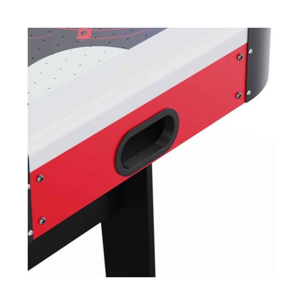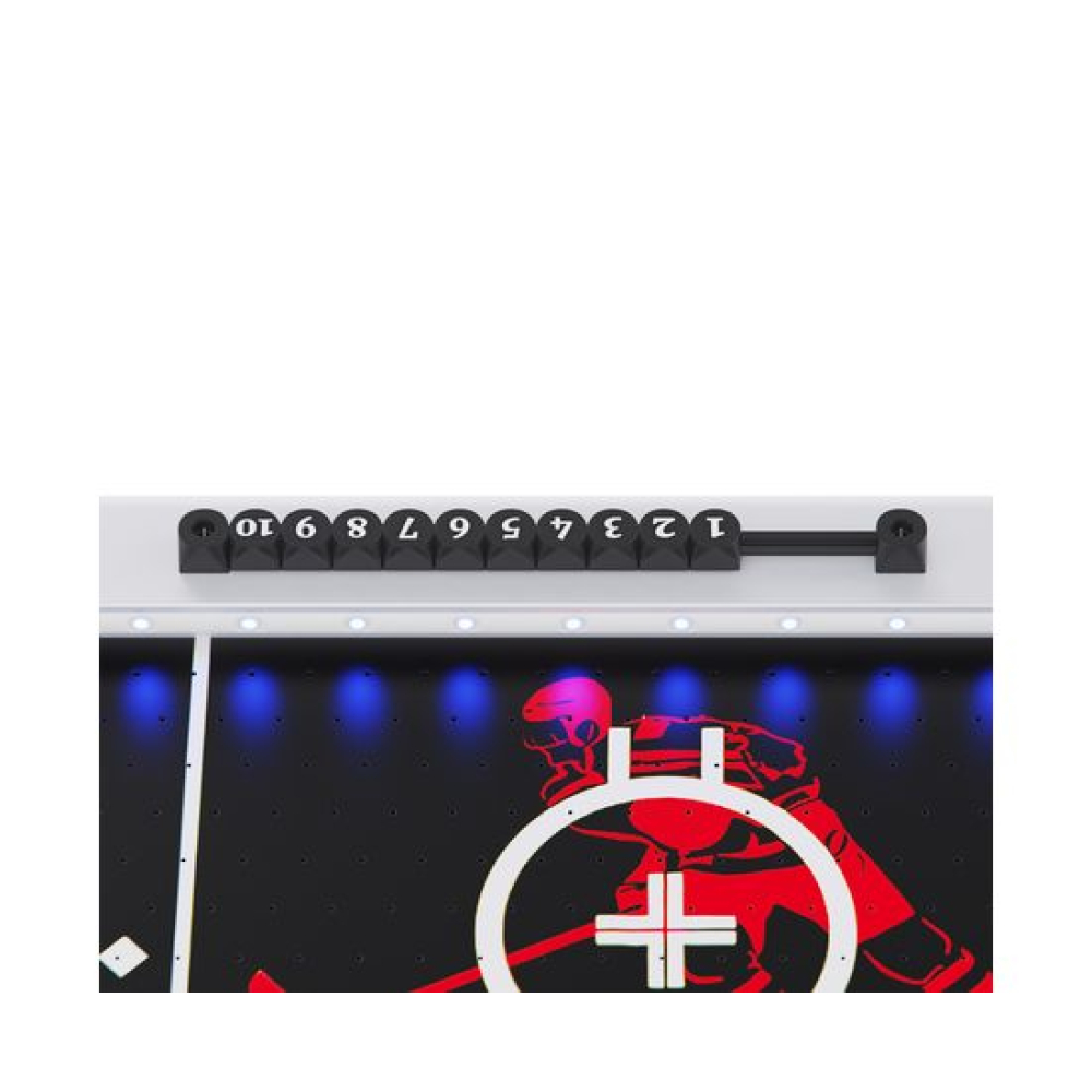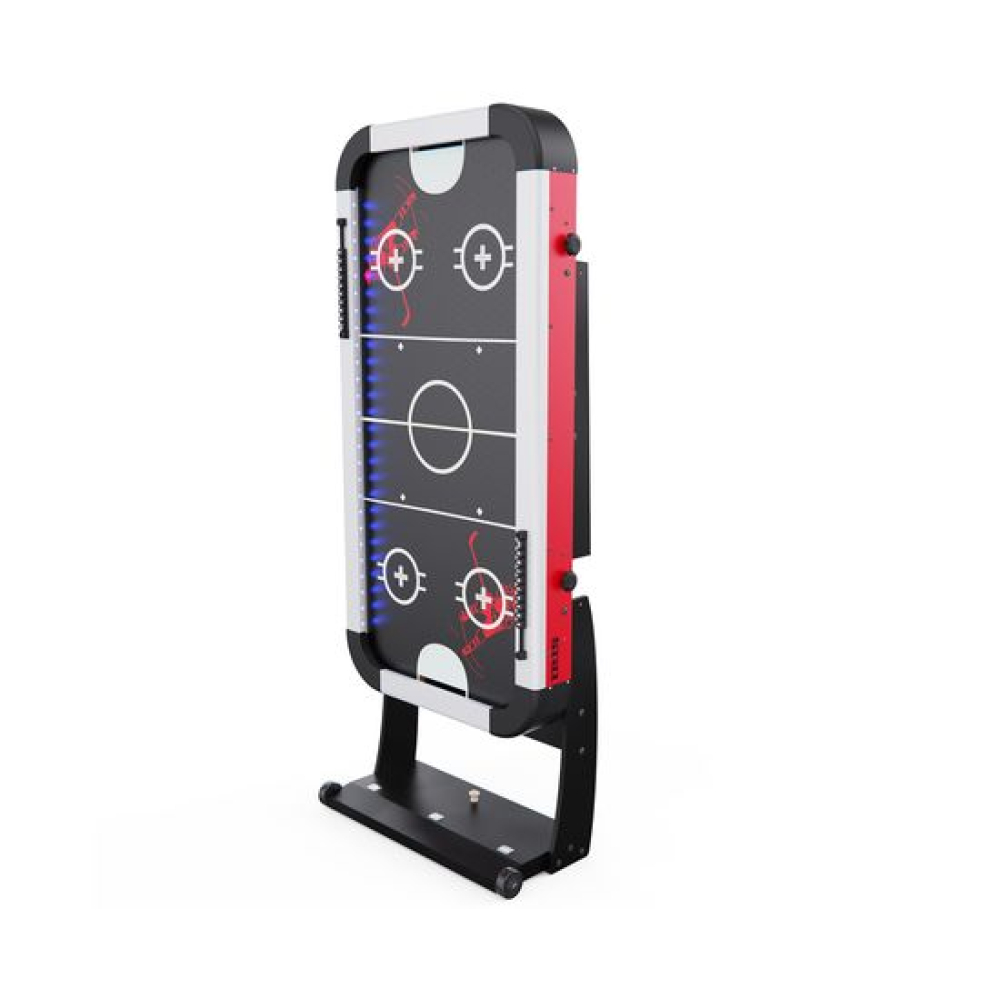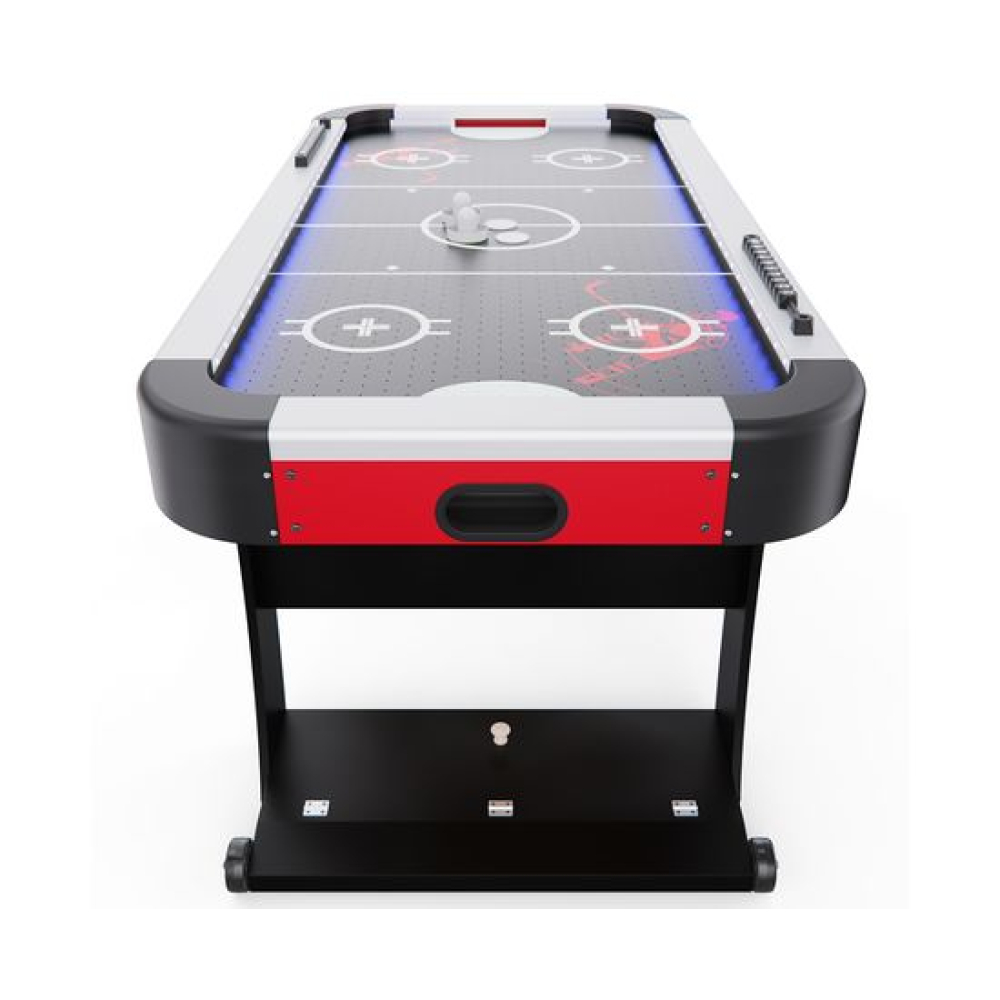 Игровой стол-аэрохоккей DFC IRIS– динамика и азарт у вас дома! Погрузитесь в атмосферу настоящего аэрохоккея вместе с игровым столом.Игровое поле выполнено из прочного МДФ с толщиной 3 мм, что гарантирует долговечность и стабильную поверхность для катания шайбы. Бортики высотой 15 мм и толщиной 9 мм удерживают шайбу на поле и делают игру комфортной и безопасной. Ножки высотой 76 см обеспечивают устойчивость даже при интенсивных матчах, а прочное основание с ПВХ-покрытием надежно выдерживает нагрузку.Встроенный вентилятор на 220В создает воздушный поток, который позволяет шайбе легко и быстро скользить по поверхности. Это делает игру максимально реалистичной и динамичной. Эффектная подсветка игрового стола создает атмосферу настоящего аркадного зала и делает игру еще более захватывающей, особенно в темное время суток.Простые в использовании механические счетчики помогают вести учет очков без лишних сложностей. В комплект входят 2 биты диаметром 75 мм и 2 шайбы диаметром 63 мм — можно играть сразу после установки.Благодаря удобным размерам (152,5 x 76 x 81 см) стол идеально подходит для домашнего использования, а складная конструкция стола особенно удобна для тех, кто хочет экономить место — стол можно легко сложить и убрать с помощью транспортировочных роликов до следующей игры. Хоккей станет отличным вариантом для семейных вечеров, дружеских турниров и веселого досуга.Гарантия на детали подверженные естественному износу в процессе эксплуатации — до 6 месяцев с момента установки тренажера при условии регулярного планового ТО. Важно: гарантия не распространяется на преждевременный износ из-за чрезмерной эксплуатации тренажера.
