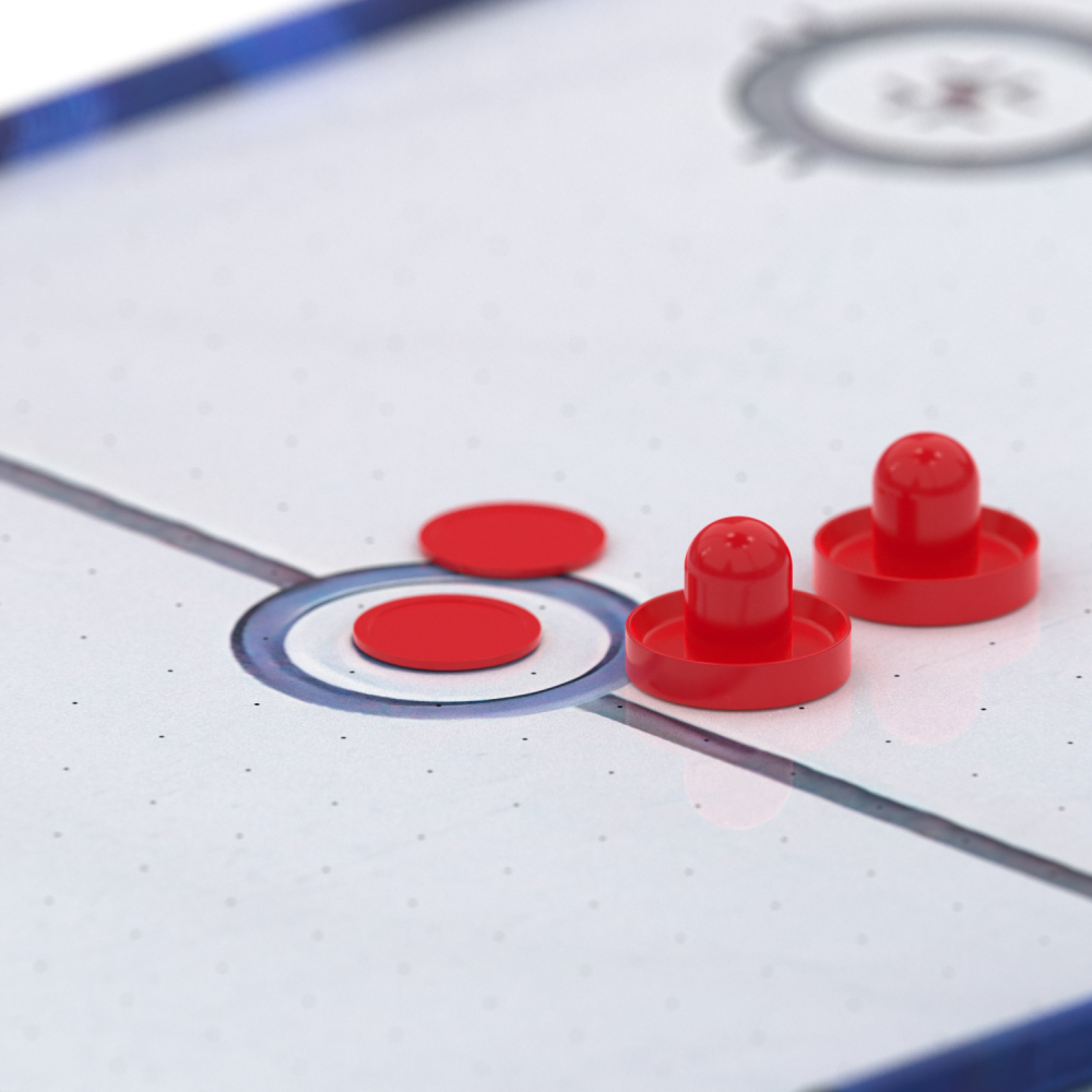 Игровой стол будет не только отличной покупкой для себя, но и прекрасным подарком. Игра в аэрохоккей очень эмоциональная, захватывающая и проходит на больших скоростях. Почувствуйте звуки и атмосферу знаменитой и популярной игры! Аэрохоккей является отличным развлечением дома или на даче. Аэрохоккей MODO оборудован электронным табло для подсчета забитых шайб на специальном держателе над столом. И дополнительно возле каждого игрока установлен механический счетчик. Корпус выполнен из специально обработанного МДФ, сверху покрытого прочным ПВХ ламинатом. Мощный компрессор подает воздух через отверстия по всей поверхности стола. Напряжение 230В. Стол комплектуется необходимым для игры набором аксессуаров: 2 биты и 2 шайбы красного цвета. Размер биты: 65 мм Размер шайбы: 55 мм