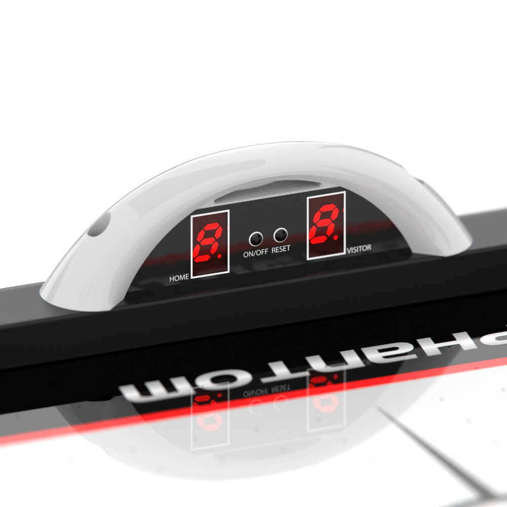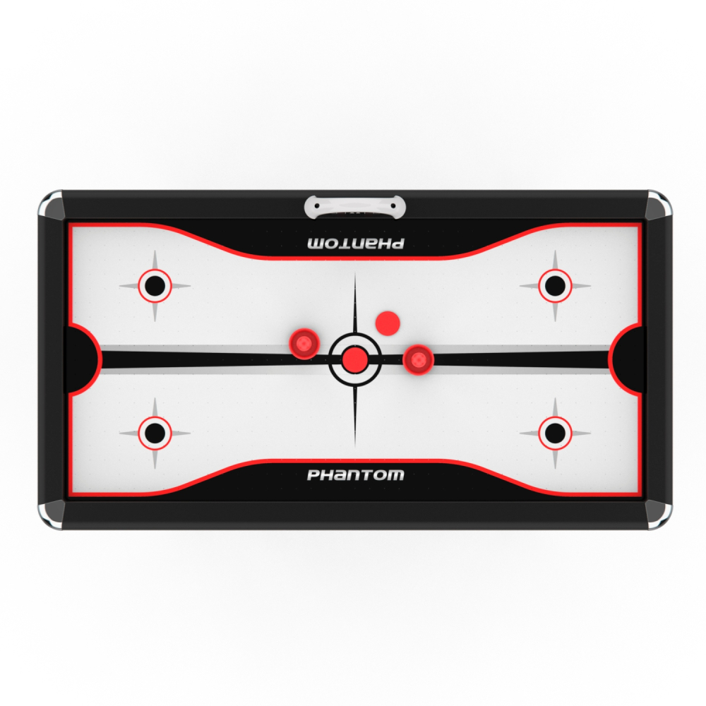 Игровой стол будет не только отличной покупкой для себя, но и прекрасным подарком. Игра в настольный хоккей очень эмоциональная, захватывающая и проходит на больших скоростях. Почувствуйте звуки и атмосферу знаменитой и популярной игры! Настольный хоккей является отличным развлечением дома или на даче. Игровой стол - аэрохоккей DFC PHANTOM оборудован электронным табло для подсчета забитых шайб во время игры. Корпус выполнен из специально обработанного МДФ, сверху покрытого прочным ламинатом. Воздушный вентилятор подает воздух через отверстия по всей поверхности стола. Напряжение: 220В (через адаптер). Комплектуется набором аксессуаров: 2 биты и 2 шайбы красного цвета. Размер биты 60 мм Размер шайбы 52 мм