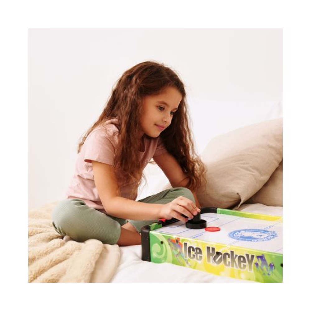 Игровой стол - не только отличная покупка для себя, но и прекрасный подарок. Игра в аэрохоккей эмоциональная, захватывающая и проходит на больших скоростях. Почувствуйте звуки и атмосферу знаменитой и популярной игры!Игровой стол - аэрохоккей DFC SB-AT-3001 привлекает внимание с первого взгляда. Яркий дизайн непременно понравится не только детям, но и взрослым. Стол станет отличным поводом собраться с друзьями или семьёй.Размеры игрового поля - 37,5 х 29 см, оно сделано из МДФ толщиной 9 мм и покрыто ПВХ. Компактный, но прочный стол прослужит вам долго!В комплект входят: 2 биты диаметром 50 мм 2 шайбы диаметром 40 мм 2 механических счётчикаВентилятор работает от 3-х батареек типа АА (не входят в комплект).
