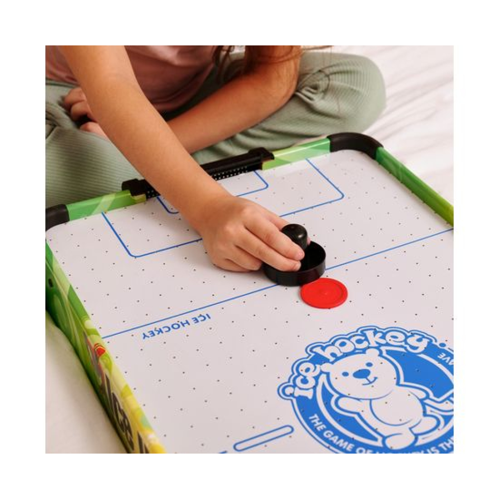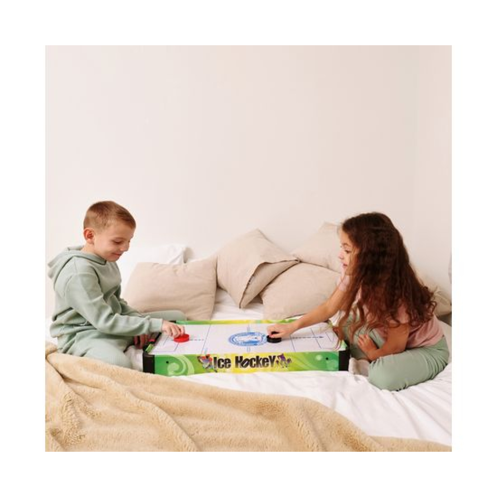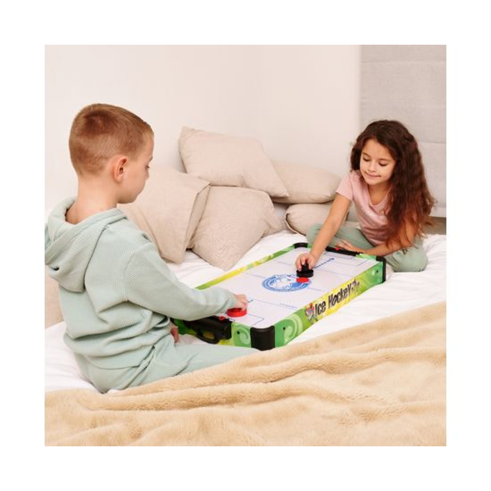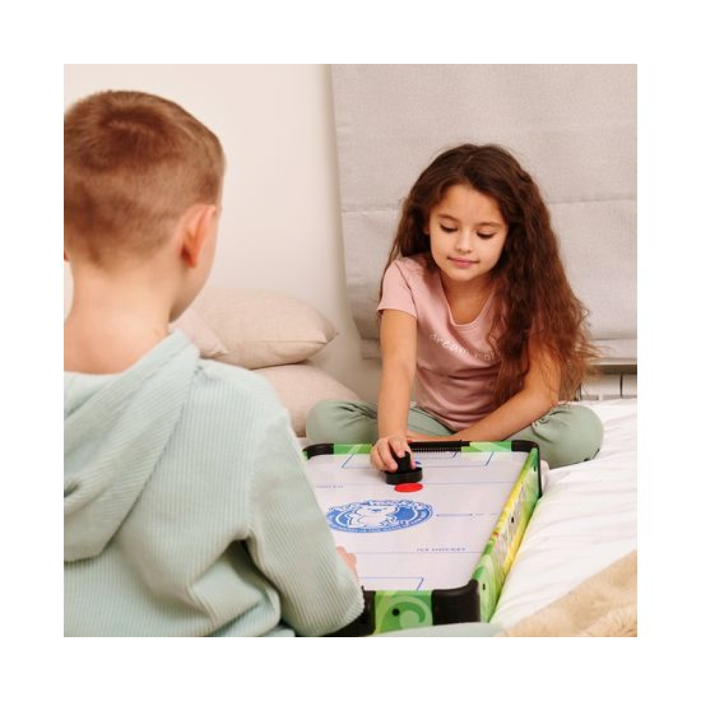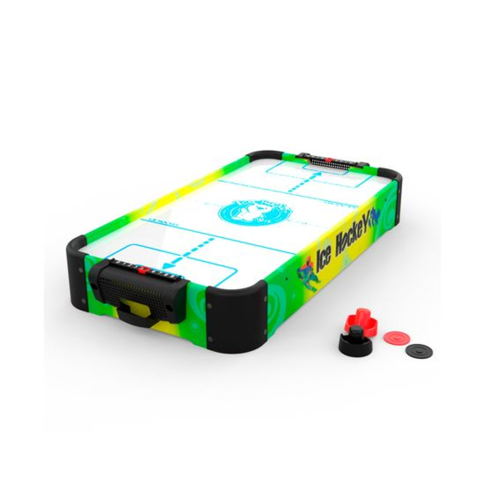 Игровой стол - не только отличная покупка для себя, но и прекрасный подарок. Игра в аэрохоккей эмоциональная, захватывающая и проходит на больших скоростях. Почувствуйте звуки и атмосферу знаменитой и популярной игры!Игровой стол - аэрохоккей DFC SB-AT-3003 привлекает внимание с первого взгляда. Яркий дизайн непременно понравится не только детям, но и взрослым. Стол станет отличным поводом собраться с друзьями или семьёй. Стол отличается от модели SB-AT-3001 большим размером: 68 x 36,5 x 9,5 см.Размеры игрового поля - 67 х 36 см, оно сделано из МДФ толщиной 14 мм и покрыто ПВХ. Компактный, но прочный стол прослужит вам долго!В комплект входят: 2 биты диаметром 50 мм 2 шайбы диаметром 40 мм 2 механических счётчикаВентилятор работает от 3-х батареек типа АА (не входят в комплект).