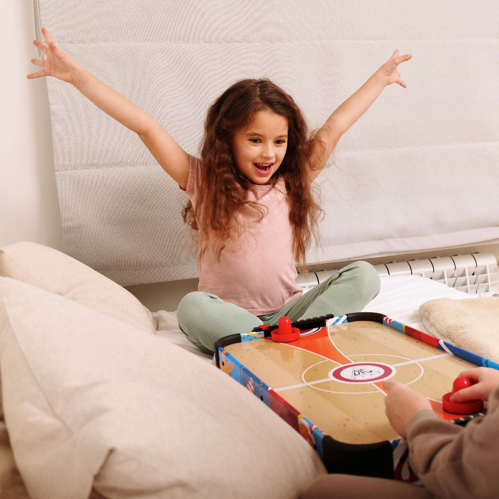 Игровой стол - не только отличная покупка для себя, но и прекрасный подарок. Игра в аэрохоккей эмоциональная, захватывающая и проходит на больших скоростях. Почувствуйте звуки и атмосферу знаменитой и популярной игры! Игровой стол - аэрохоккей DFC SUNFLOWER размером 24 дюйма - компактная настольная модель. Яркий дизайн привлечёт внимание не только детей, но и взрослых, SUNFLOWER станет отличным поводом собраться с друзьями или семьёй. В комплект входят механические счётчики очков, 2 биты и 2 шайбы. Вентилятор стола работает от 6 батареек типа АА (не входят в комплект).