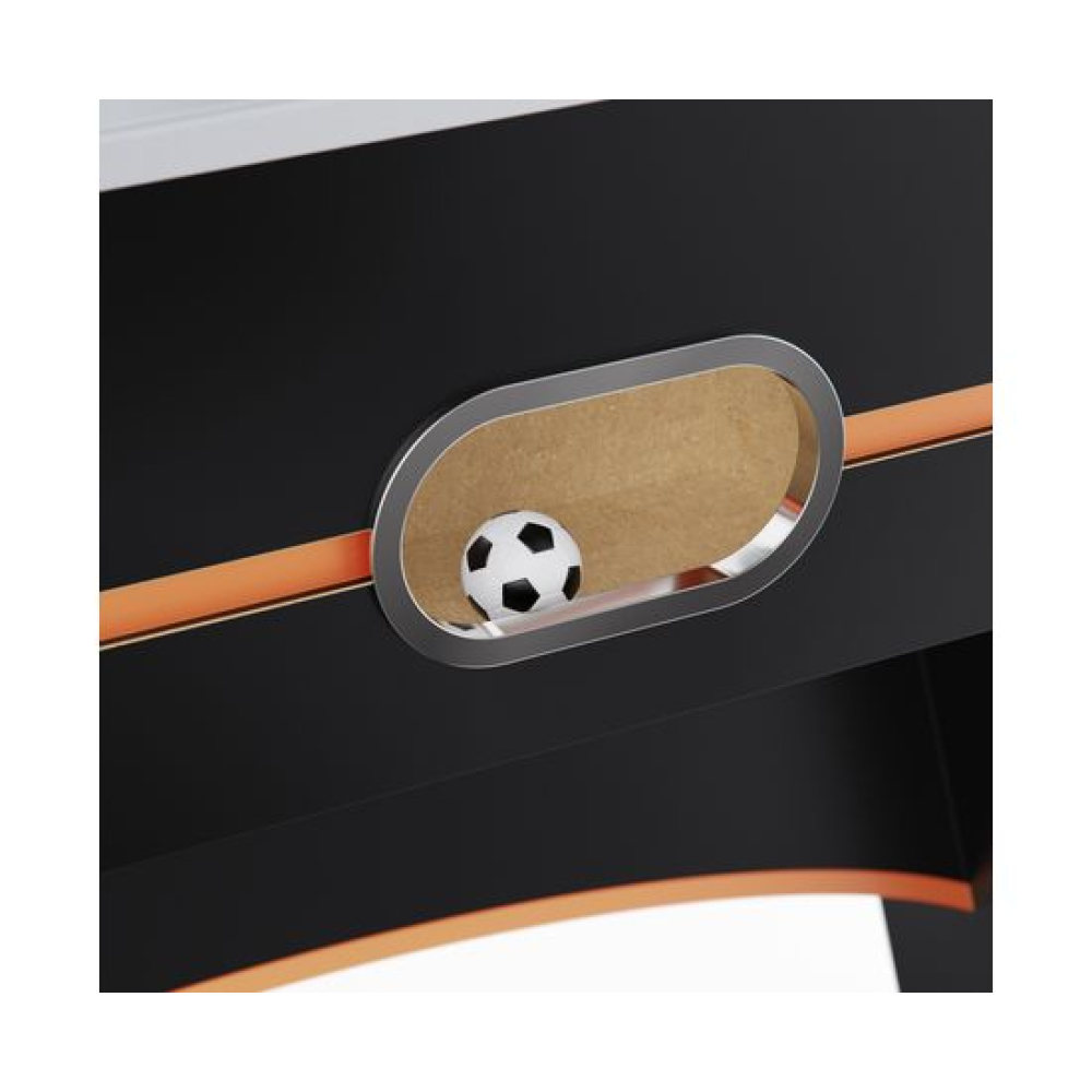Игровой стол - футбол DFC ST-05 — это полноценный настольный футбол, созданный для ярких семейных баталий, дружеских матчей и активного отдыха дома. Модель подойдёт как для детей, так и для взрослых, обеспечивая весёлое и азартное времяпрепровождение в любое время года.Размер стола — 144 х 76 х 87 см, а игровое поле — 118 х 68 см. Такая площадь оптимальна для маневров, точных ударов и зрелищной игры. Размер мячей — 36 мм, что соответствует стандарту для настольного футбола и обеспечивает отличную управляемость.Корпус стола выполнен из прочного МДФ, устойчивого к нагрузкам и износу. Толщина игрового поля составляет 9 мм, а бортиков — 1,2 см, что обеспечивает отличную прочность и долговечность. Высота ножек 62 см создаёт оптимальное положение для комфортной игры. Вес стола 60 кг делает его устойчивым даже во время самых активных матчей.В комплект входят 2 электронных счётчика, работающих от батареек (требуется 6 батареек типа AAA, входят в комплект), а также 2 мяча. Цифровые табло автоматически отображают очки, делая игру ещё реалистичнее и азартнее. Вам не придётся отвлекаться — всё под контролем!На корпусе предусмотрены 4 подстаканника, чтобы любимые напитки были всегда под рукой во время игры. А компенсаторы неровности пола позволяют установить стол ровно даже на слегка неидеальной поверхности.Игровой стол DFC ST-05 — это не просто настольный футбол, а полноценный домашний игровой центр, который подойдёт для детской комнаты, игровой зоны или загородного дома. Идеальное решение для семейных вечеров, праздников и встреч с друзьями.
