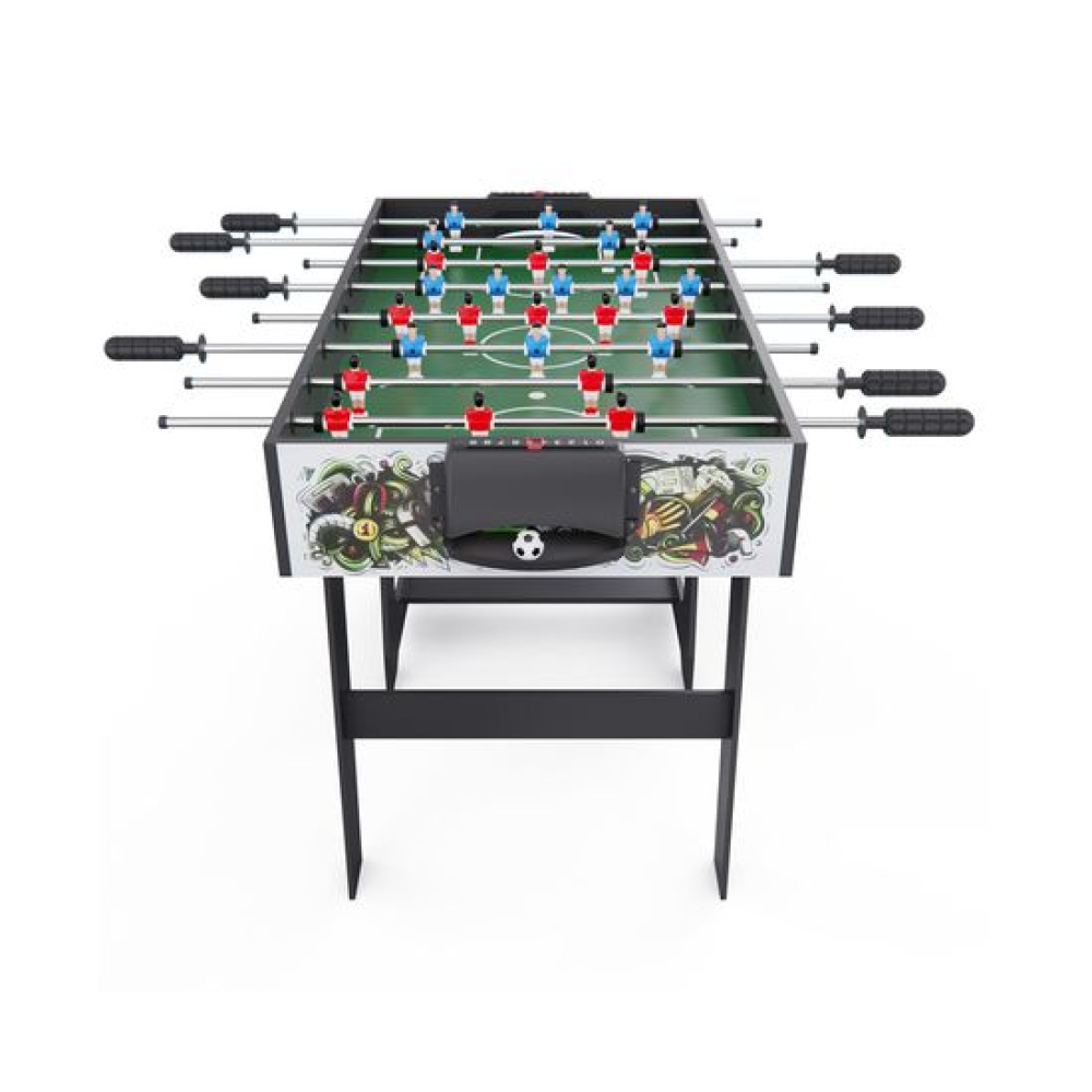 Представляем вашему вниманию Игровой стол кикер - футбол DFC Athletic 49" 104 x 57 см / складной который станет центром притяжения в вашем доме или игровом зале.Преимущества модели: Прочная конструкция из высококачественных материалов Оптимальные размеры для комфортной игры Надёжная сборка — гарантия долговечной эксплуатации Стильный дизайн, который впишется в любой интерьер Складная модельТехнические характеристики: Габаритные размеры: 124 x 60 x 79 см Размер игрового поля: 104 x 57 см Толщина игрового поля: 3 мм Высота бортиков: 17 см Толщина бортиков: 12 мм Высота ножек: 67 см Диаметр мяча: 32 мм Материалы: МДФ, ПВХ, бумагаОсобенности конструкции: Надёжный каркас из МДФ обеспечивает стабильность конструкции Прочное покрытие из ПВХ защищает игровое поле от повреждений Удобные бортики высотой 17 см предотвращают вылет мяча Оптимальная высота стола 79 см — комфортно для игроков любого ростаКомплектация: Игровой стол в сборе Комплект мячей (диаметр 32 мм) Инструкция по сборкеУдобство использования.Компактные размеры в сложенном виде (112х63х10,7 см) позволяют легко транспортировать и хранить стол. Продуманная конструкция обеспечивает быструю сборку и надёжную фиксацию всех элементов.Подарите себе и близким незабываемые моменты увлекательной игры с нашим футбольным столом! Закажите прямо сейчас и получите максимум удовольствия от активного досуга.