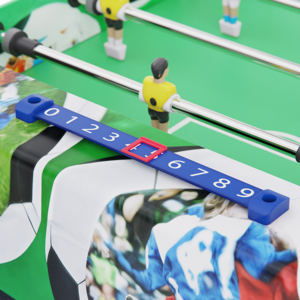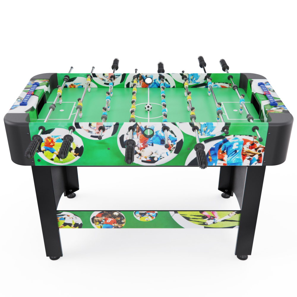 Представляем новую модель игрового стола - футбол DFC ROMA. Настольный футбол является отличным развлечением дома или на даче. Игровой стол будет не только отличной покупкой для себя, но и прекрасным подарком. Игра в настольный футбол очень эмоциональная, захватывающая и проходит на больших скоростях. Почувствуйте звуки и атмосферу знаменитой и популярной игры! Стол оборудован механическим табло для подсчета забитых голов для каждого игрока. В каждой команде по 11 игроков, включая вратаря. В комплекте 2 мяча размером 36 мм. С стороны каждого игрока в столе есть специальное отверстие для сброса мяча в начале игры, или после забитого гола. Корпус выполнен из специально обработанного МДФ, сверху покрытого прочным PVC пластиком c оригинальным принтом. Ножки стола имеют компенсаторы для установки стола на неровном полу.