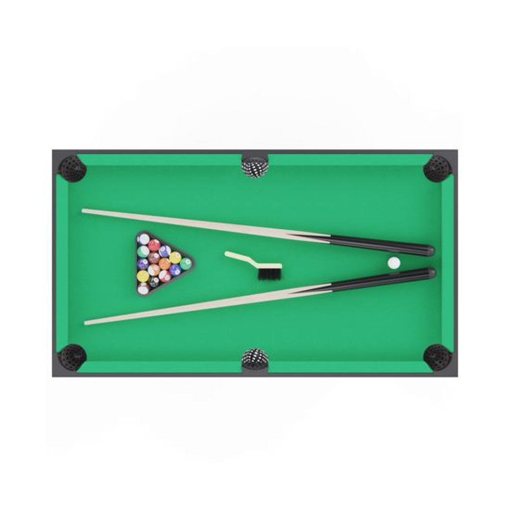 Игровой стол 48" DFC DT-T-2105 (3 в 1) — универсальный игровой стол, который сочетает в себе три самые популярные настольные игры: футбол, бильярд и настольный теннис. Благодаря компактным размерам он идеально подходит для домашнего использования, создавая атмосферу соревнования и весёлого досуга для всей семьи.Габариты стола — 124 х 61 х 81 см, высота ножек — 61 см. Стол выполнен из прочных материалов (МДФ и ПВХ), обеспечивающих надежность и устойчивость конструкции. Толщина игрового поля — 3 мм, а бортиков — 12 мм, что гарантирует долговечность и комфорт в игре.Игровые зоныКаждая игра имеет своё игровое поле оптимального размера:Бильярд — 97,6 х 51 смНастольный теннис — 103,7 х 57 смФутбол — 104,8 х 58 смДиаметр шаров и мячей: бильярдный и футбольный — 32 мм, теннисный — 40 мм. Ширина лузы для бильярда — 70 мм, длина кия — 91 см.В набор входят: 2 футбольных мячика, 2 теннисные ракетки, 2 мяча для настольного тенниса, комплект бильярдных шаров, треугольник для их выравнивания, 2 кия, щетка для ухода за покрытием и 2 мелка. Всё необходимое для начала игры — уже в комплекте!Игровой стол 3 в 1 DFC DT-T-2105 подарит море эмоций и позволит разнообразить досуг. Это отличный вариант для игр в компании друзей, семейных турниров и активного отдыха без выхода из дома!