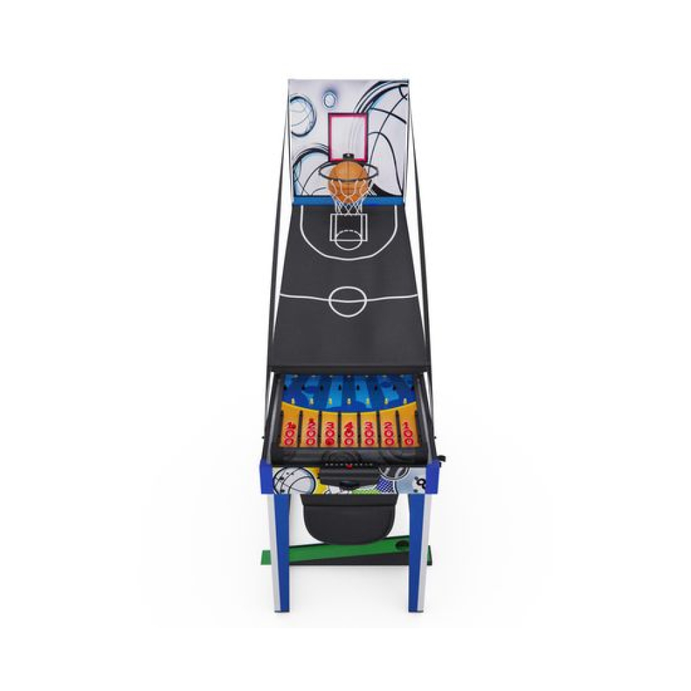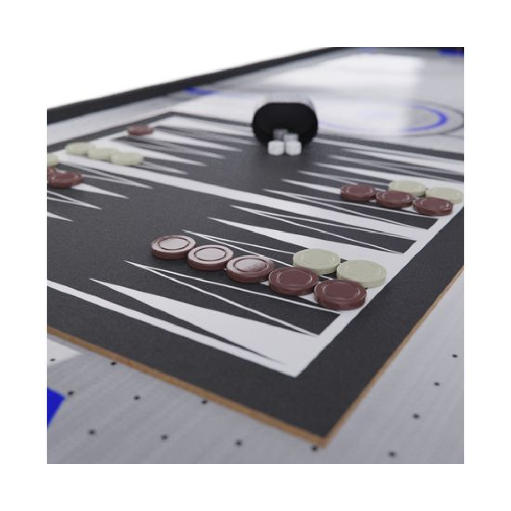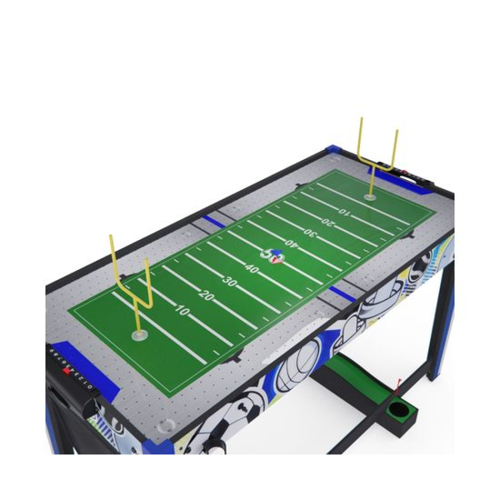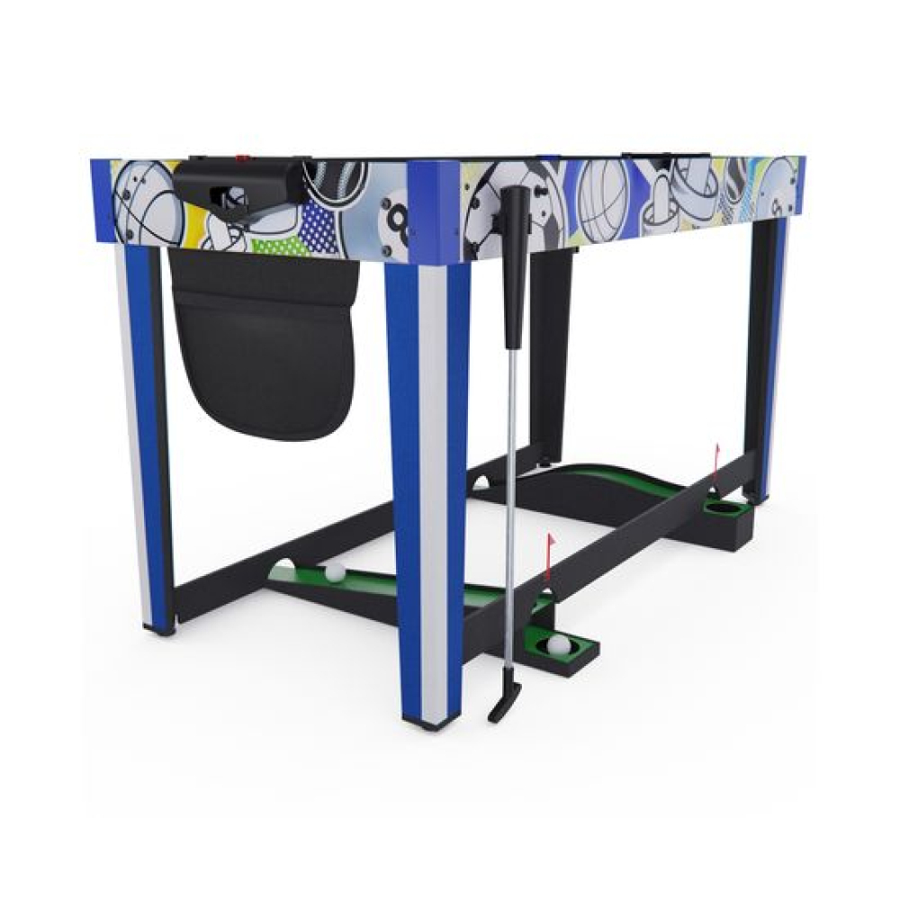 Игровой стол-трансформер DFC BERYL 13-in-1, размером 48" (дюймов), представляет собой домашний развлекательный центр, который превращается в 13 различных игр. Вентилятор, работающий от сети 220В, обеспечивает плавное скольжение шайбы аэрохоккея по игровому полю.Игровой стол предлагает следующие развлечения: Аэрохоккей (2 биты и 2 шайбы, механический счетчик) Стрельба по мишеням (5 мишеней, 1 бластер и 5 дротиков) Plink shot (4 мячика) Гольф (1 клюшка, 2 флажка, 2 мяча) Шахматы Шашки Нарды (шашки и 5 игральных костей) Баскетбол (кольцо с сеткой, мяч с насосом, сетка для возврата мяча) Bean bag (метание мешков) (3 мешка для игры и 1 сетчатый мешок) Стрельба из лука (лук и колчан, 3 стрелы) Дартс (6 дротиков с присосками) Боулинг (1 шар, набор кеглей) Настольный пальчиковый футбол (2 треугольника, 2 пары ворот)