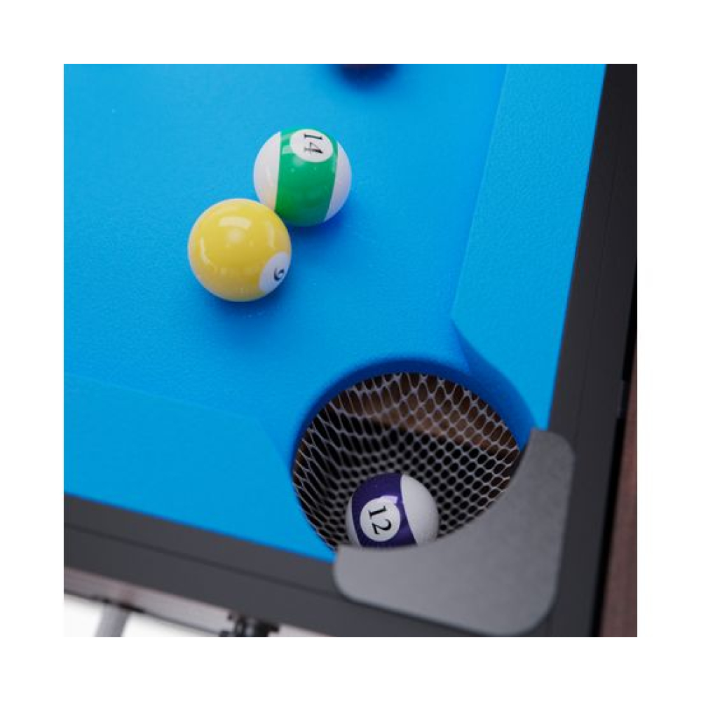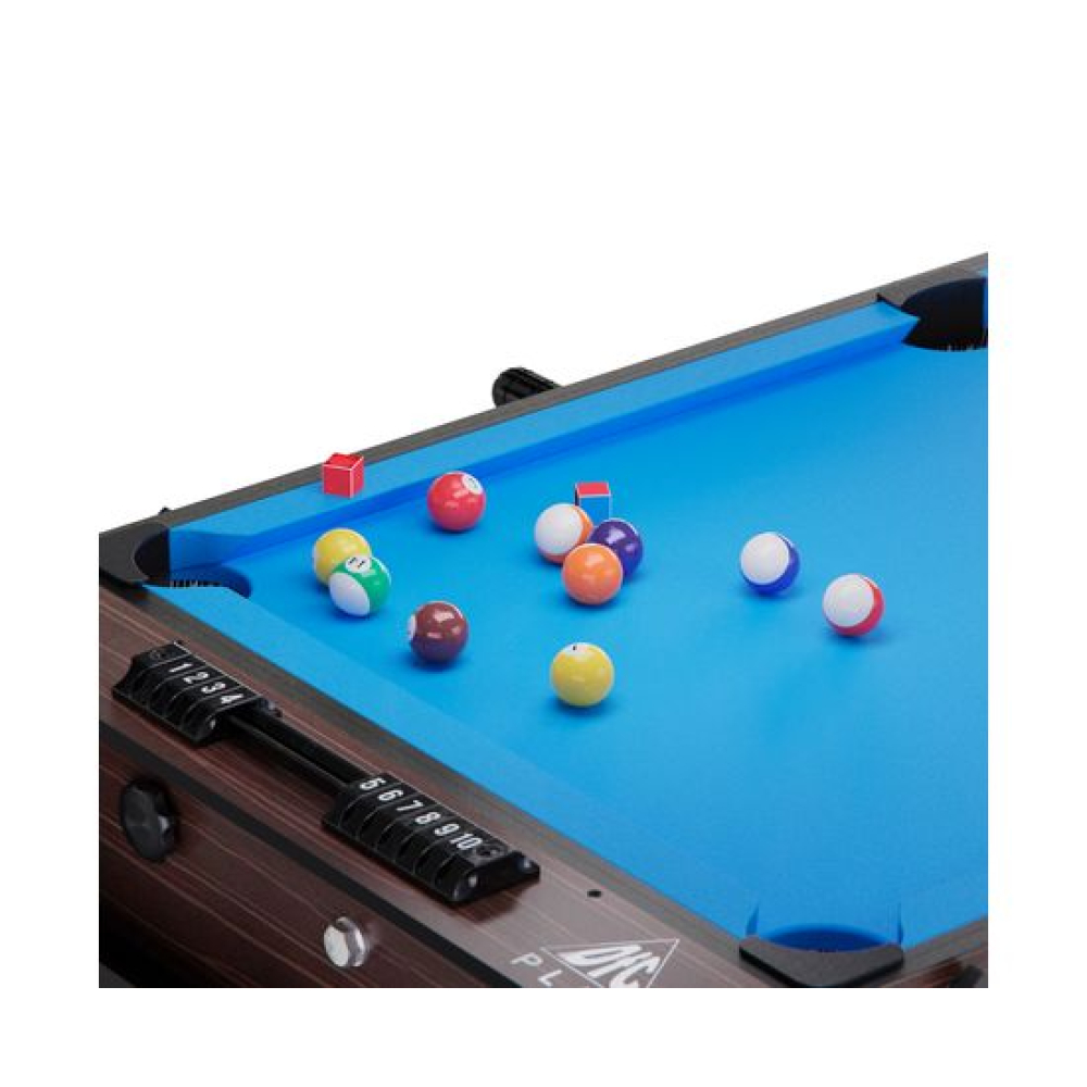 Игровой стол - трансформер DFC Copper 4 в 1 представляет собой идеальное решение для тех, кто ищет многофункциональное и компактное развлечение для своего дома. Этот стол объединяет в себе четыре популярных игровых режима: бильярд, футбол, теннис и аэрохоккей, что позволяет вам и вашей семье наслаждаться разнообразными играми в любое время.Стол изготовлен из высококачественных материалов, включая МДФ панели с ламинированием из ПВХ и металлические ножки, что обеспечивает прочность и долговечность конструкции. Боковые панели выполнены из МДФ толщиной 12 миллиметров, что придает столу дополнительную устойчивость и стабильность.Особенностью стола является его способность трансформироваться из одного игрового режима в другой. Например, для игры в футбол вам потребуется только снять панели для ворот и установить игровое поле, а для тенниса – просто перевернуть стол и установить сетку. Для игры в аэрохоккей предусмотрен специальный мотор на 12 В, который обеспечивает реалистичный и увлекательный игровой процесс.В комплекте: 2 футбольных мяча 2 кия Щётка Мел Комплект бильярдных шаров Треугольник 2 биты 2 шайбы 2 ракетки 2 теннисных мячика Сумка для аксессуаров Механический счётчикИгровое поле для футбола выполнено из МДФ толщиной 3 миллиметра с зеленым ламинированным покрытием из ПВХ, а для бильярда – из МДФ толщиной 4,75 миллиметров с зеленой тканью, состоящей из смеси шерсти и нейлона, что гарантирует долговечность и превосходное качество покрытия.Игровой стол Copper – это отличное приобретение для тех, кто хочет разнообразить свой досуг и проводить время с семьей и друзьями весело и активно. Благодаря своей многофункциональности и компактности, он станет отличным дополнением к вашему домашнему интерьеру, обеспечивая вам и вашим близким незабываемые моменты радости и удовольствия от игры.