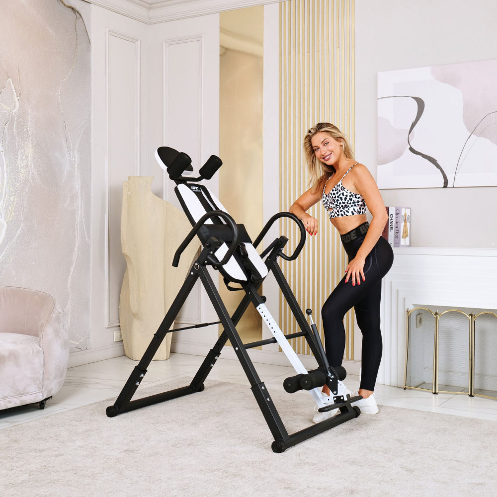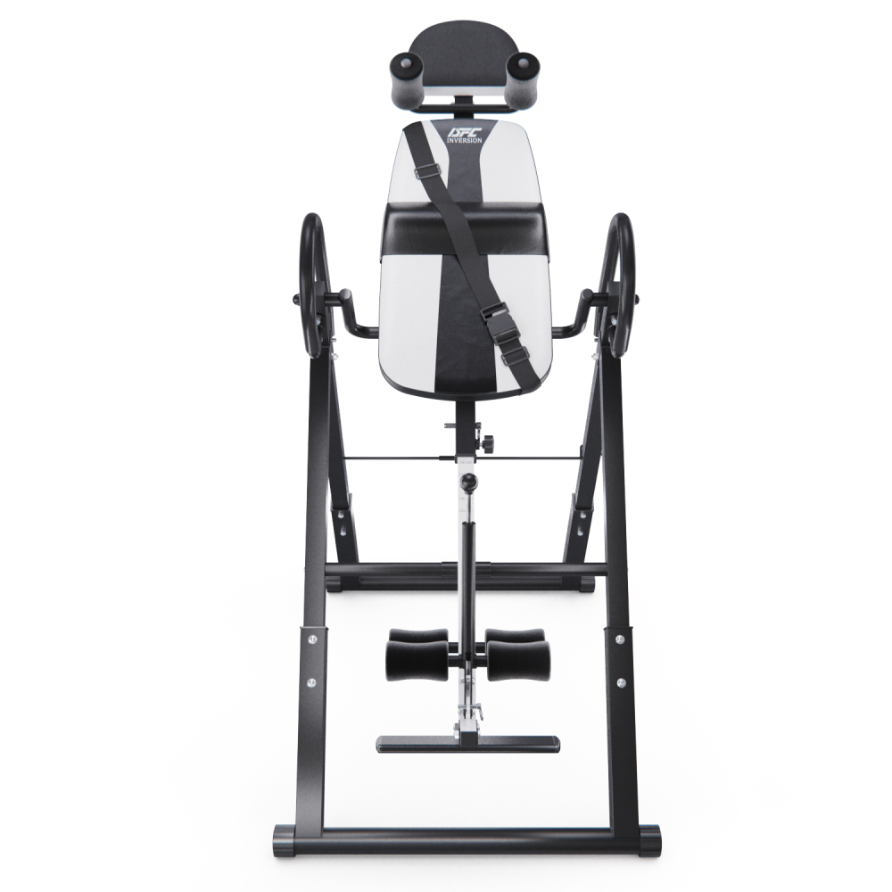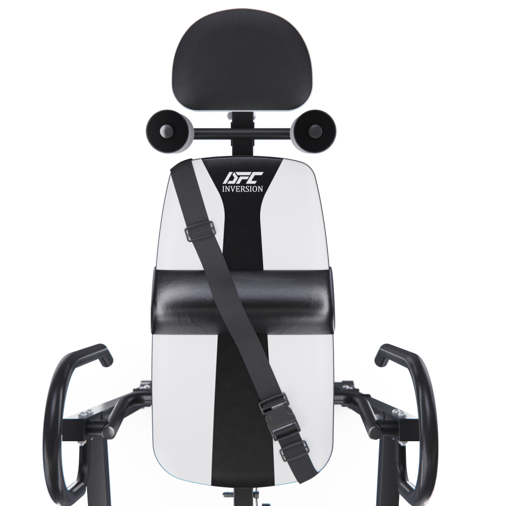 Инверсионный стол DFC IT6312A-W — это удобный и эффективный тренажёр для улучшения осанки, укрепления связок и улучшения кровообращения. Он имеет спинку белого цвета с валиками под голову и съёмную подушку под поясницу для дополнительного комфорта. Страховочный ремень входит в комплект, двойные валики для удобства использования. Максимальный вес пользователя составляет 150 кг. Ограничитель угла наклона в виде перекладины позволяет регулировать угол наклона в трёх положениях. Складная конструкция стола облегчает хранение и транспортировку.