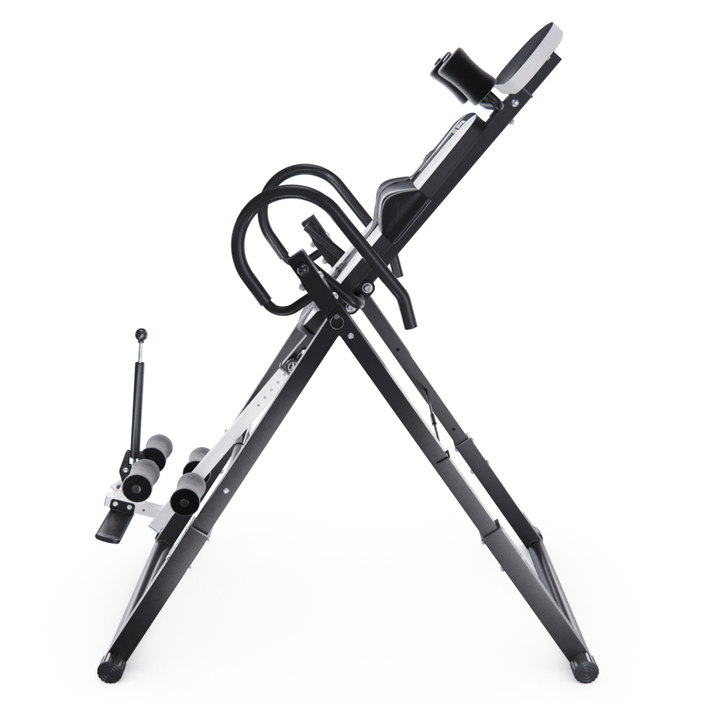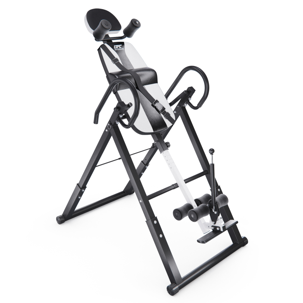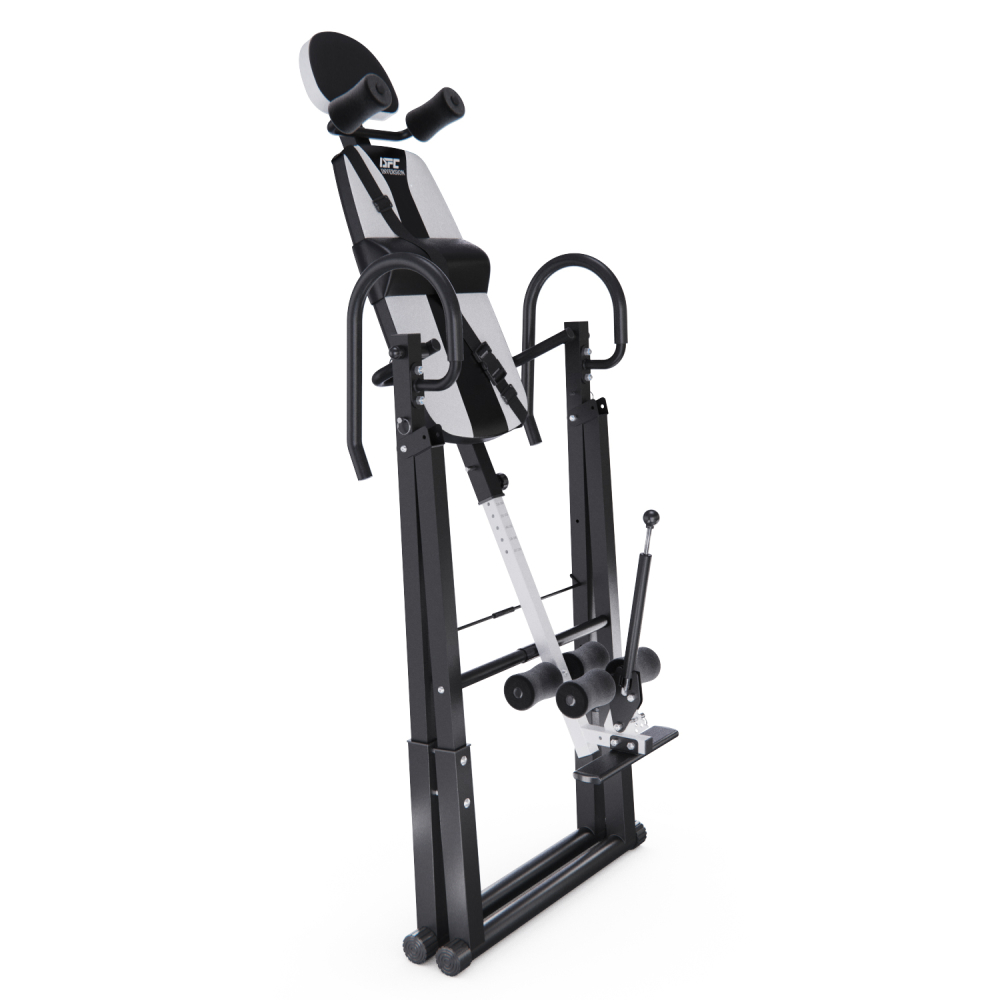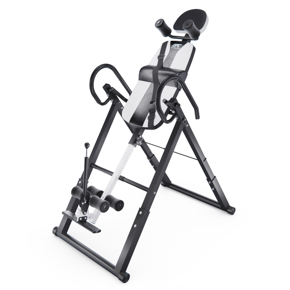 Инверсионный стол DFC IT6312A-W — это удобный и эффективный тренажёр для улучшения осанки, укрепления связок и улучшения кровообращения. Он имеет спинку белого цвета с валиками под голову и съёмную подушку под поясницу для дополнительного комфорта. Страховочный ремень входит в комплект, двойные валики для удобства использования. Максимальный вес пользователя составляет 150 кг. Ограничитель угла наклона в виде перекладины позволяет регулировать угол наклона в трёх положениях. Складная конструкция стола облегчает хранение и транспортировку.