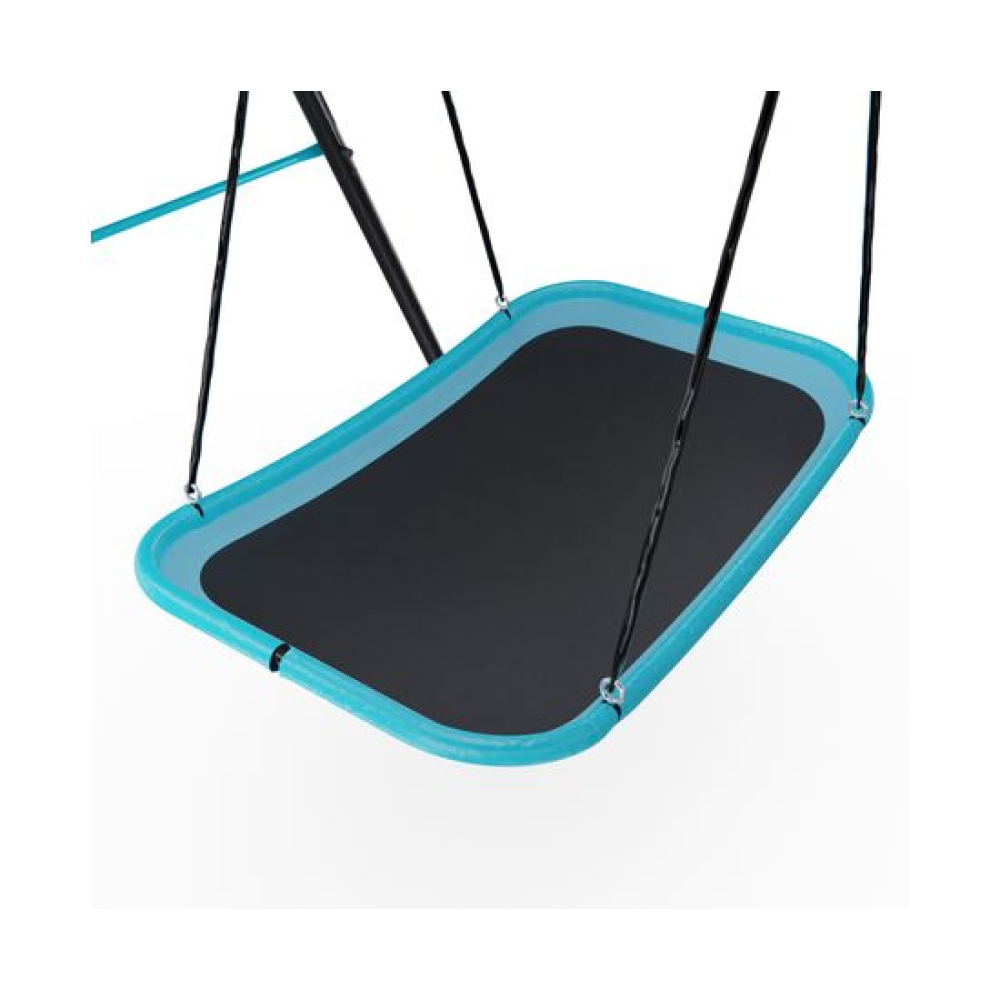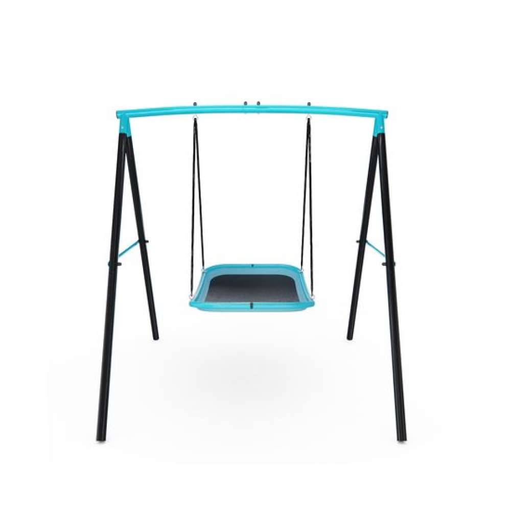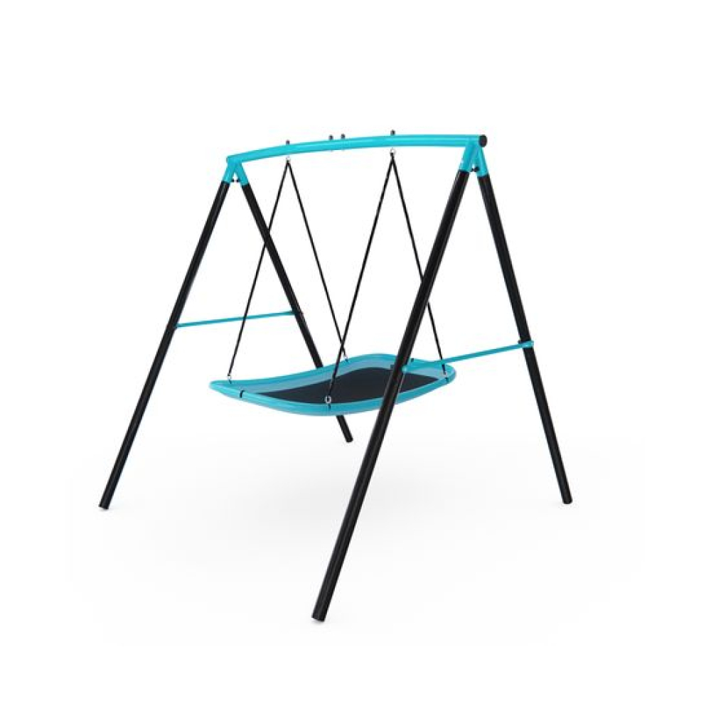 Качели-гамак Bounce Master — идеальный вариант для дачного участка. Они позволят ребенку не только весело провести время, но и комфортно отдохнуть на свежем воздухе.Сиденье выполнено в виде гамака, покрытого плотным материалом, которое крепится к прочной металлической раме.Качели изготовлены из прочного металлического профиля 50,5 мм, устойчивого к нагрузкам; для сиденья используется кожух из вспененного каучука. Совокупность этих факторов гарантирует безопасность конструкции, поэтому качели могут использоваться детьми от 3 лет. Максимальная нагрузка 90 кг, а вес одного ребёнка не должен превышать 45 кг.Для безопасного использования зазор между землёй и сиденьем качели должен быть не менее 20 см. Для устойчивости конструкции закрепите качели при помощи земляных анкеров (не входят в комплект).