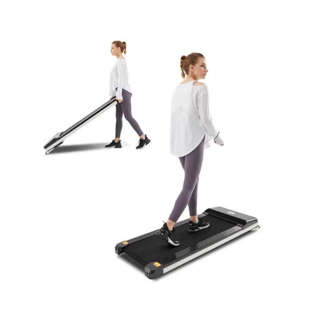 Беговая дорожка DFC UMAY черного цвета — это современное оборудование для кардио-тренировок в домашних условиях. Благодаря компактным габаритам, стильному дизайну и технологичным функциям, она идеально подойдёт для квартиры, дома или офиса.Максимальная нагрузка до 110 кг позволит использовать тренажер кардио людям разной комплекции. Модель оснащена надёжным электрическим двигателем мощностью 2 л/с. Двигатель обеспечивает стабильную работу с диапазоном скоростей от 1 до 6 км/ч, что делает дорожку подходящей как для ходьбы, так и для лёгкого бега.Беговое полотно размером 105 х 41 см с толщиной 1,4 мм и дека толщиной 12 мм обеспечивает комфортное, стабильное и безопасное пространство для свободного движения во время тренировки. Для повышения комфорта предусмотрена система из 4 амортизаторов, которая снижает нагрузку на суставы и делает бег более мягким.На встроенном LCD-дисплее отображаются все важные параметры тренировки: время тренировки, текущую скорость, пройденную дистанцию и количество сожжённых калорий. Это позволяет отслеживать эффективность каждой тренировки и адаптировать нагрузку под индивидуальные цели.Одной из особенностей модели является встроенный Bluetooth-модуль, позволяющий подключиться к мобильному приложению SPAX. Приложение предоставляет доступ к разнообразным тренировкам, отслеживанию прогресса и персональным программам. Также предусмотрено удобное дистанционное управление с помощью пульта, позволяющее изменять скорость и режимы без остановки тренировки.Эта компактная беговая дорожка легко размещается даже в небольших помещениях и оснащена транспортировочными роликами, что позволяет без труда перемещать её при необходимости. Модель выполнена в стильном чёрном цвете, который органично впишется в любой интерьер. Подходит для всех, кто ценит оригинальный дизайн и хочет сделать свои тренировки не только полезными, но и эстетически приятными.Гарантия на детали подверженные естественному износу в процессе эксплуатации — до 6 месяцев с момента установки тренажера при условии регулярного планового ТО. Важно: гарантия не распространяется на преждевременный износ из-за чрезмерной эксплуатации тренажера.