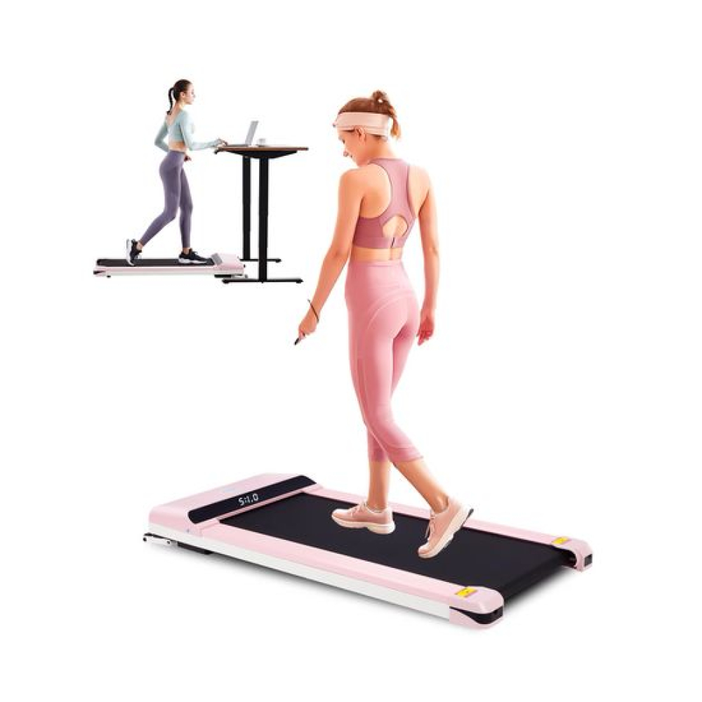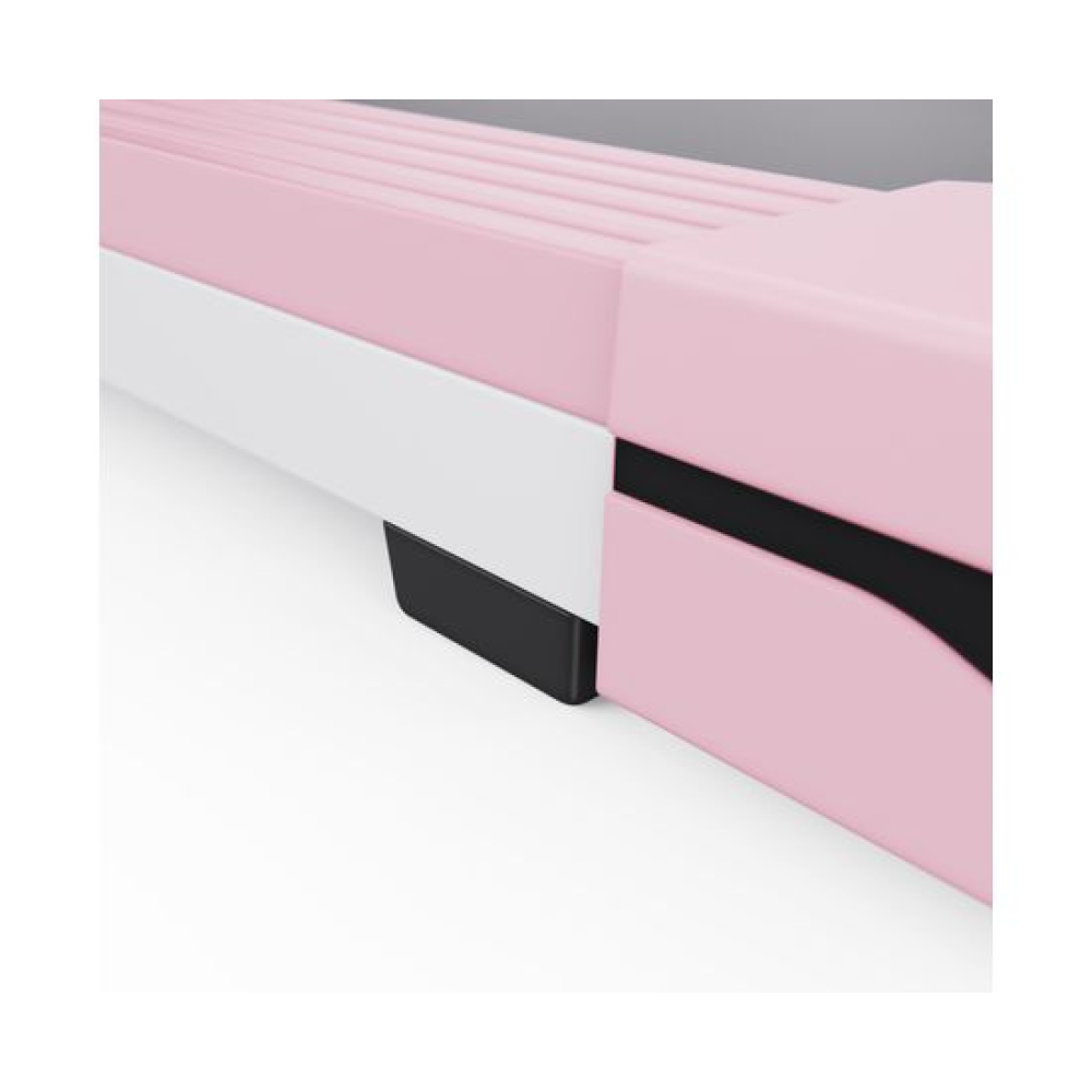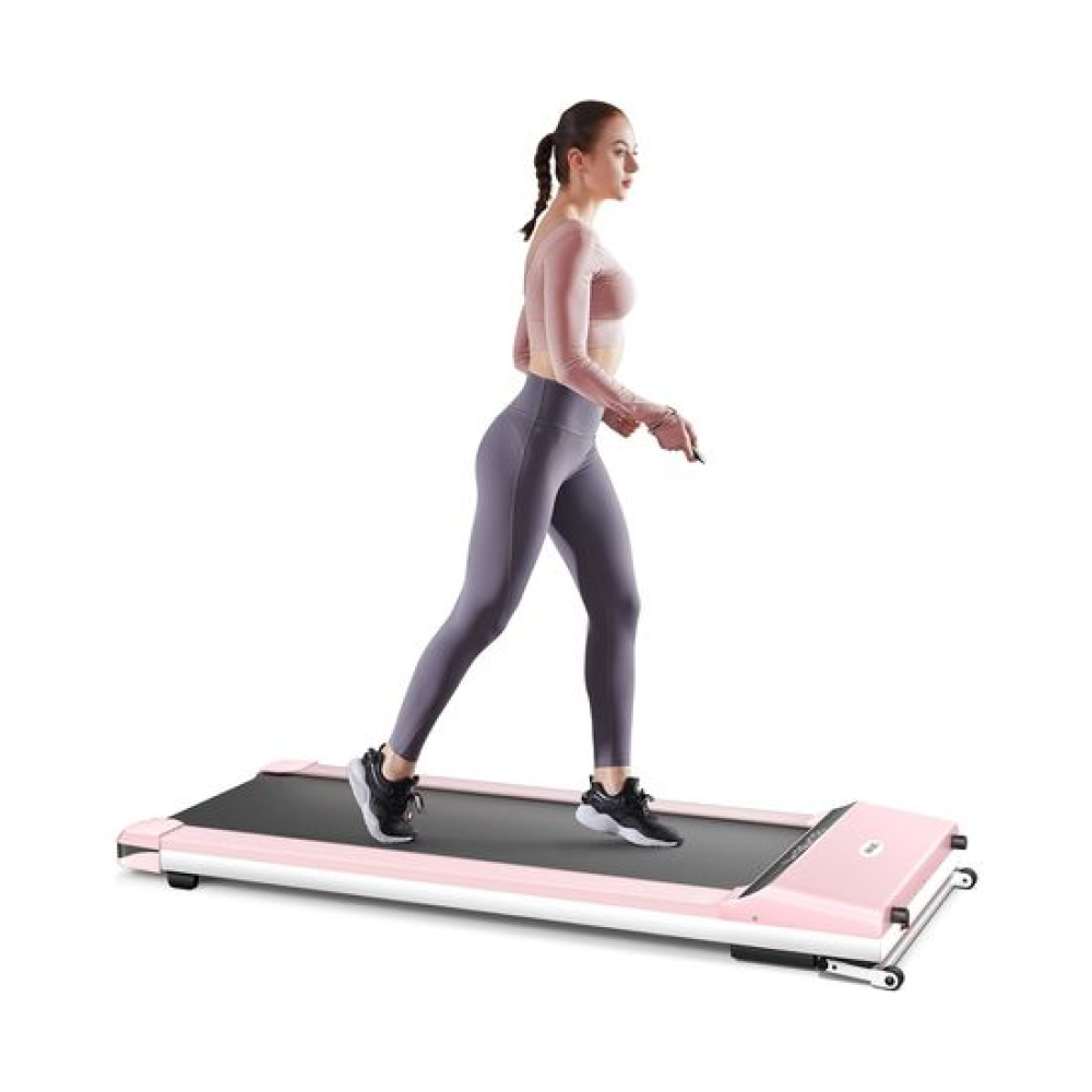Беговая дорожка DFC UMAY розового цвета — это современное оборудование для кардио-тренировок в домашних условиях. Благодаря компактным габаритам, стильному дизайну и технологичным функциям, она идеально подойдёт для квартиры, дома или офиса.Максимальная нагрузка до 110 кг позволит использовать тренажер кардио людям разной комплекции. Модель оснащена надёжным электрическим двигателем мощностью 2 л/с. Двигатель обеспечивает стабильную работу с диапазоном скоростей от 1 до 6 км/ч, что делает дорожку подходящей как для ходьбы, так и для лёгкого бега.Беговое полотно размером 105 х 41 см с толщиной 1,4 мм и дека толщиной 12 мм обеспечивает комфортное, стабильное и безопасное пространство для свободного движения во время тренировки. Для повышения комфорта предусмотрена система из 4 амортизаторов, которая снижает нагрузку на суставы и делает бег более мягким.На встроенном LCD-дисплее отображаются все важные параметры тренировки: время тренировки, текущую скорость, пройденную дистанцию и количество сожжённых калорий. Это позволяет отслеживать эффективность каждой тренировки и адаптировать нагрузку под индивидуальные цели.Одной из особенностей модели является встроенный Bluetooth-модуль, позволяющий подключиться к мобильному приложению SPAX. Приложение предоставляет доступ к разнообразным тренировкам, отслеживанию прогресса и персональным программам. Также предусмотрено удобное дистанционное управление с помощью пульта, позволяющее изменять скорость и режимы без остановки тренировки.Эта компактная беговая дорожка легко размещается даже в небольших помещениях и оснащена транспортировочными роликами, что позволяет без труда перемещать её при необходимости. Модель выполнена в стильном чёрном цвете, который органично впишется в любой интерьер. Подходит для всех, кто ценит оригинальный дизайн и хочет сделать свои тренировки не только полезными, но и эстетически приятными.Гарантия на детали подверженные естественному износу в процессе эксплуатации — до 6 месяцев с момента установки тренажера при условии регулярного планового ТО. Важно: гарантия не распространяется на преждевременный износ из-за чрезмерной эксплуатации тренажера.