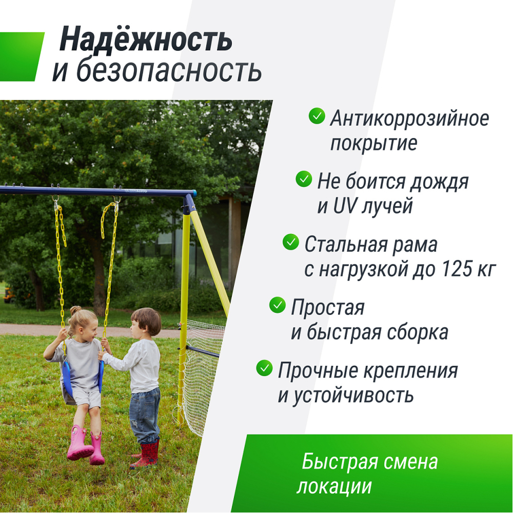 Игровой уличный комплекс с качелями, футбольными воротами и баскетбольным кольцом UNIX Line станет сердцем вашего двора и любимым местом для развлечений!. . Детский комплекс сочетает в себе безопасность, качество и уникальный дизайн, чтобы обеспечить детям максимум удовольствия и активности на свежем воздухе. Каждая деталь комплекса продумана до мелочей, чтобы обеспечить безопасность и комфорт детям разного возраста . С обычными качелями, качелями гнездом, футбольными воротами и баскетбольным кольцом, дети смогут не только развиваться физически, но и проводить время с пользой, развивая координацию движений, силу и ловкость. Кроме того, детский игровой комплекс способствует социализации, помогая детям научиться работать в команде и развивать навыки общения . Создайте уникальное игровое пространство прямо у себя дома с уличным игровым комплексом с качелями и футбольными воротами и подарите своим детям яркие впечатления, веселые приключения и радость. Позвольте им погрузиться в мир фантазии и игры, где каждый день наполнен новыми открытиями и эмоциями!. . Спортивно игровой комплекс для улицы от UNIX Line - это уголок счастья и радости для малышей и детей постарше! .