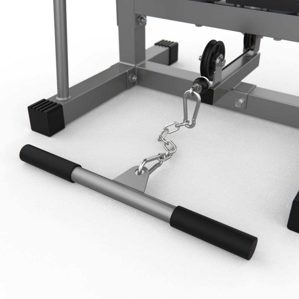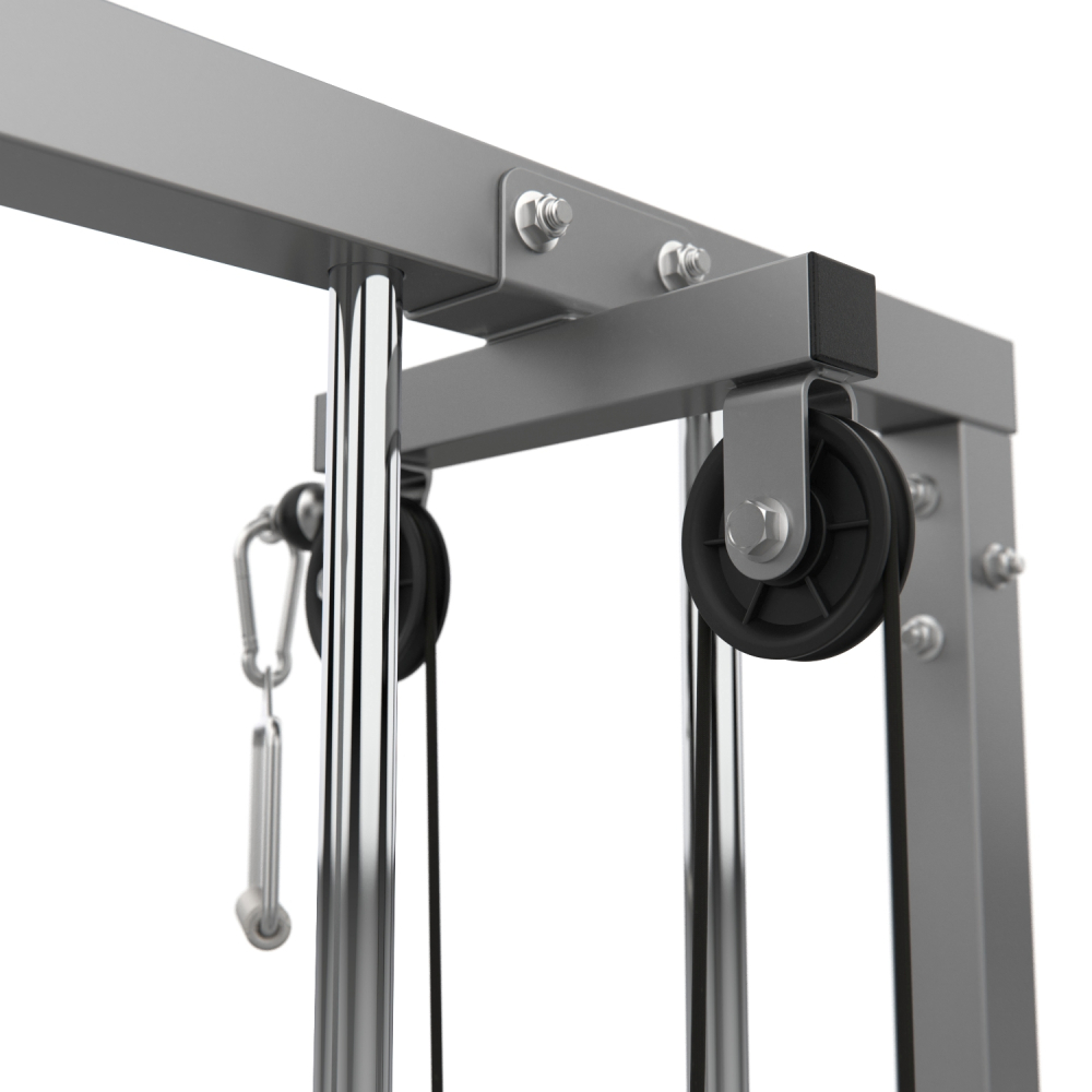 Многофункциональный силовой тренажер (кроссовер) со встроенным весовым стеком общей массой 50 кг. Позволяет отлично прорабатывать мышцы верхней части тела благодаря множеству упражнений. Вращающиеся ролики верхнего и нижнего блоков предлагают оптимальное выполнение упражнений. Изготовлен из высококачественного стального профиля. Размер профиля 50х50мм, толщина 1,5мм. Покрытие рамы: порошковая окраска. Цвет серый. Для крепления к стене. В комплекте: прямой гриф с резиновыми ручками, цепь - удлинитель.
