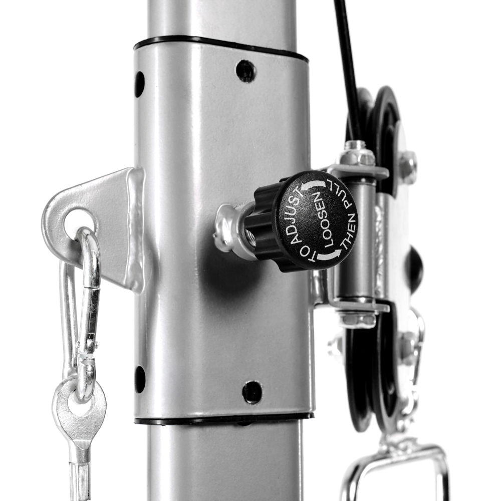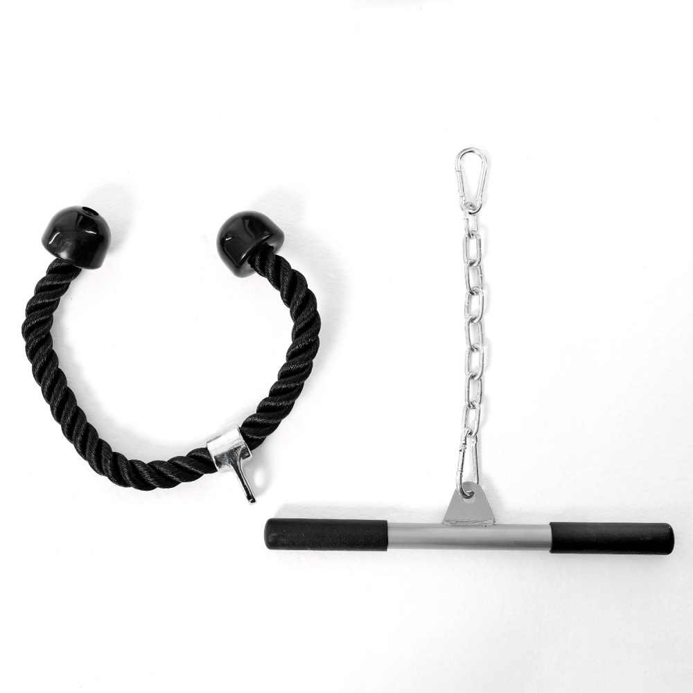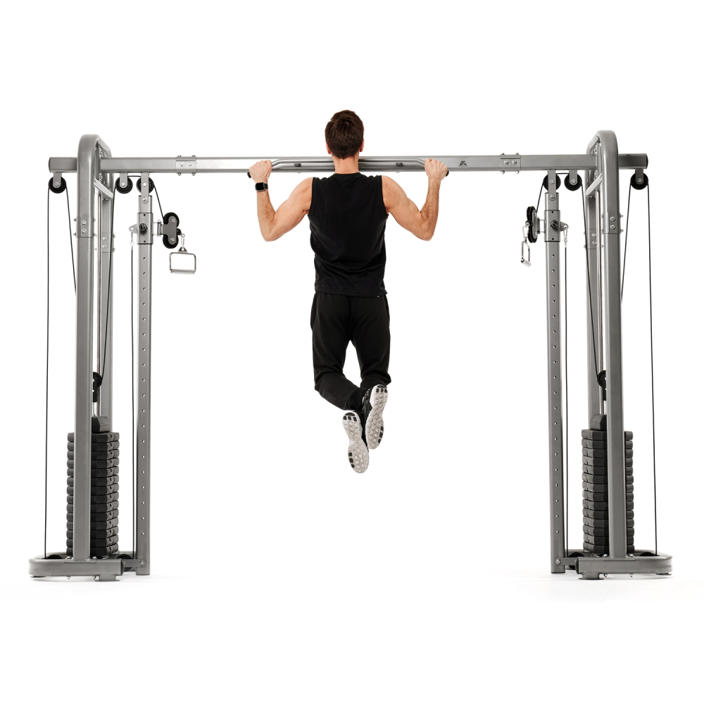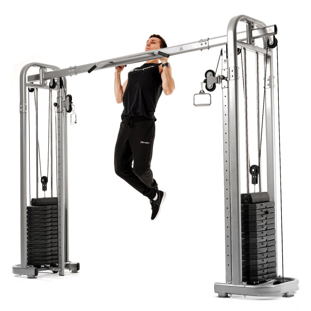 Силовая рама DFC D1009 со встроенным весом предназначена для домашнего использования, позволяет прокачивать все мышцы тела благодаря возможности регулировки. На кроссовере можно выполнять тягу руками (в разных положениях), приседания с весом и махи, упражнения на укрепление мышц кора, подтягивания. Силовые стеки весом по 75 кг входят в комплектацию. Вес пластин — 4 и 5 килограмм, материал изготовления - обрезиненная пластиком бетонная плита. Общая нагрузка регулируется при помощи фиксатора одним движением руки. Плавность хода стеков гарантируют ролики на подшипниках. Основа всей конструкции — рама из трубы размерами 40 х 80 х 1,5 мм. Опции кроссовера: Турник с широким хватом Турник с нескользящими ручками, входящий в комплектацию, выдерживает вес до 100 кг. Положение рук широким хватом хорошо укрепляет спину, руки и плечевой пояс. Турник с узким хватом Узкий хват турника способствует укреплению мышц спины, рук, плечевого пояса и грудных мышц. Канат для тяги В комплектацию входит канат для упражнений на трицепс и бицепс (сгибания, разгибания рук), мышцы плеч и кора (упражнение «священник»). Он крепится к регулируемой по высоте каретке. Тяга сверху Кроссовер оснащён металлическими ручками с нескользящим хватом, которые регулируются по высоте в 11 положениях. При выполнении упражнений с верхней тягой, нагружаются мышцы рук, груди и верхнего отдела спины. Тяга снизу Тяга снизу нагружает помимо грудных мышц, бицепс, трицепс и дельтовидные мышцы плеча. Ручка для тяги сверху и снизу Ручка, входящая в комплект кроссовера, позволит более точечно прокачать мышцы бицепса или трицепса.