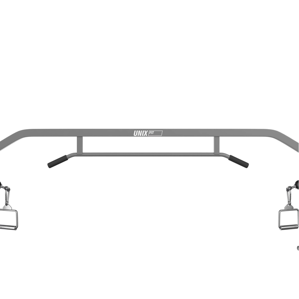 Кроссовер с двумя стеками по 75 кг каждый UNIX Fit Station — это многофункциональный грузоблочный тренажер, предназначенный для тренировки всех групп мышц. Вы сможете создать идеальное тело благодаря спортивной мультистанции. Большой выбор упражнений сделает каждое занятие уникальным и разнообразным, а тренажер-кроссовер станет незаменимым помощником в достижении спортивных целей . Силовой тренажер оснащен двумя блоками, в которых с каждой стороны насчитывается по 14 стеков, каждый стек весом 5 кг + 2 небольших стека по 4 кг каждый, в сумме нагрузка составляет 150 кг, что является прекрасным показателем для силового тренинга. Благодаря функции подъема, вы сможете регулировать нагрузку индивидуально под свои цели и физические возможности, уменьшая или увеличивая количество плит. Данная конструкция превращает мультистанцию в удобный и эффективный инструмент для разнообразных тренировок, как для новичков, так и для опытных спортсменов. . Габариты тренажера 251 х 56,5 х 217 см, рама изготовлена из высококачественного стального профиля, что делает тренажер очень устойчивым и надежным, гарантируя безопасность даже во время самых интенсивных тренировок. В мультистанции продуманы вращающиеся ролики верхних и нижних блоков, благодаря которым движения во процессе упражнений более свободные и естественные. Пользователь сможет без труда менять угол и направление нагрузки, что способствует максимальной проработке мышц. . Система регулировки исключает люфт, благодаря чему обеспечивается стабильность и безопасность тренировок. . . Ножки мультистанции обрезинены для защиты напольного покрытия, а нескользящие рукоятки для верхней и нижней тяги сделают хват очень надежным, защищая от скольжения и предотвращая появление мозолей. Кроссовер оснащен всем необходимым, чтобы вы сразу же могли приступить к тренировкам. . В комплекте вы получите: . - 2 нескользящие рукоятки на цепи для тяги снизу; . - 2 металлические рукоятки для тяги сверху с регулировкой по высоте; . - 1 рукоять-канат для тяги; . - турник и нескользящие упоры для подтягиваний. . - 28 стеков х 5 кг. - 2 стека х 4 кг. . Силовой тренажер позволяет выполнять более 40 упражнений на все группы мышц, делая спортивный комплекс универсальным инструментом для проработки всего тела. . Вы сможете выполнять такие упражнения, как: . -разведение рук в стороны (для грудных мышц); . -тяга к поясу; . -тяга к груди (для спины); . -тяга вниз (для спины и бицепсов); . -сгибание рук на бицепс; . -повороты корпуса (для косых мышц живота) . -пресс на кроссовере; . -плие с отведением руки в сторону (для ног и плеч). . и многие другие . Регулярные ежедневные тренировки на грузоблочном тренажере помогут развить общую силу, выносливость, координацию, что так необходимо в условиях современной жизни. Также вы сможете создать свой фитнес-зал и еще больше разнообразить тренировки, приобретя вместе с кроссовером силовую скамью UNIX Fit BENCH 160 . Тренажер-кроссовер UNIX Fit Station 150 станет эффективным инструментом для достижения разнообразных спортивных целей, ведь каждое занятие — это шаг к более здоровому и счастливому "я" и достижению идеального тела! Тренируйтесь с удовольствием вместе с UNIX Fit! .