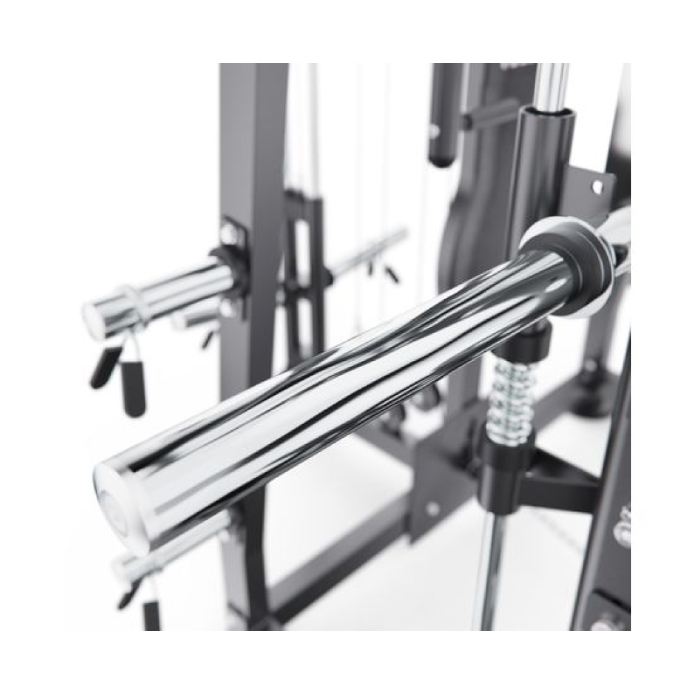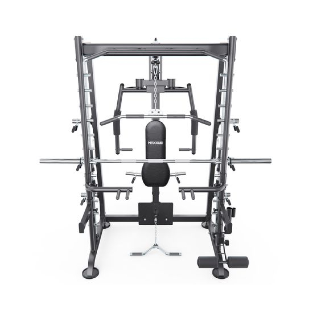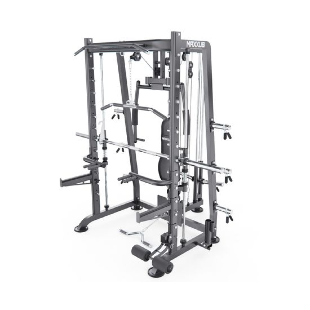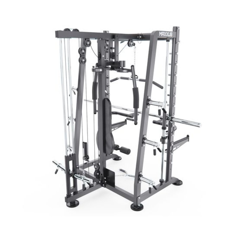 Машина Смита MAXXUS GSMX-600019 — полноценная замена спортзалу у вас дома! Она сочетает в себе машину Смита, силовую станцию, мультипозиционный турник и функциональную раму, позволяя прорабатывать все группы мышц в одном комплексе.Максимальная нагрузка на штангу — 250 кг, на тягу сверху/снизу — до 250 кг, баттерфляй — до 120 кг, при этом стальные тросы с нейлоновой оболочкой выдерживают нагрузку до 1000 кг. Максимальный вес дисков устанавливаемых на подвижную каретку - 180 кг. Тренажер имеет 6 посадочных мест для дисков диаметром 50 мм. В комплекте идут пружинные зажимы для дисков.К функциям силовой станции относятся:• Машина Смита• Приседания• Жим лёжа• Гребля• Подтягивания• Баттерфляй• Тренировка с утяжелителями• Т-образная тяга• Нижняя тяга• Лэндмайн• Тренировка прессаВы можете выполнять десятки упражнений: от классических жимов штанги, становой тяги и приседаний, до тяги в наклоне, тяги к поясу, разводки рук на грудные мышцы, скручиваний на пресс, подтягиваний и гребли. Это делает тренажер идеальным решением для фулбади тренировок дома.Каркас мультистанции изготовлен из высокопрочной стали (профиль 50 х 100 х 2 мм и 50 х 70 х 1,5 мм), что обеспечивает долговечность и устойчивость конструкции даже при максимальных нагрузках. Прочная спинка 83,5 х 33 х 5,5 см обеспечивает комфорт во время выполнения упражнений. Компактные габариты для своего класса (216,5 х 186 х 213,5 см) позволяют использовать мультистанцию даже в ограниченном пространстве.