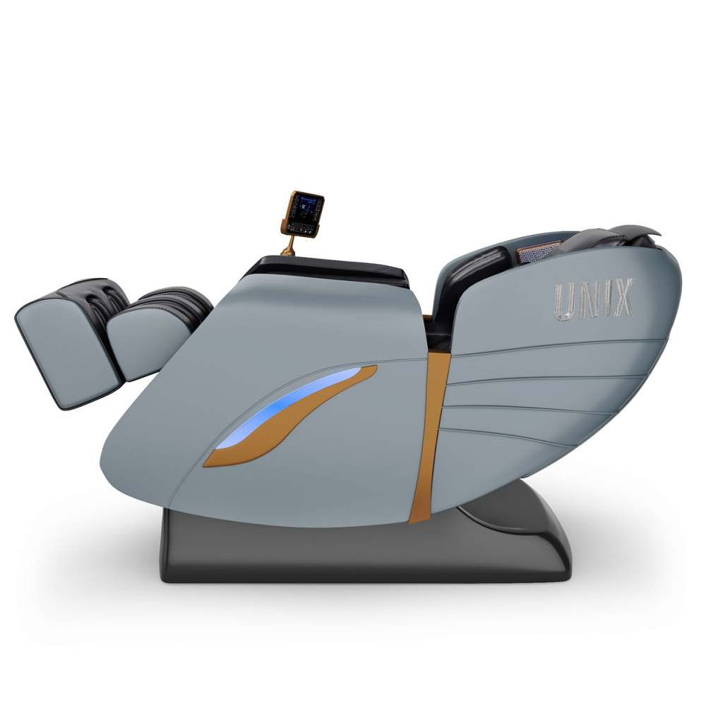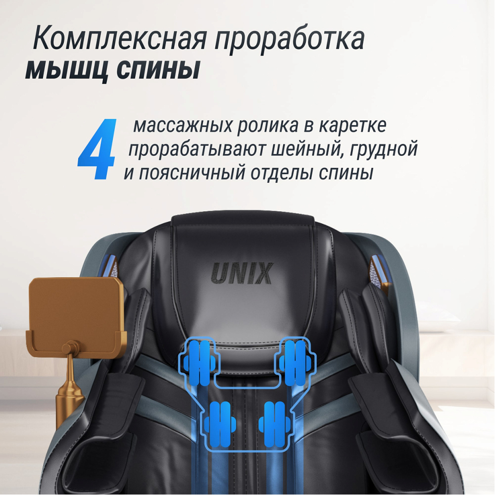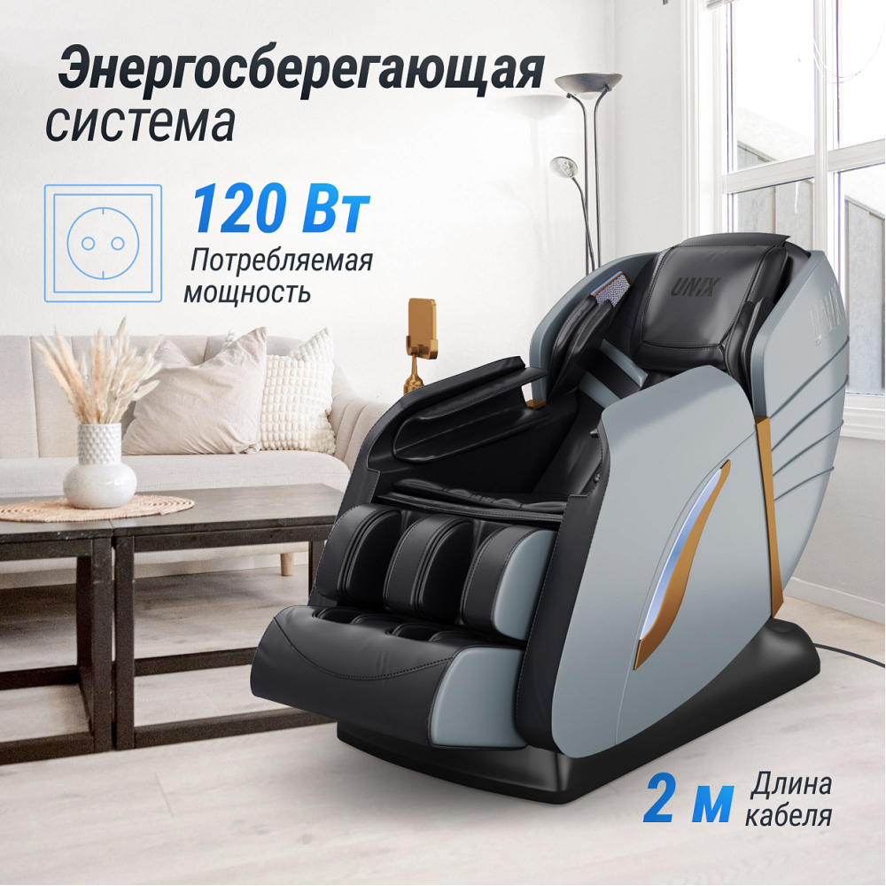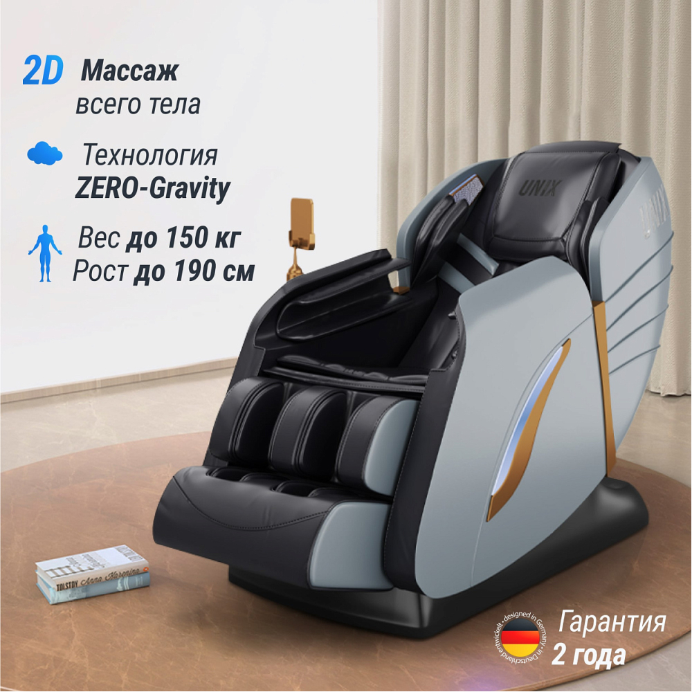 Погрузитесь в мир абсолютного комфорта и релаксации с новым массажным креслом UNIX Adora, которое станет вашим личным оазисом спокойствия в домашних условиях! Это кресло — не просто предмет мебели, а настоящий помощник в борьбе со стрессом и усталостью.. . Инновационная система предлагает возможность автоматической настройки положения тела, а также обнаружения изгибов тела и массажных точек, что делает массаж более естественным и точным. Встроенные автоматические программы разработаны с максимальной эффективностью для конкретных целей – Мастер-массаж, Массаж для королевы, Массаж для плеч, Забота о спине и Спокойный сон. Передовой манипулятор предлагает на выбор несколько ручных режимов – массаж фиксированной точки, верхней части спины, нижней части спины, локальный и полный массаж. Дополнительно вы можете выбрать определенную массажную технику для разных зон – разминание, постукивание, растирание, акупрессура и многие другие. Электрическое массажное кресло оснащено функцией аэромассажа с выбором зон и уровнем интенсивности давления воздуха. Воздушные массажеры для ладоней оснащены функциями ударного массажа. Кресло для массажа включает в себя роликовый массажер для ног, который массирует пальцы, ступни, а также своды ступней. А функция подогрева спины подарит дополнительный комфорт во время сеанса. . . Преимущества. . - 2D массаж. Благодаря точечной проработка мышц достигается максимальное расслабление и релакс. Движение роликов соответствует изгибам тела, что позволяет охватить большую часть поверхность рук, голеней, ног, плеч и избавиться от боли в мышцах ног и плеч. . . - Аэромассаж. Воздушно-компрессионный массаж со встроенными воздушными подушками расположенными по всему креслу оказывают воздействие на все тело человека. Воздушные подушки обеспечивают возможность выполнения легкого расслабляющего массажа, в результате нормализуется кровообращение и артериальное давление, убирается отечность, такой массаж благотворно влияет на лимфатическую систему, сердечно-сосудистую систему, на мышечные ткани. Чередование воздушной компрессии и обычного массажа благотворно сказывается на всех процессах в организме человека. Воздушно-компрессионный массаж рекомендован для коррекции фигуры, восстановления упругости кожи и ее эластичности.. . - ZERO GRAVITY. Активация ZERO-G автоматически наклоняет конструкцию под определенным углом. Нагрузка распределяется равномерно по телу, возникает ощущение легкости, сравнимое с состоянием невесомости. С этой функцией тело находится в самом комфортном положении, оно максимально расслабленно, а значит, пользы от массажа будет гораздо больше, чем в любом другом положении. В состоянии невесомости нагрузка, действующая на позвоночник, равномерно распределяется по поверхности кресла. Снимаются спазмы в мышцах спины и шеи, улучшается кровообращение, восстанавливаются жизненно важные процессы, улучшается сон. ZERO-G подойдет для релаксации и оздоровления людей, занятых на тяжелых работах, офисных сотрудников, спортсменов, водителей авто, а также людей испытывающих большие нагрузки на работе и дома. Предусмотрена регулировка угла наклона 118° ~ 145°.. . - Автоматическое сканирование формы тела. Массажное кресло оснащено специальными сенсорными датчиками, которые могут выполнять сканирование тел