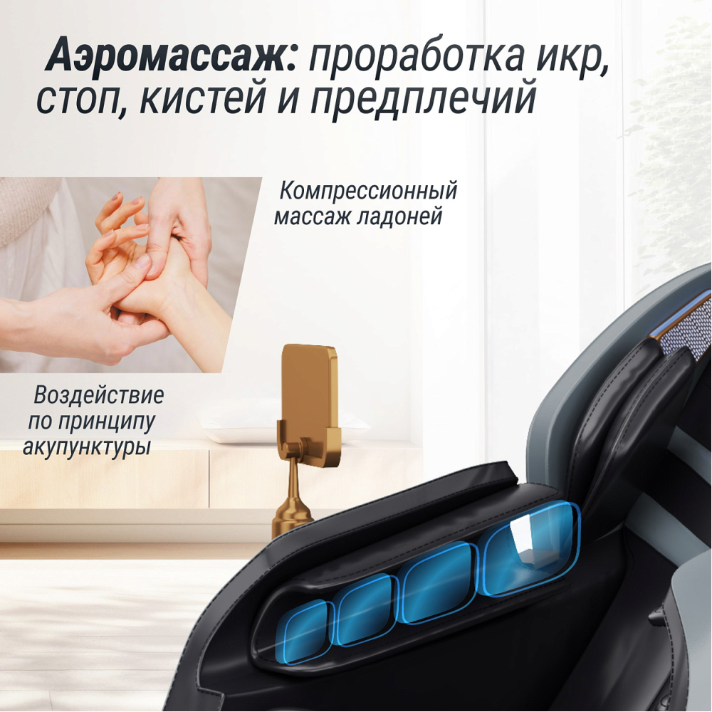 | Аэромассаж | ладоней (4 воздушных массажера) / рук и предплечий (4 воздушных массажера) / икр и стоп (12 воздушных массажера) / ударный массаж ладоней |