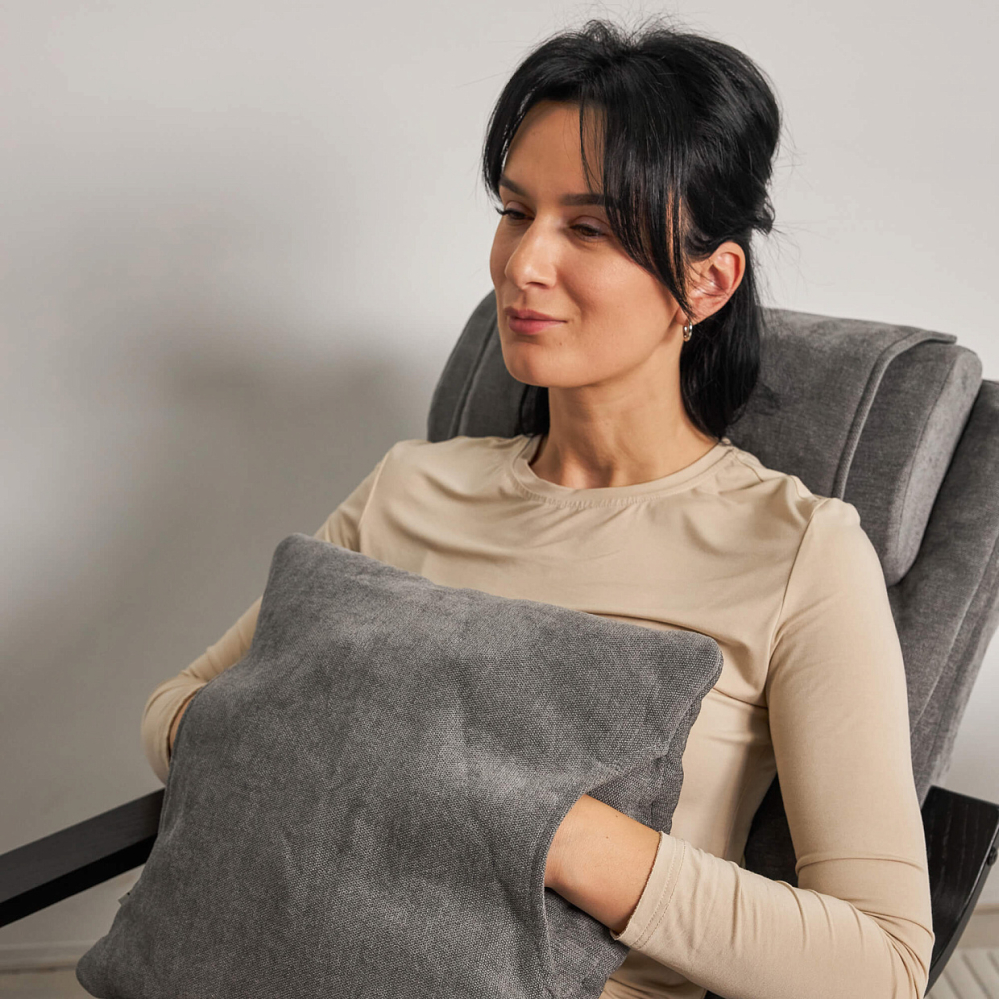 Массажное кресло-качалка UNIX Avola с роликовым массажером и подушкой — идеальное решение для тех, кто стремится к гармонии тела и духа, хочет расслабиться после долгого рабочего дня и восстановить силы. Кресло станет вашим личным оазисом спокойствия и комфорта дома, где каждая деталь продумана для максимального удовольствия. Cовмещает в себе массажное кресло и кресло-качалку Массажное кресло сочетает в себе элегантный и современный дизайн, который легко впишется в любой интерьер. Мягкие линии, высококачественные материалы и стильная отделка создают атмосферу уюта. Кресло не только прекрасно выглядит, но и обеспечивает непревзойденный комфорт благодаря продуманной конструкции и эргономичным формам. Одной из главных особенностей кресла для массажа шеи и спины является интегрированный роликовый массажер с 22 роликами, который включает в себя автоматический режим и вибрационный. Массажное кресло-качалка выполняет роликовый 2D-массаж спины и шейно-плечевой зоны, а также расслабляющий вибромассаж области ягодиц. Вы можете выбрать интенсивность по своему желанию – низкий, средний или высокий уровень вибрационного воздействия. Он точно имитирует движения профессионального массажиста, прорабатывая каждую мышцу вашего тела. Вы можете выбрать зону воздействия, например массаж всей спины, нижней части спины или шеи, а также интенсивность воздействия и направление вращения роликов.. Электрическое массажное кресло помогает снять напряжение, улучшить кровообращение и уменьшить уровень стресса. Благодаря функции качания вы сможете наслаждаться расслабляющим эффектом, который дополнительно усиливает действие массажа. А функция подогрева подарит дополнительный комфорт. Это идеальный способ забыть о повседневных заботах и погрузиться в мир полного релакса. Вибромассаж в зоне ягодиц с 3 уровнями интенсивности. Подушка, входящая в комплект, обеспечивает дополнительный комфорт и поддержку поясницы во время сеансов массажа. Она изготовлена из высококачественных материалов, способствует максимальному расслаблению мышц, позволяя вам наслаждаться каждой минутой отдыха. Съемный чехол поможет легко защитит подушку от влаги и пятен. Это значительно увеличит срок службы подушки, а также облегчит уход за ней. Массажер для шеи и спины оснащен удобным проводным пультом управления с интуитивно понятным интерфейсом, который вы можете положить в кармашек сбоку кресла. Вы сможете легко настроить режим массажа, выбрать нужную интенсивность и силу воздействия. Все это позволит сосредоточиться на своих ощущениях и наслаждаться процессом без лишних усилий. Подставка для ног имеет 5 положений для регулировки, чтобы вы выбрали для себя самое комфортное положение. Регулярное использование массажного кресла способствует улучшению общего состояния здоровья: снижает мышечное напряжение, улучшает качество сна и повышает уровень энергии. Оно идеально подходит для людей, ведущих активный образ жизни, а также для тех, кто много времени проводит за компьютером или испытывает физическую нагрузку. Массажное кресло качалка станет отличным подарком для вас или ваших близких. Подарите себе и своим родным возможность наслаждаться качественным массажем в любое время, не выходя из дома. Это не просто предмет мебели — это инвестиция в здоровье и благо