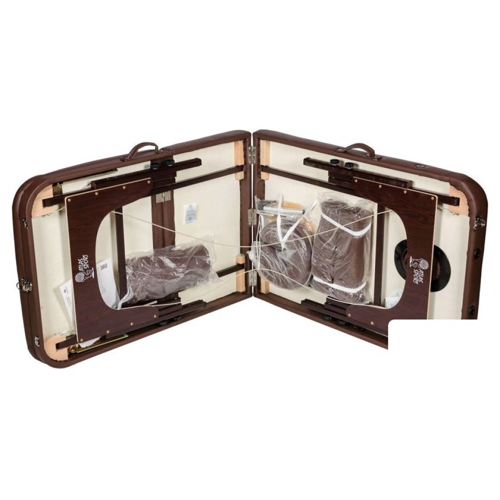 Технические характеристики Массажный стол Atlas Sport 70 см XXL PRO с валиком складной 3-с деревянный (коричневый)