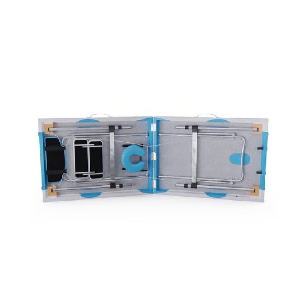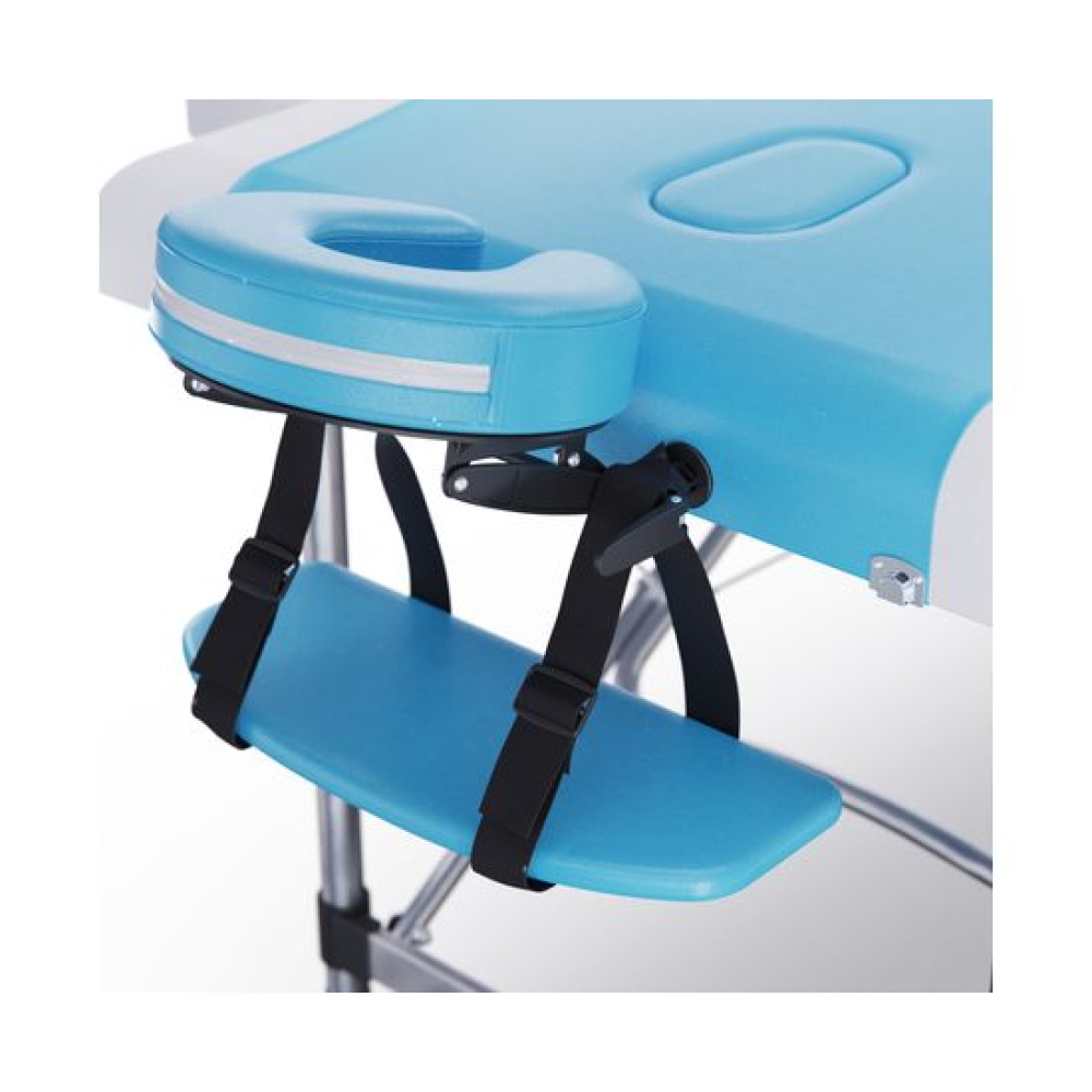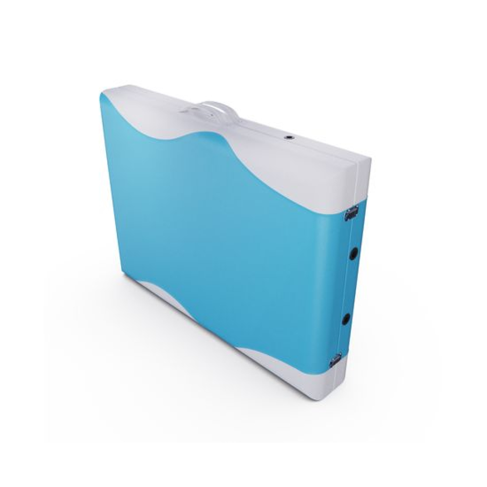 Функциональный и стильный массажный стол DFC NIRVANA подходит для домашнего использования. Спокойный, но насыщенный голубой цвет в сочетании с бежевыми вставками подойдёт к любому интерьеру. Модель Elegant DELUXE TS2010_TB2 можно использовать не только для массажа, но и в индустрии красоты: для пилинга, обёртывания, депиляции и других уходовых процедур.Удобство и надёжность конструкцииМассажный стол Elegant DELUXE TS2010_TB2 имеет складную конструкцию: складывается в удобный для переноски «чемоданчик», размером всего ___ см. Благодаря усиленной жёсткой раме, двухсекционный стол выдерживает до 250 килограмм веса. Алюминиевые ножки не утяжеляют конструкцию. Для комфорта пользователей обивка толщиной 5 см выполнена из наполнителя плотностью 50 гр/кв. м.Комфорт для мастера и пациентаСистема регулировки высоты стола в 11 положениях гарантирует удобство работы для мастеров и массажистов любого роста: диапазон регулировки — от 63 до 84 см. Конструкция продумана таким образом, чтобы удобно было и пользователям, мастерам. В комплект входят фронтальный и боковые подлокотники для удобного расположения рук, лёжа на спине и животе. Углубление для лица (люверс) закрывается специальной заглушкой, что также удобно для комфортного расположения пациента. Имеется съёмный подголовник, предназначенный преимущественно для людей высокого роста. Мастерам понравится удобная сумка-переноска в виде чехла.