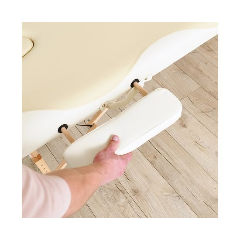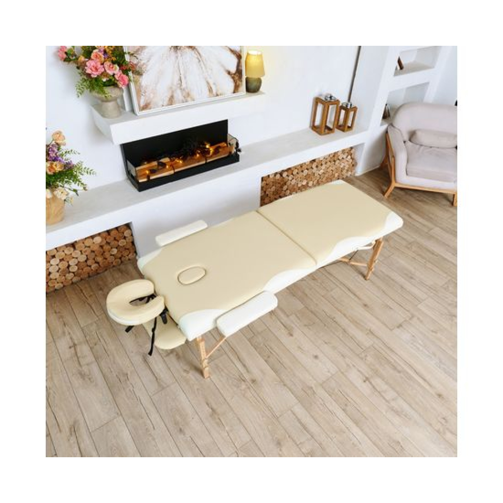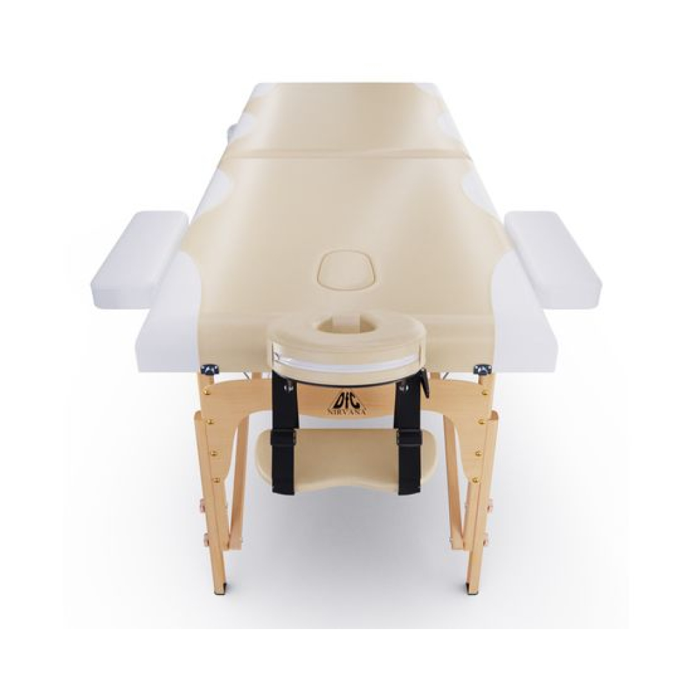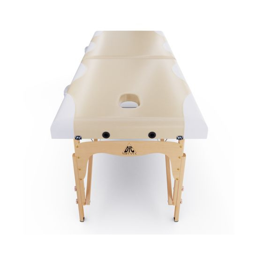 Массажный стол DFC NIRVANA Relax (Бежево-кремовый)Складной 2-х секционный переносной массажный стол DFC NIRVANA Relax (Бежево-кремовый). Изготовлен из высококачественных компонентов. Идеально подходит для домашней эксплуатации.Благодаря применению бука в конструкции рамы вес стола существенно облегчен и составляет 13 кг. Имеет складную конструкцию. Удобен для хранения и транспортировки. В комплект входит сумка-чехол для переноски.Материал обивки - искусственная кожа (ПВХ/PVC). В качестве наполнителя применяется поролон толщиной 5 см.Высота стола регулируется в 11-ти положениях в диапазоне от 63 до 84 см. Размер стола - длина 186 см (без подголовника) и ширина 70 см. Максимальная нагрузка на стол составляет 250 кг.