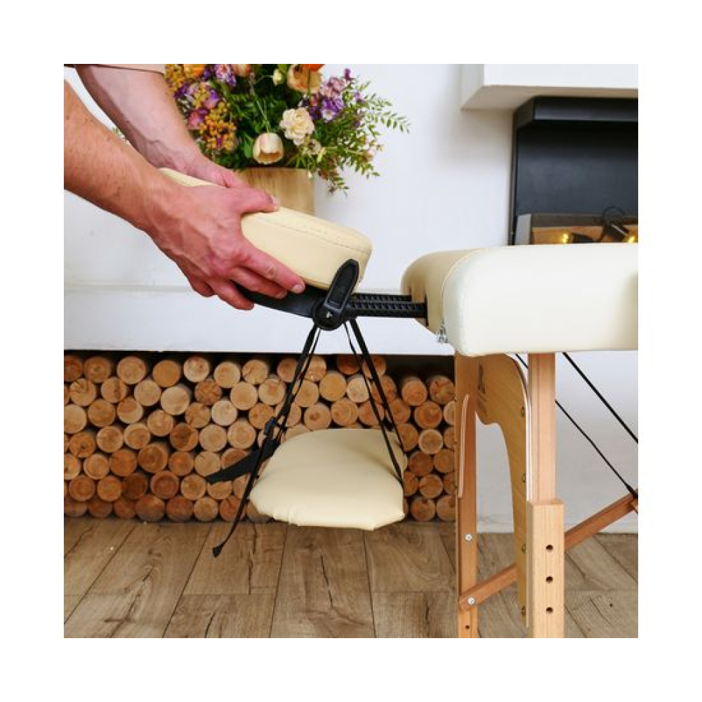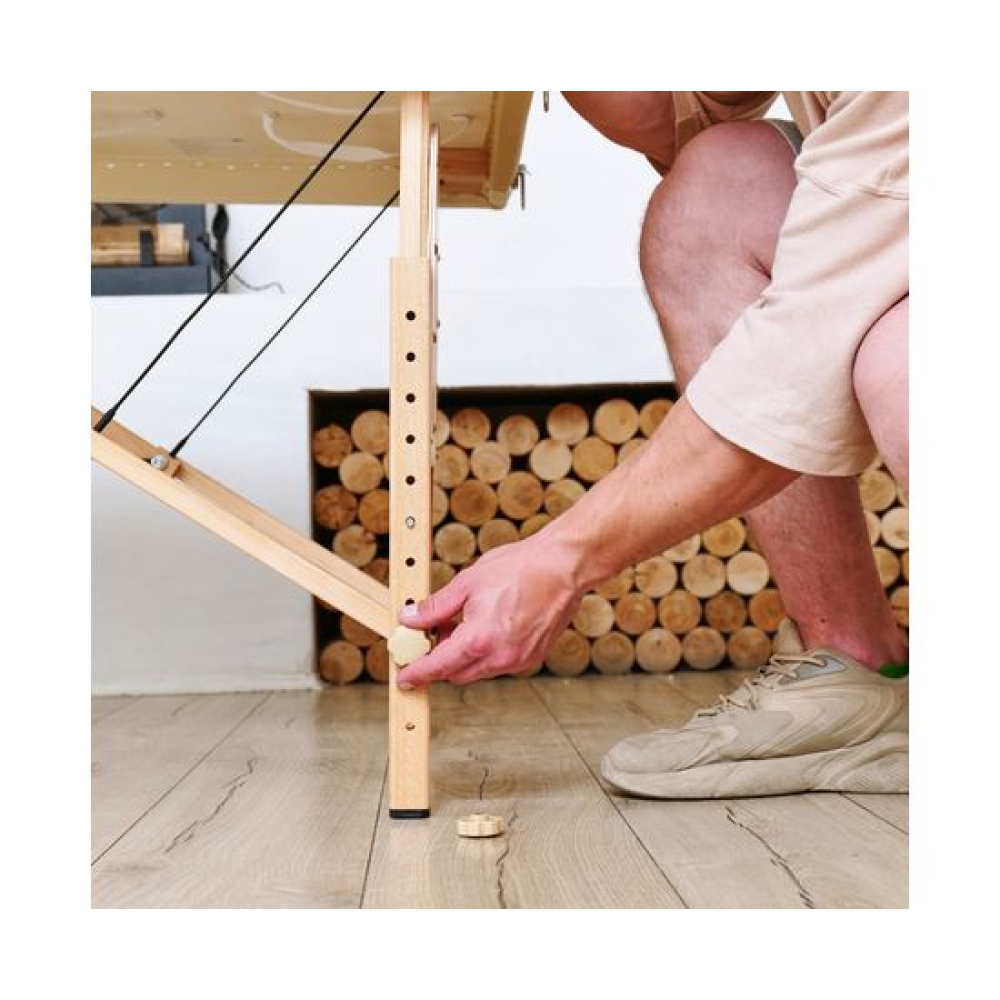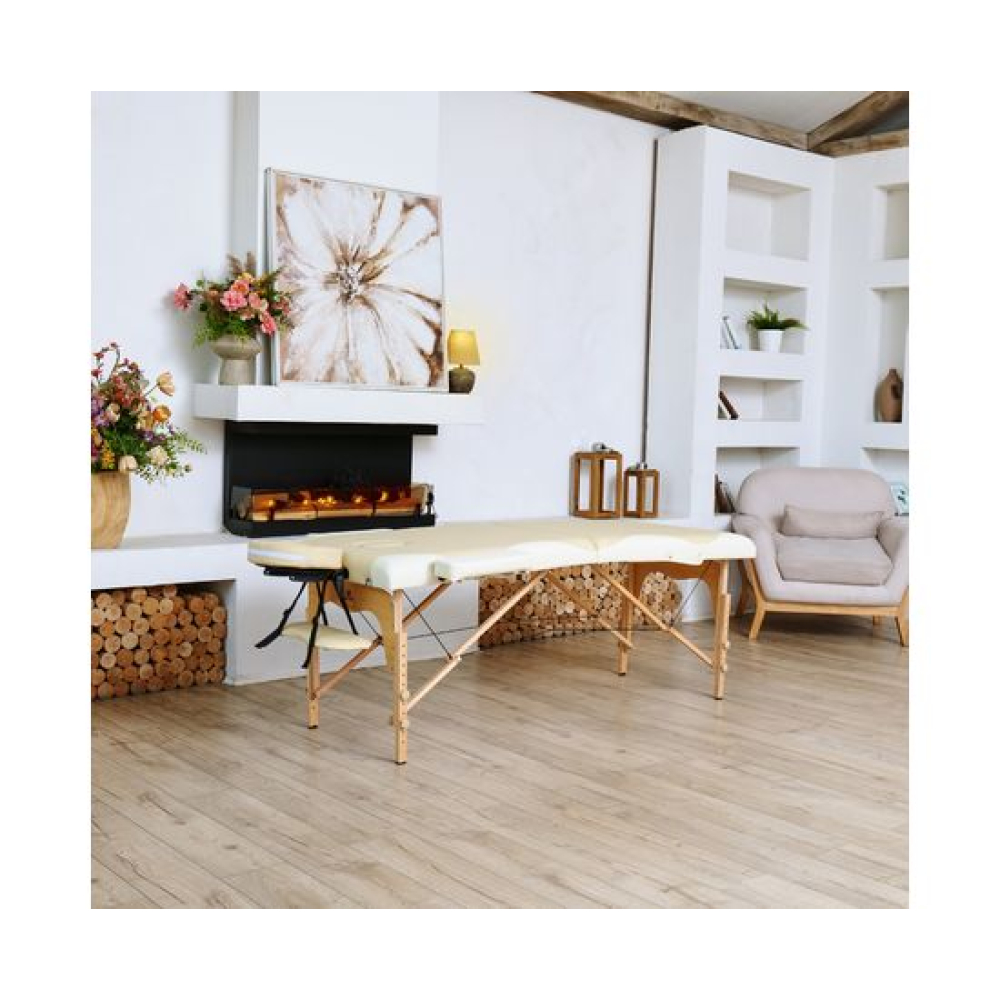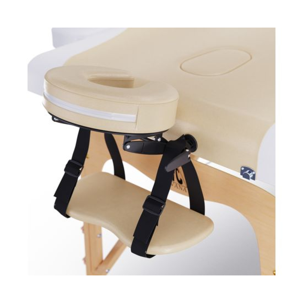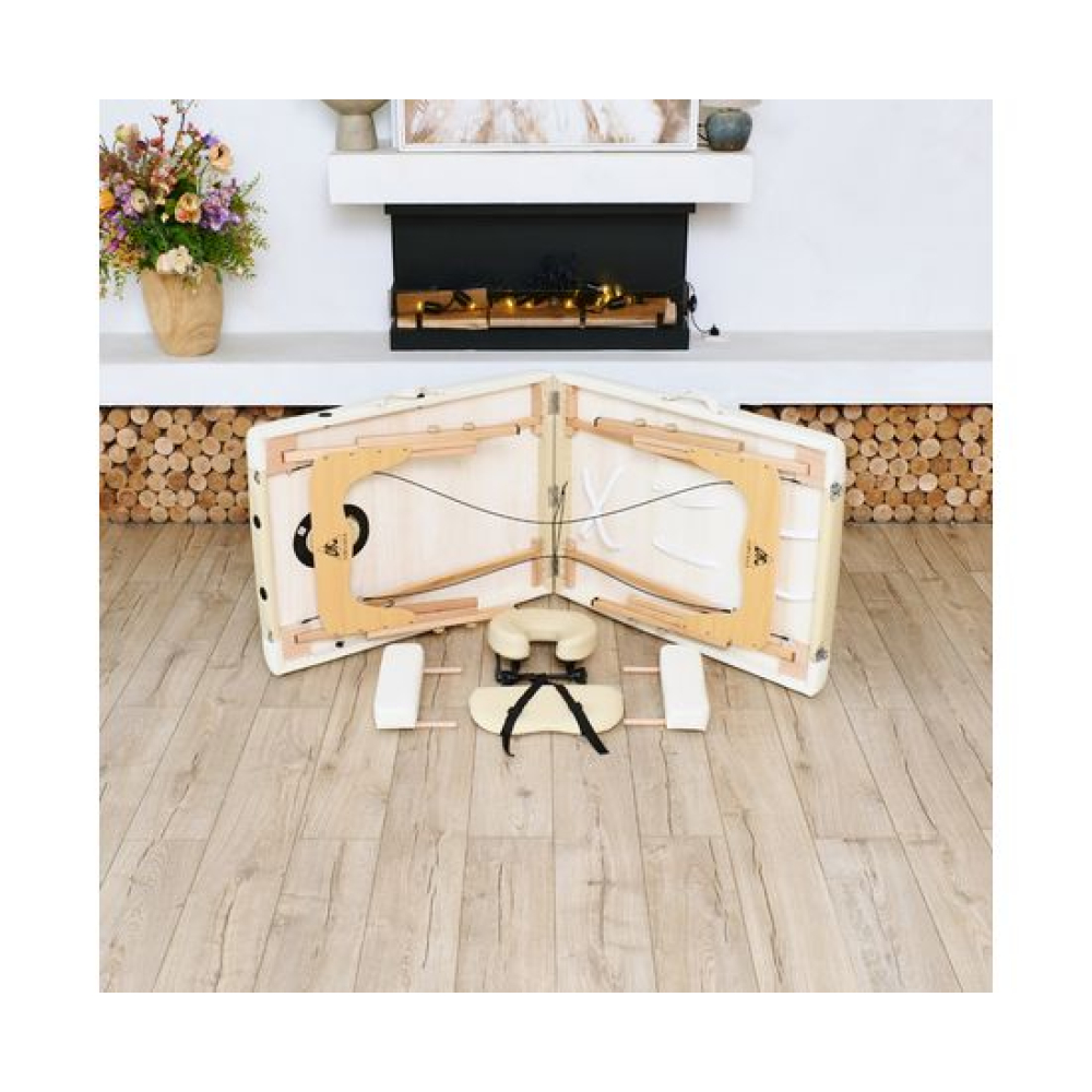 Массажный стол DFC NIRVANA Relax (Бежево-кремовый)Складной 2-х секционный переносной массажный стол DFC NIRVANA Relax (Бежево-кремовый). Изготовлен из высококачественных компонентов. Идеально подходит для домашней эксплуатации.Благодаря применению бука в конструкции рамы вес стола существенно облегчен и составляет 13 кг. Имеет складную конструкцию. Удобен для хранения и транспортировки. В комплект входит сумка-чехол для переноски.Материал обивки - искусственная кожа (ПВХ/PVC). В качестве наполнителя применяется поролон толщиной 5 см.Высота стола регулируется в 11-ти положениях в диапазоне от 63 до 84 см. Размер стола - длина 186 см (без подголовника) и ширина 70 см. Максимальная нагрузка на стол составляет 250 кг.