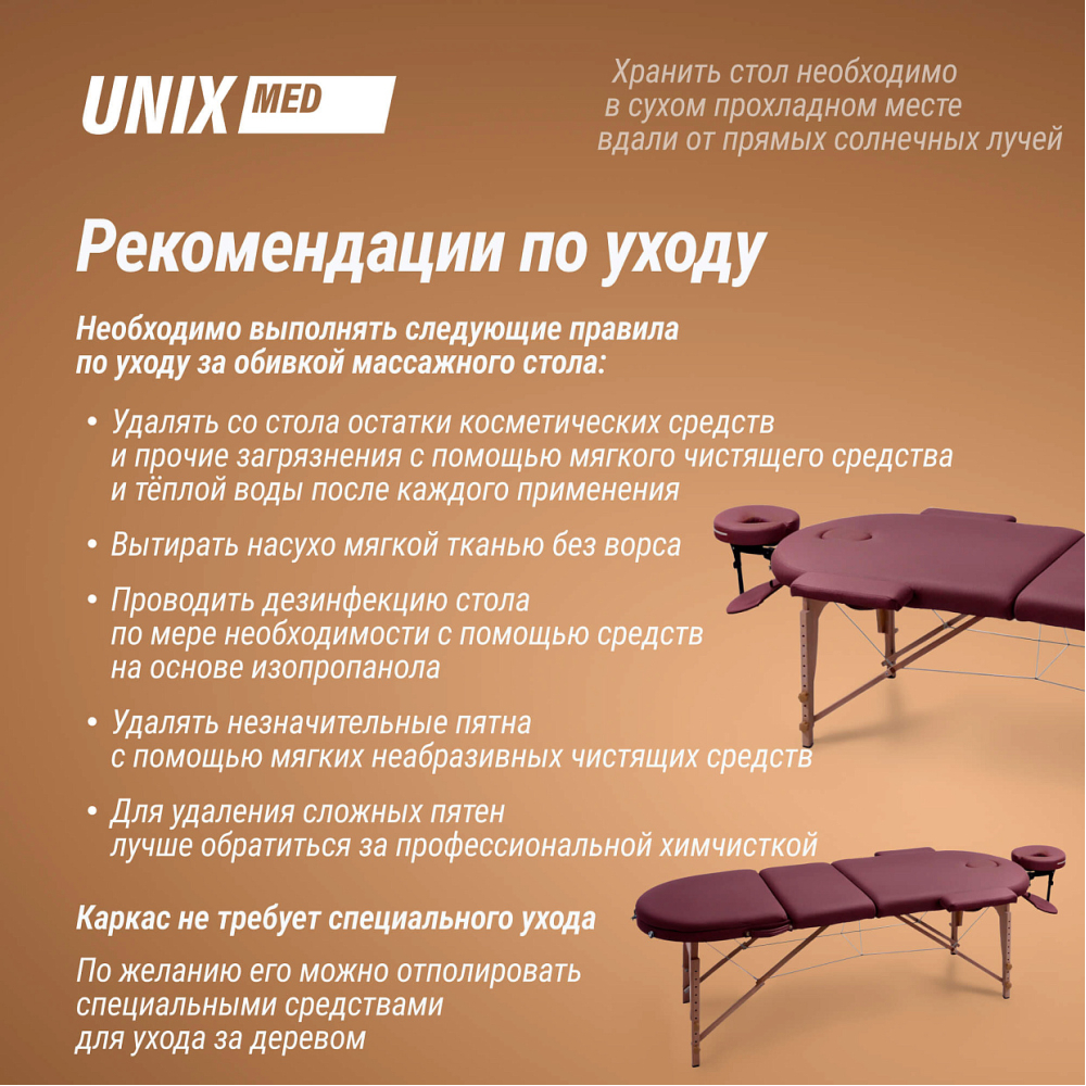 Технические характеристики Массажный стол UNIX Comfort 3 Section Burgundy