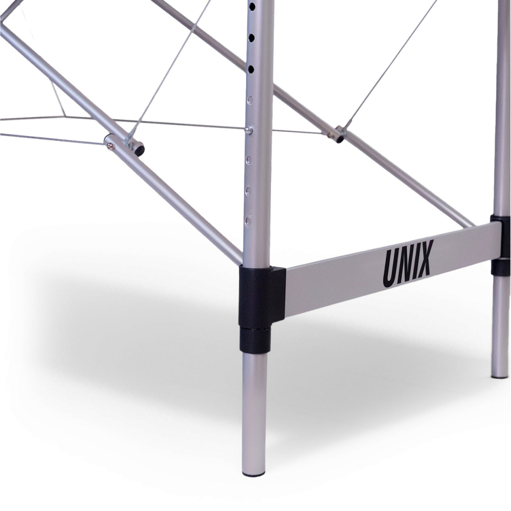 Массажный стол UNIX Master 2 Section разработан специально для профессионалов и любителей массажа, он предоставляет широкий спектр возможностей для проведения оздоровительных и бьюти процедур. Благодаря своей конструкции, кушетка для массажа легко трансформируется в компактный чемоданчик, который удобно брать с собой. Это идеальный выбор для тех, кто ценит мобильность и хочет иметь возможность проводить сеансы массажа вне салона. Этот складной стол - воплощение гармонии природы и современных технологий. Продуманная конструкция модели обеспечит максимальный комфорт клиенту во время массажа спины, шеи и ног. В спинке есть удобное анатомическое отверстие для лица.. . Массажный стол способен выдержать общую нагрузку до 250 кг (не перегружайте стол сверх рекомендованного предела веса). Металлические ножки с профилем 25х25 мм и толщиной 1.3 мм делают конструкцию стола прочной и устойчивой. Благодаря своим компактным размерам он идеально впишется даже в самые небольшие помещения, будь то СПА-салон, домашний кабинет или офис. Возможность ручной регулировки высоты ножек от 57 до 77 см с шагом 3 см позволяет адаптировать стол под рост массажиста, обеспечивая наилучшую результативность сеансов массажа. Специальная система фиксации гарантирует надежную установку выбранной высоты, исключающую случайные изменения положения во время процедуры. Ложе толщиной 7 см обеспечит дополнительную поддержку и комфорт. . . Конструкция кушетки специально разработана таким образом, чтобы ее было удобно складывать и транспортировать. В сложенном состоянии стол превращается в компактный чемоданчик размерами 90х70х14,5 см, который легко переносить благодаря входящей в комплект сумке. Эта особенность делает стол особенно удобным для проведения выездных сеансов вне массажного кабинета. Стол удобно переносить, перевозить, в комплекте имеется сумка для хранения в сложенном виде. Сумка защитит стол и аксессуары от царапин и повреждений во время транспортировки.. . Подголовник обладает возможностью регулировки по высоте и наклону, обеспечивая идеальную поддержку головы и шеи. Складной стол оборудован удобными подлокотниками 34х10х3,5 см, подвесной полкой для гаджетов 37,5х20 см. Универсальность стола делает его незаменимым для профессиональных массажистов, косметологов, мастеров тату и всех, кто работает в сфере оздоровительных услуг. Благодаря высокому качеству используемых материалов и тщательной разработке каждой детали, складной массажный стол UNIX Master 2 Section будет востребован в салонах красоты, SPA, массажных кабинетах. Он сочетает в себе эстетику, функциональность и долговечность, обеспечивая высокий уровень комфорта как для специалиста, так и для клиента.. . Расслабляйтесь с UNIX!. .