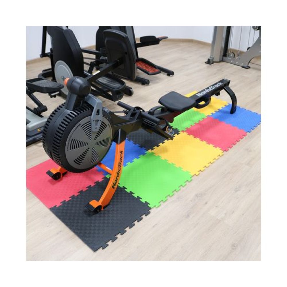 Маты - пазлы для фитнесса и тренажеров.Данный мат будет отличной защитой вашего напольного покрытия от различных повреждений, которые могут возникнуть при использовании тренажеров. Так же мат обладает шумопоглощающим эффектом, он устраняет шум, создавая наилучшие условия для тренировки.Крепление "ласточкин хвост" позволяет соединить вместе необходимое количество матов.Обе стороны мата имеют тиснение и являются рабочими.Мат имеет в комплекте 2 бордюра, благодаря чему конечный коврик будет иметь аккуратный внешний вид.